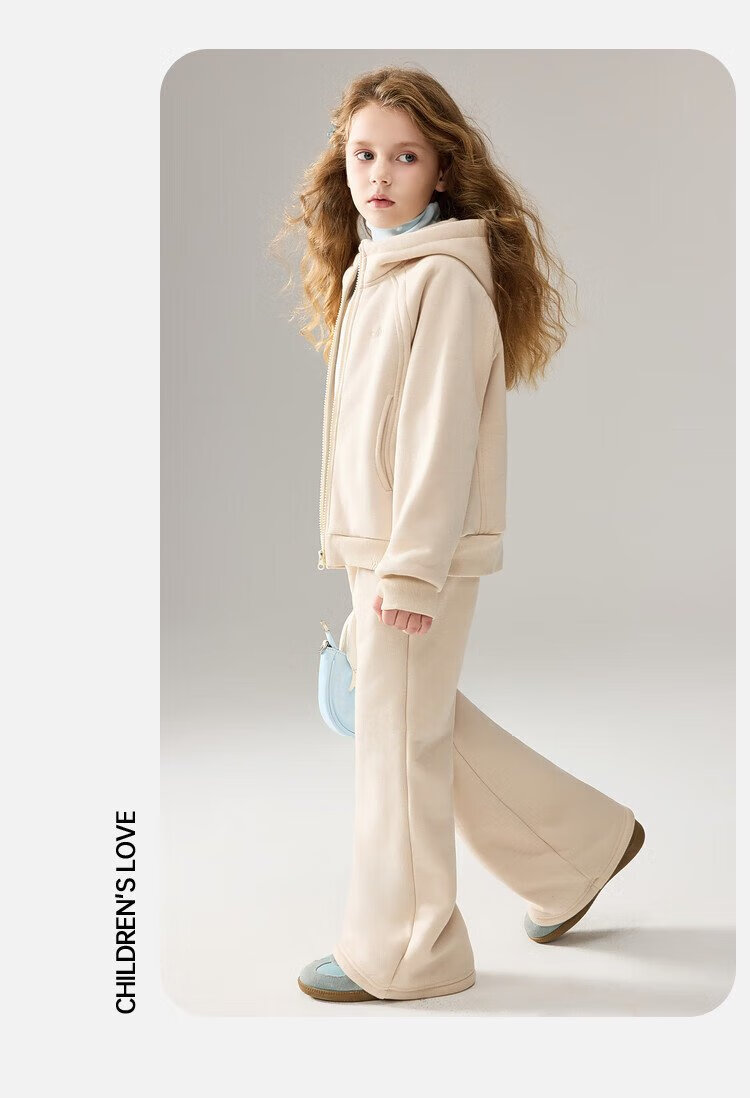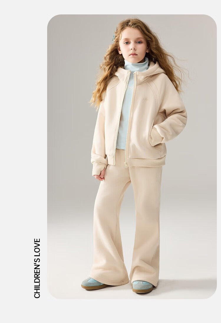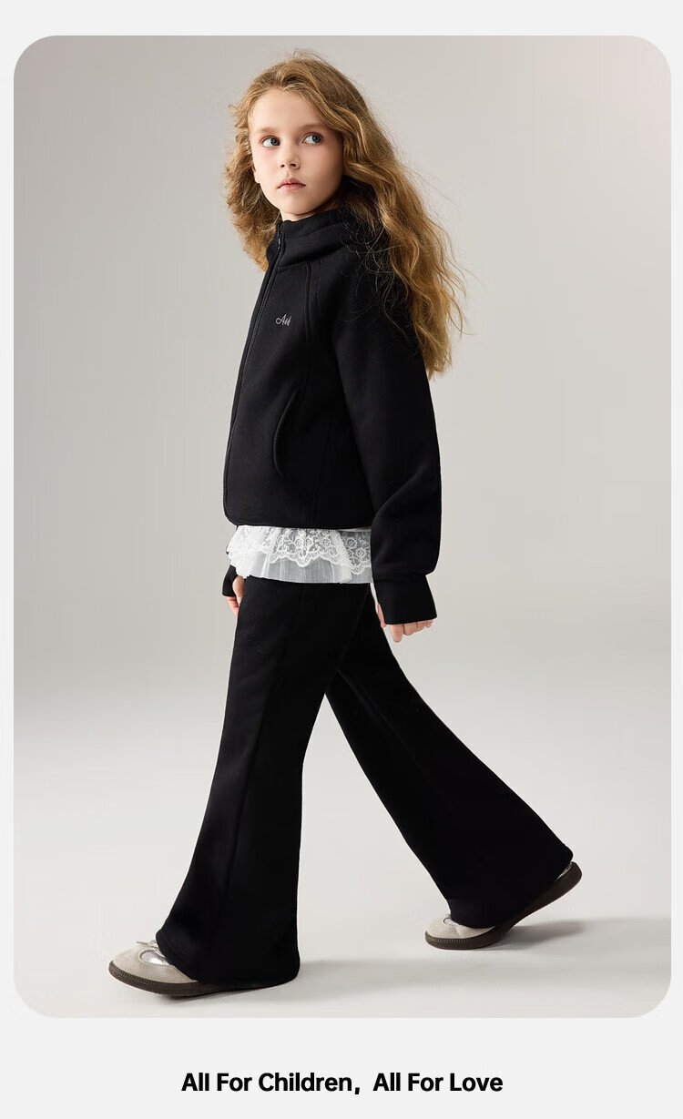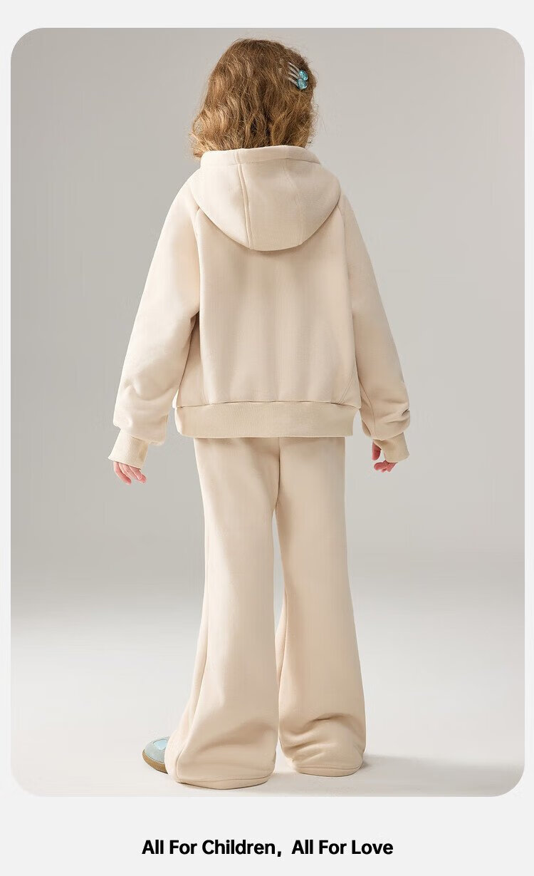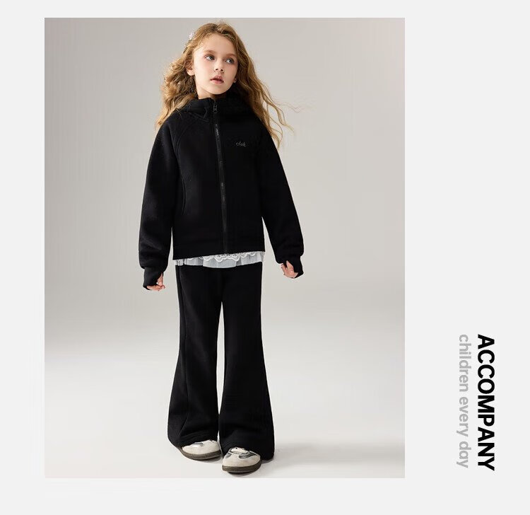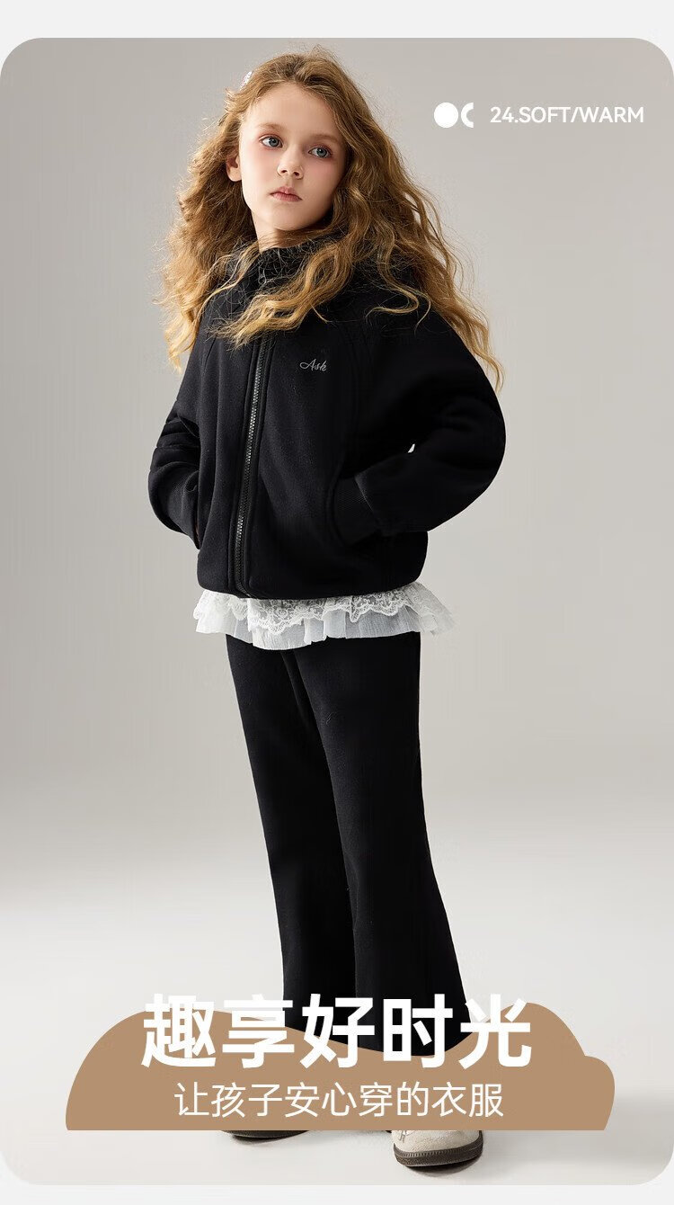 ASK JUNIOR女童运动套装2025冬装新品儿童加绒保暖连帽外套喇叭裤两件套