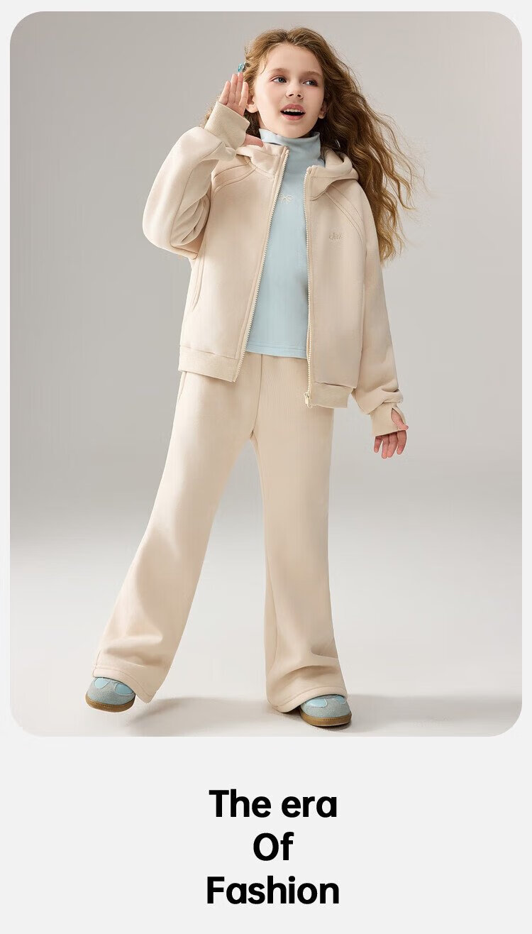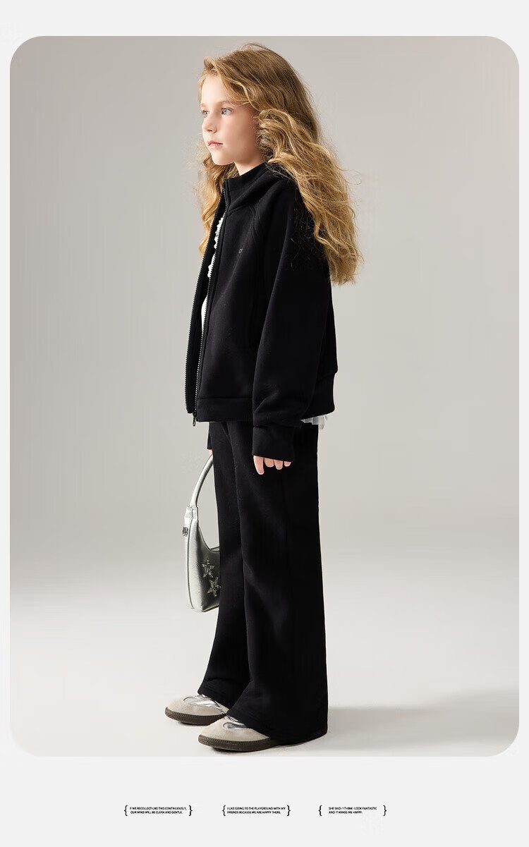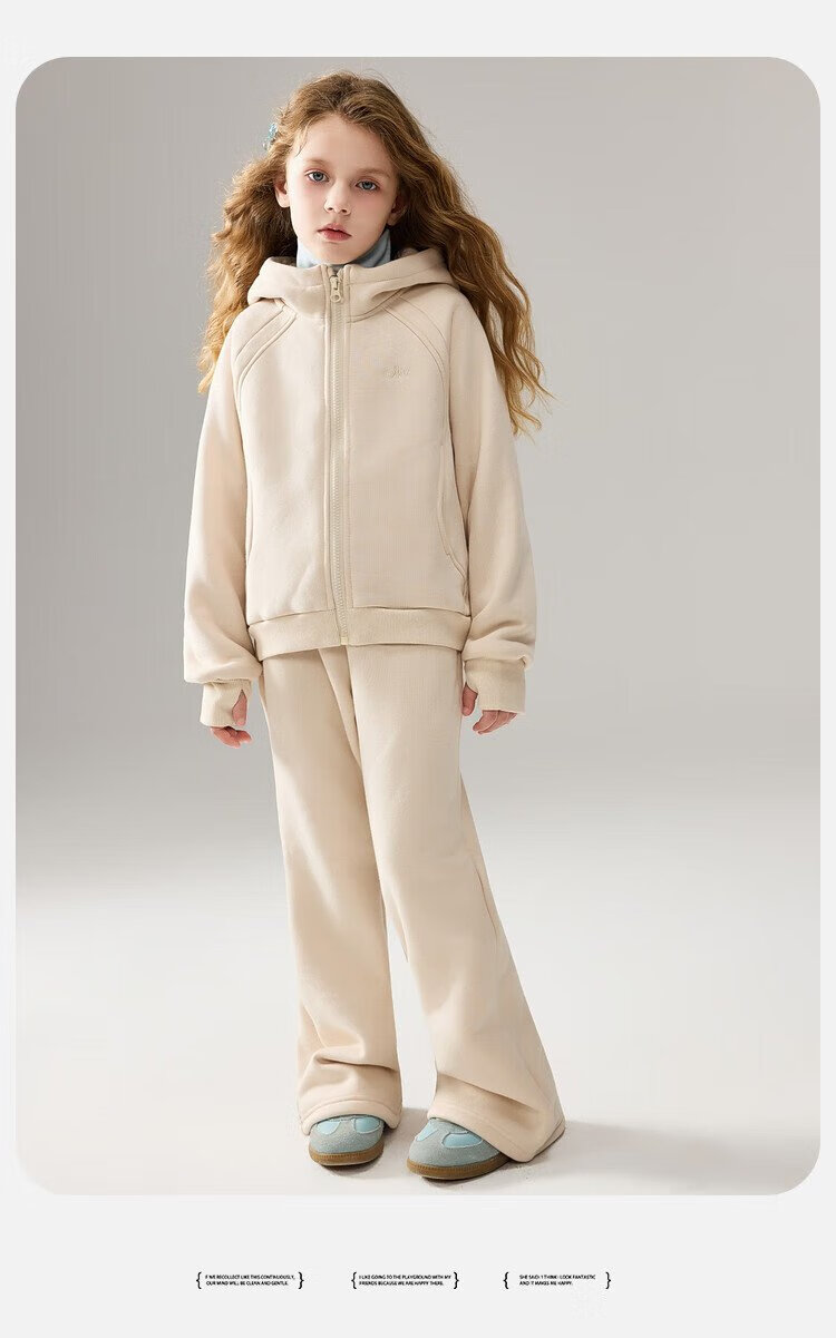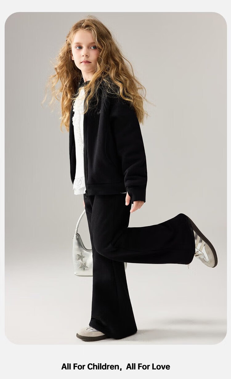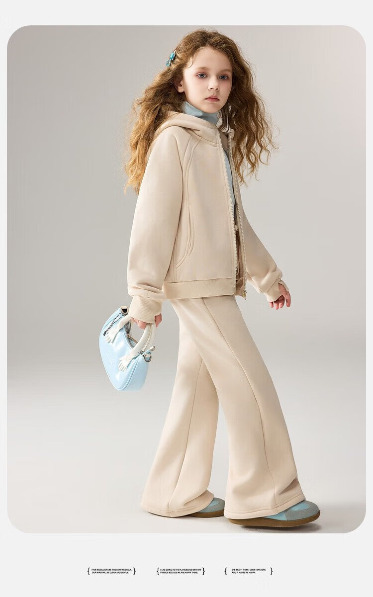 ASK JUNIOR女童运动套装2025冬装新品儿童加绒保暖连帽外套喇叭裤两件套