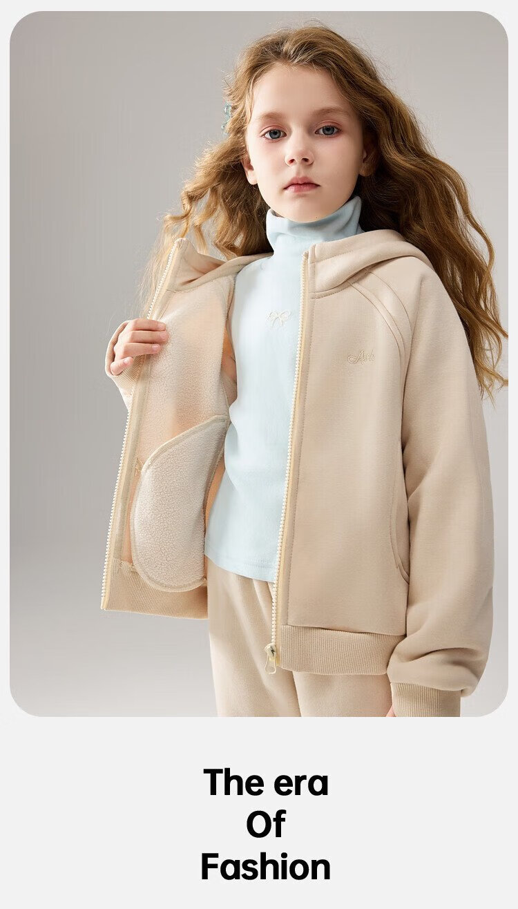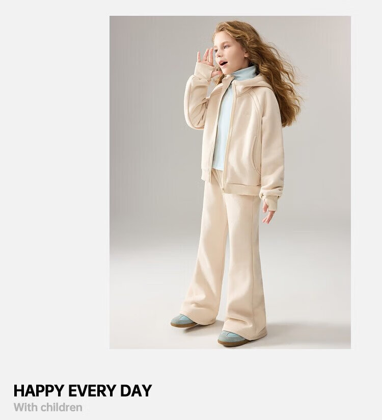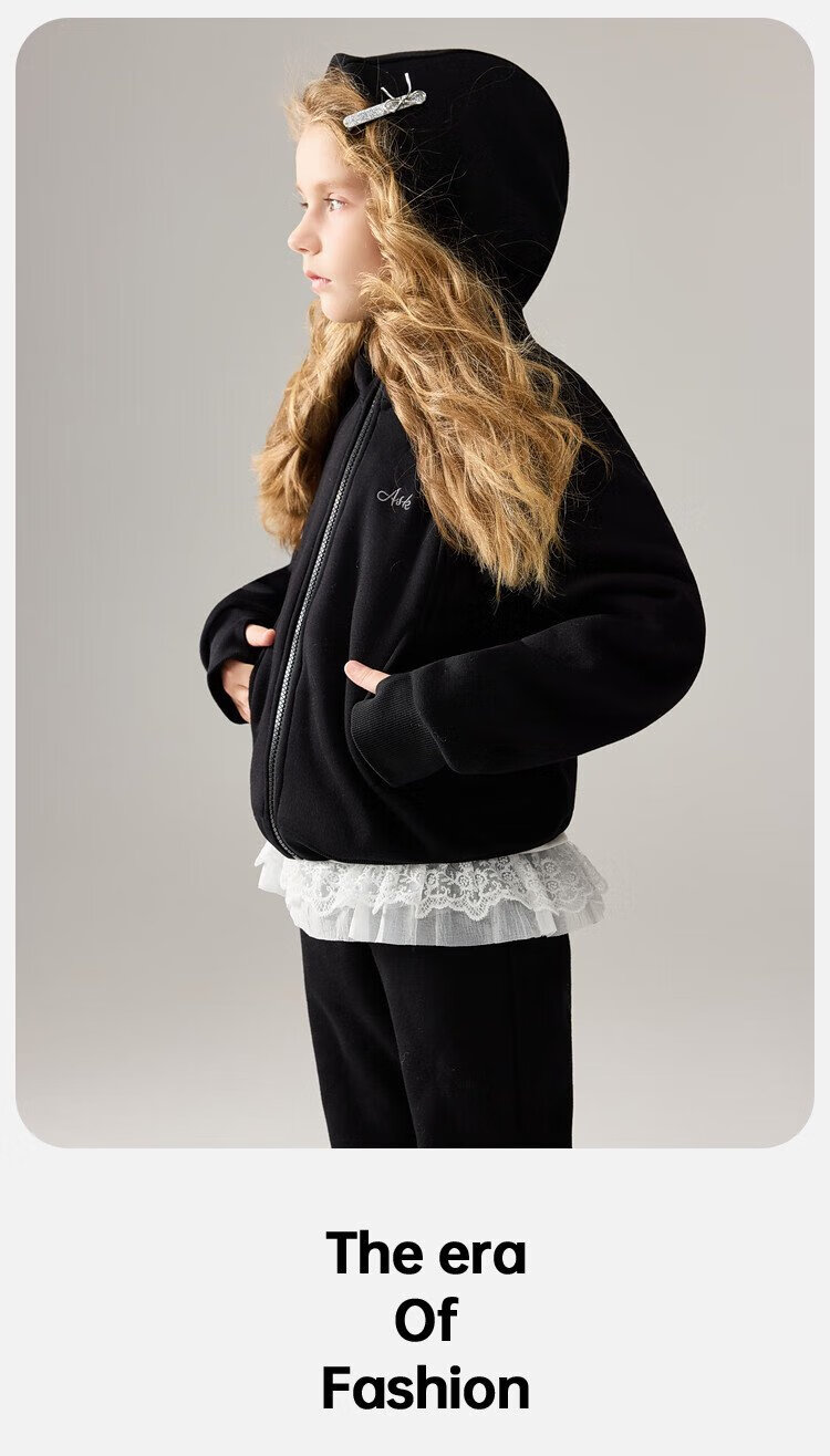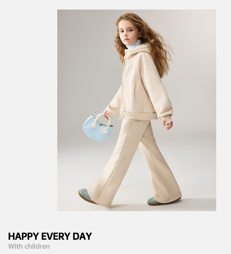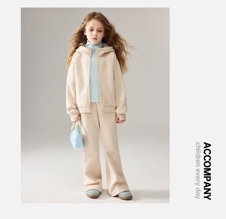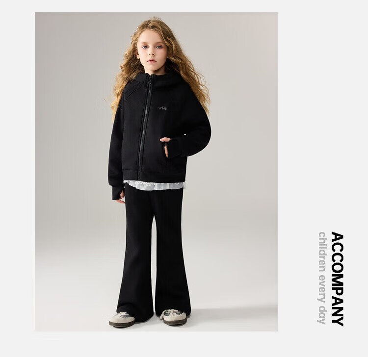 ASK JUNIOR女童运动套装2025冬装新品儿童加绒保暖连帽外套喇叭裤两件套