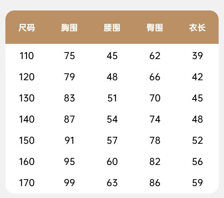 China (cm) 160-165/84-86 165-170 / 88-90 167-172 / 92-96 168-173 / 98-102 170-176 / 106-110