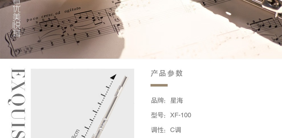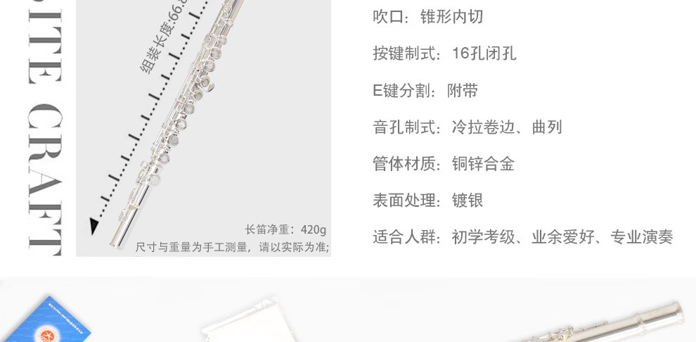 星海长笛镀银C调16键闭孔长笛初学专业院校考级乐器16孔C调镀银XF-100