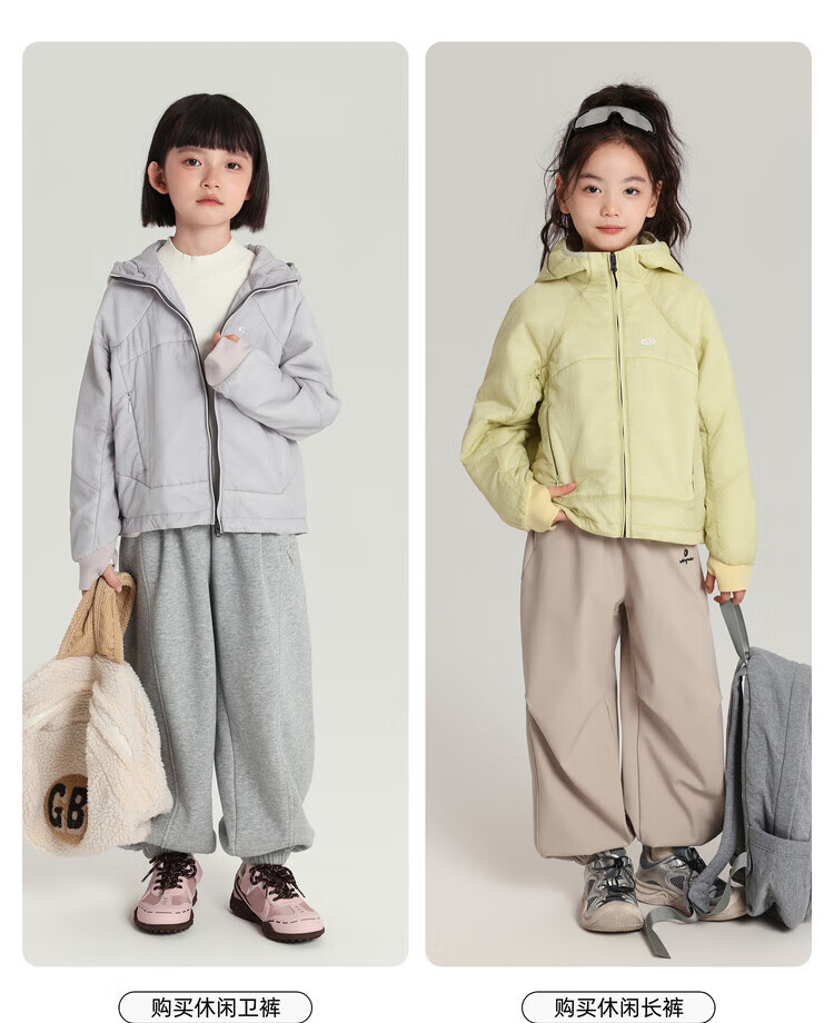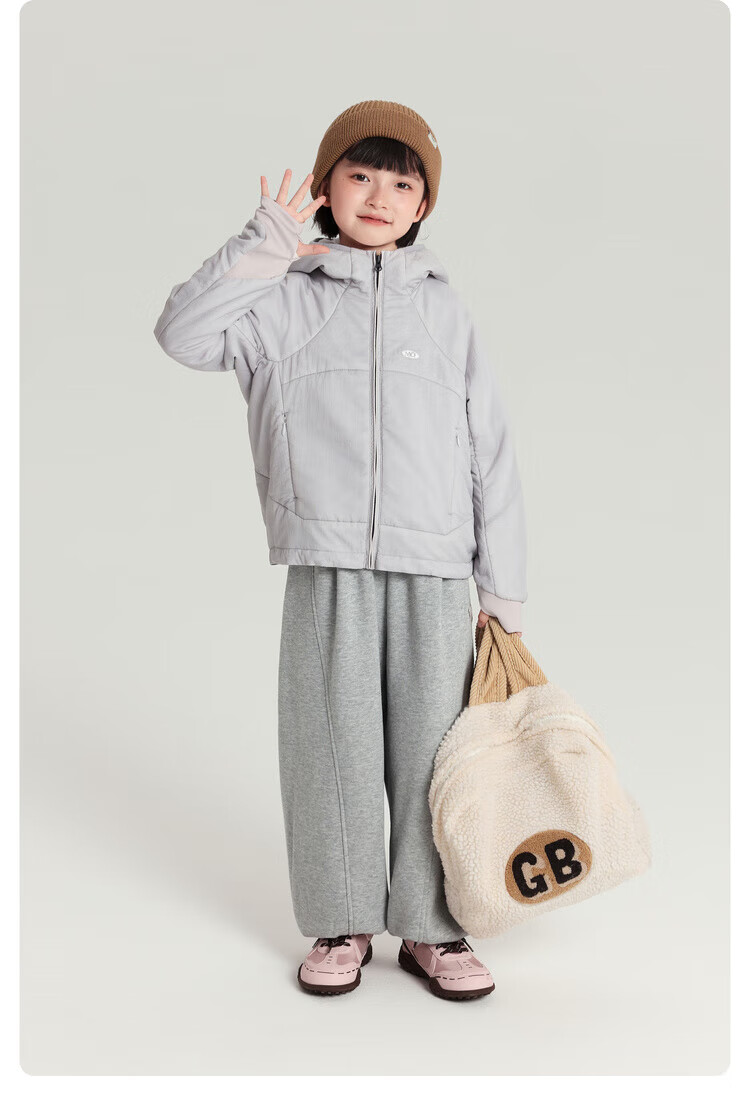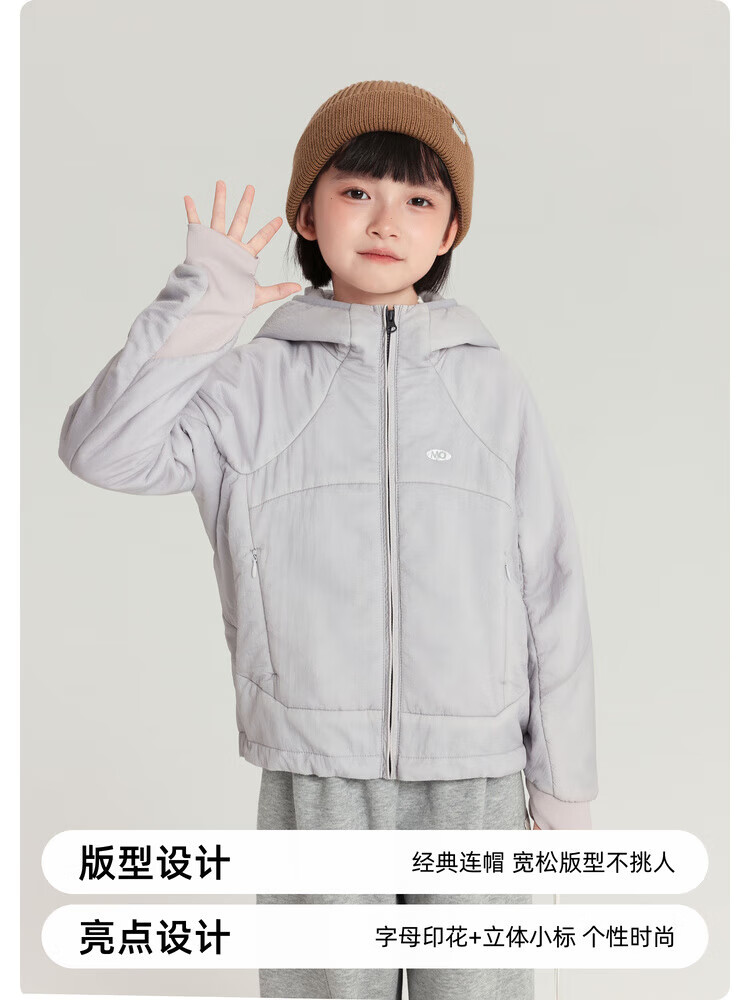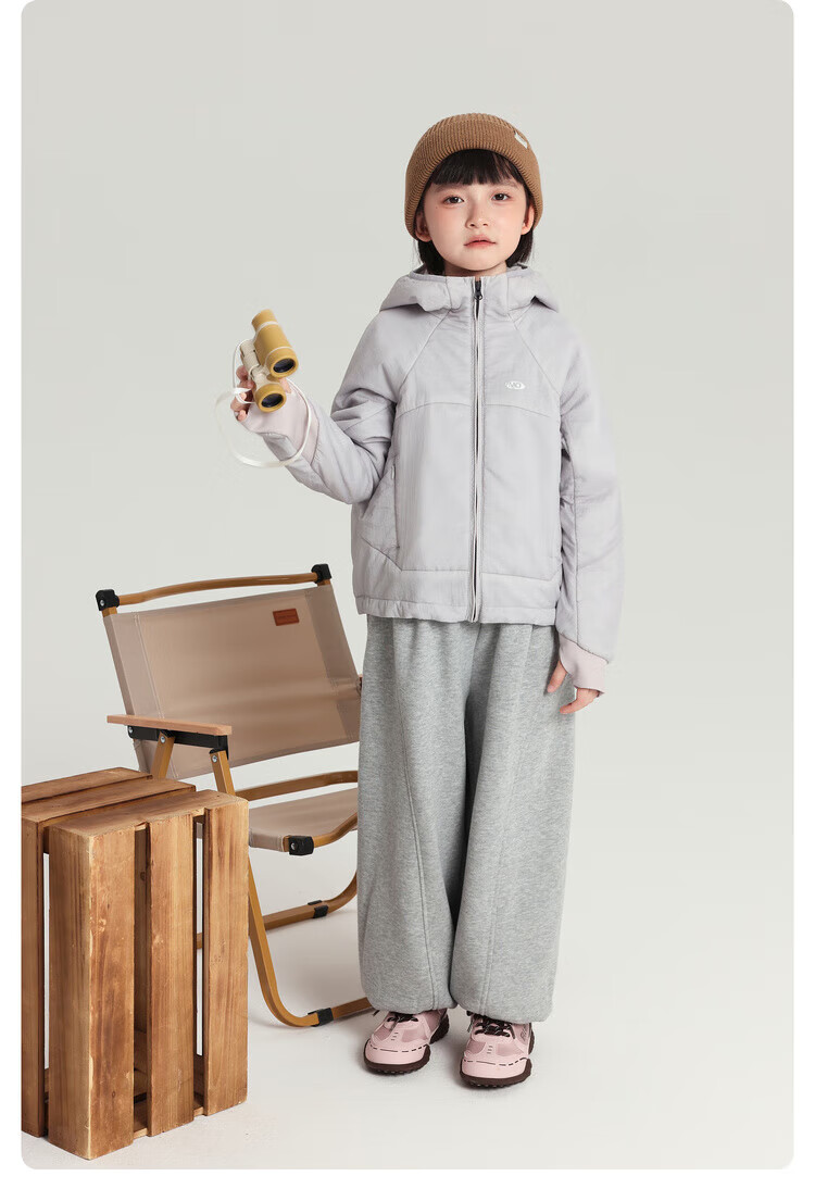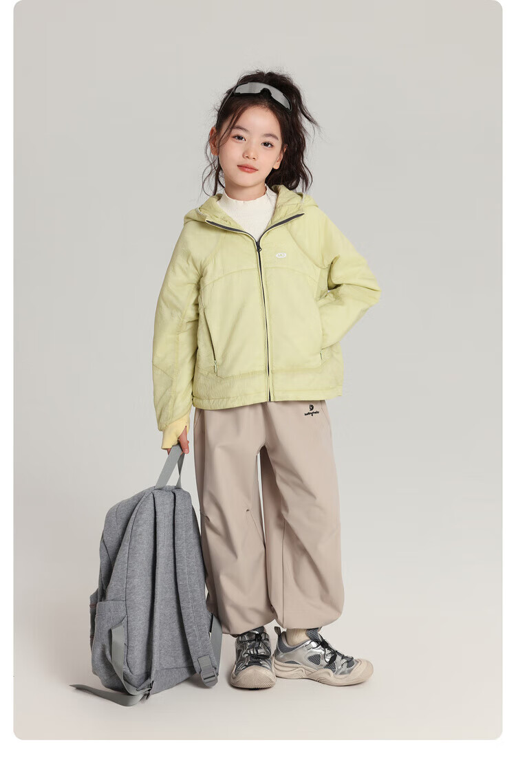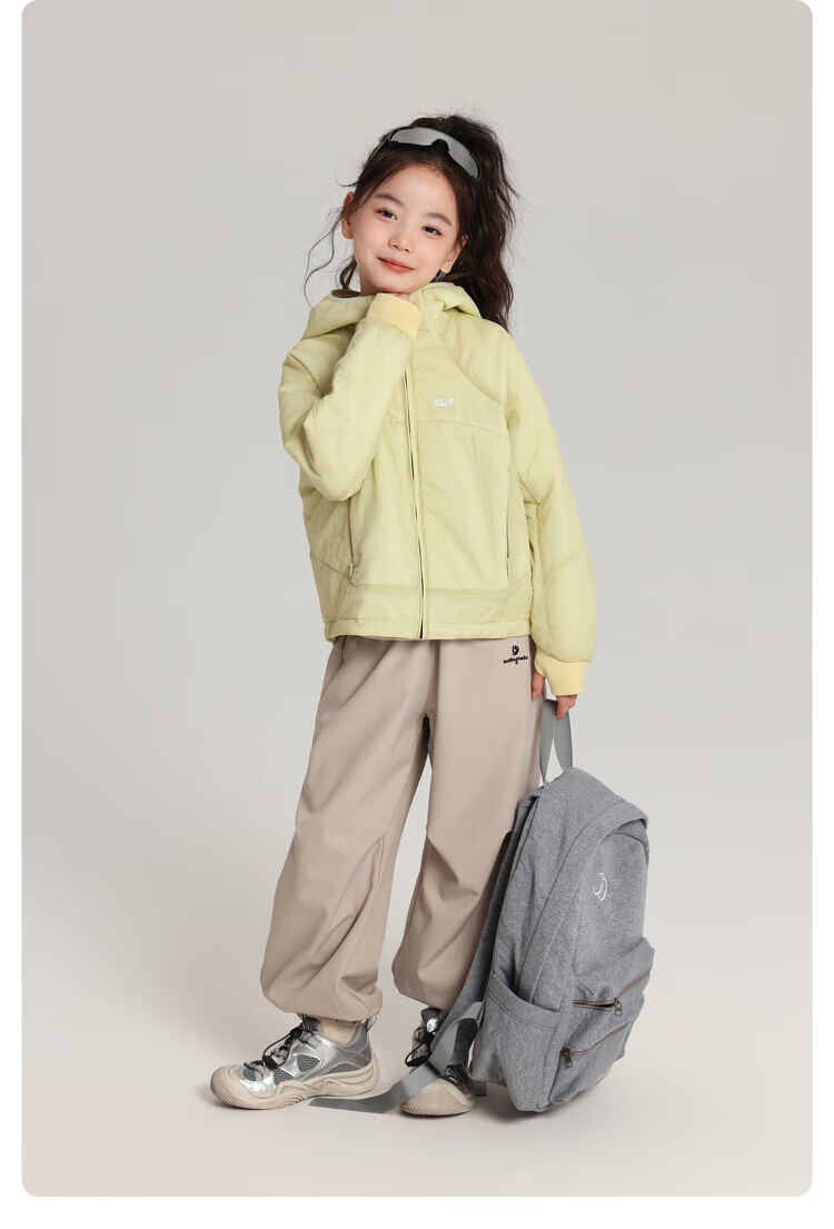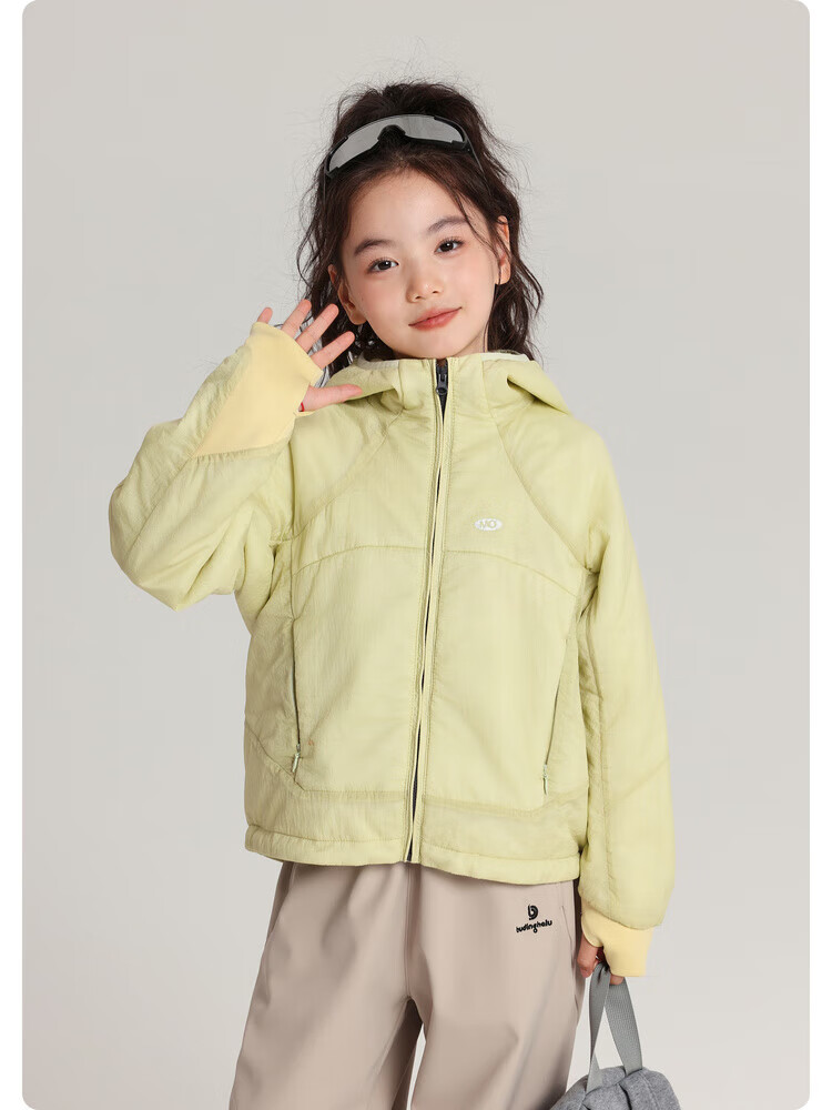 布丁哈鲁【轻盈体感】女童连帽棉服外套冬季新品中大童立体小标保暖外套潮