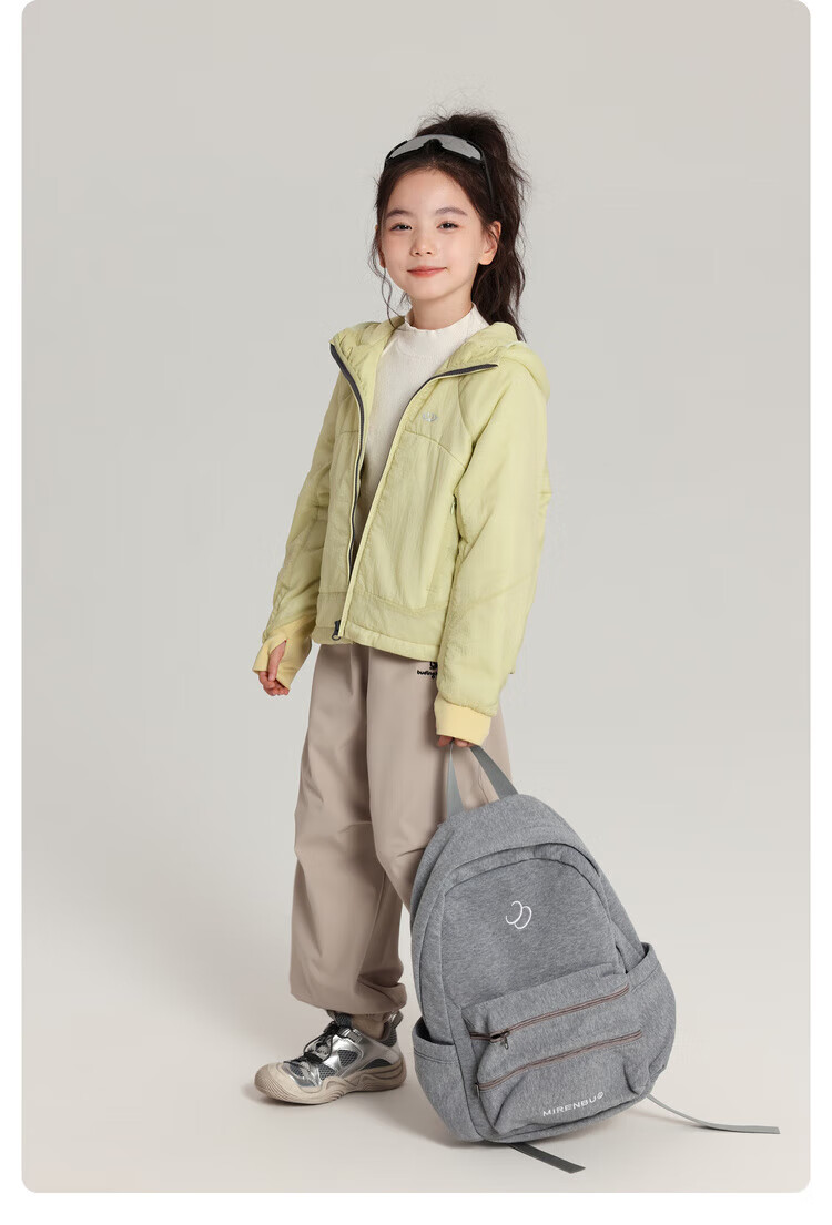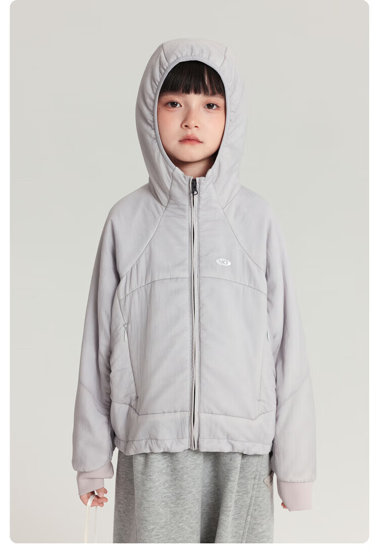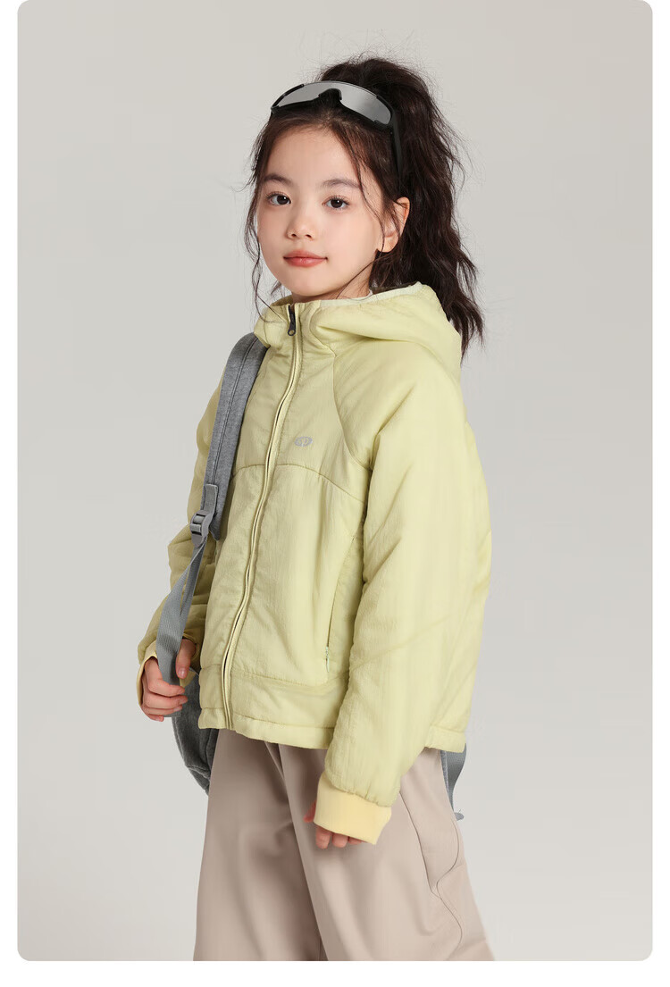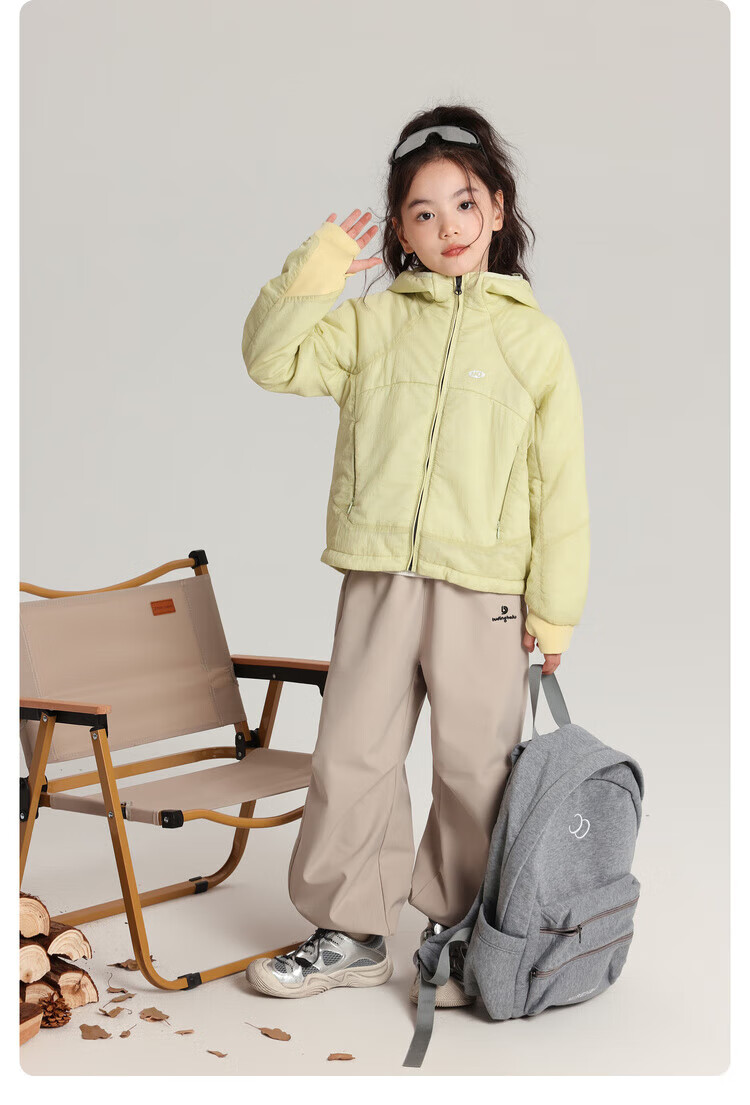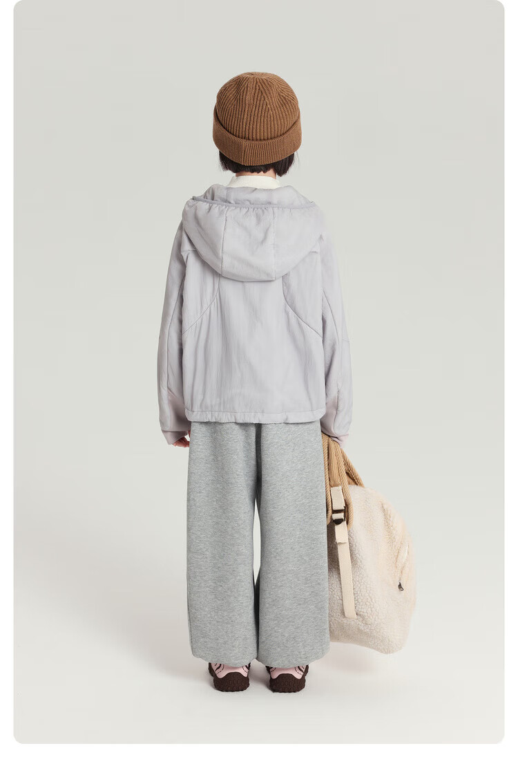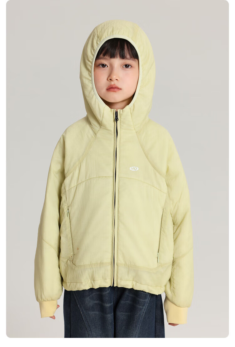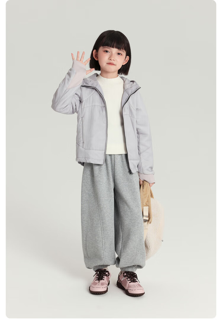 布丁哈鲁【轻盈体感】女童连帽棉服外套冬季新品中大童立体小标保暖外套潮
