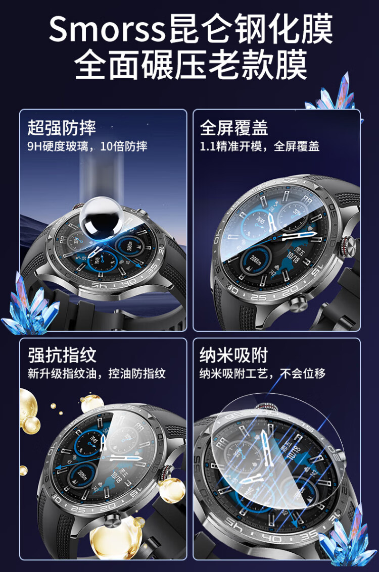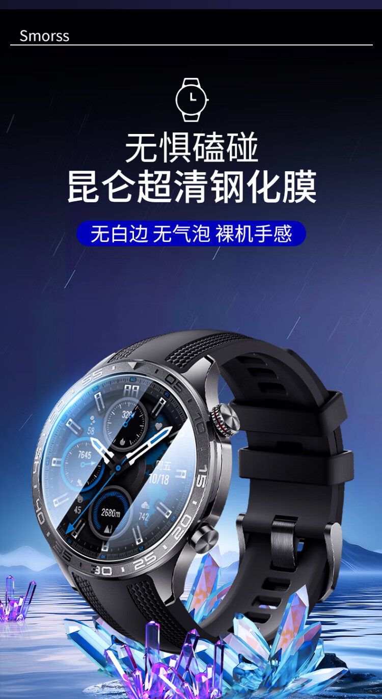 Smorss【2片精装】适用荣耀手表5Pro保护膜荣耀手表5Pro钢化膜智能手表膜全屏覆盖超清防刮防摔全胶贴膜