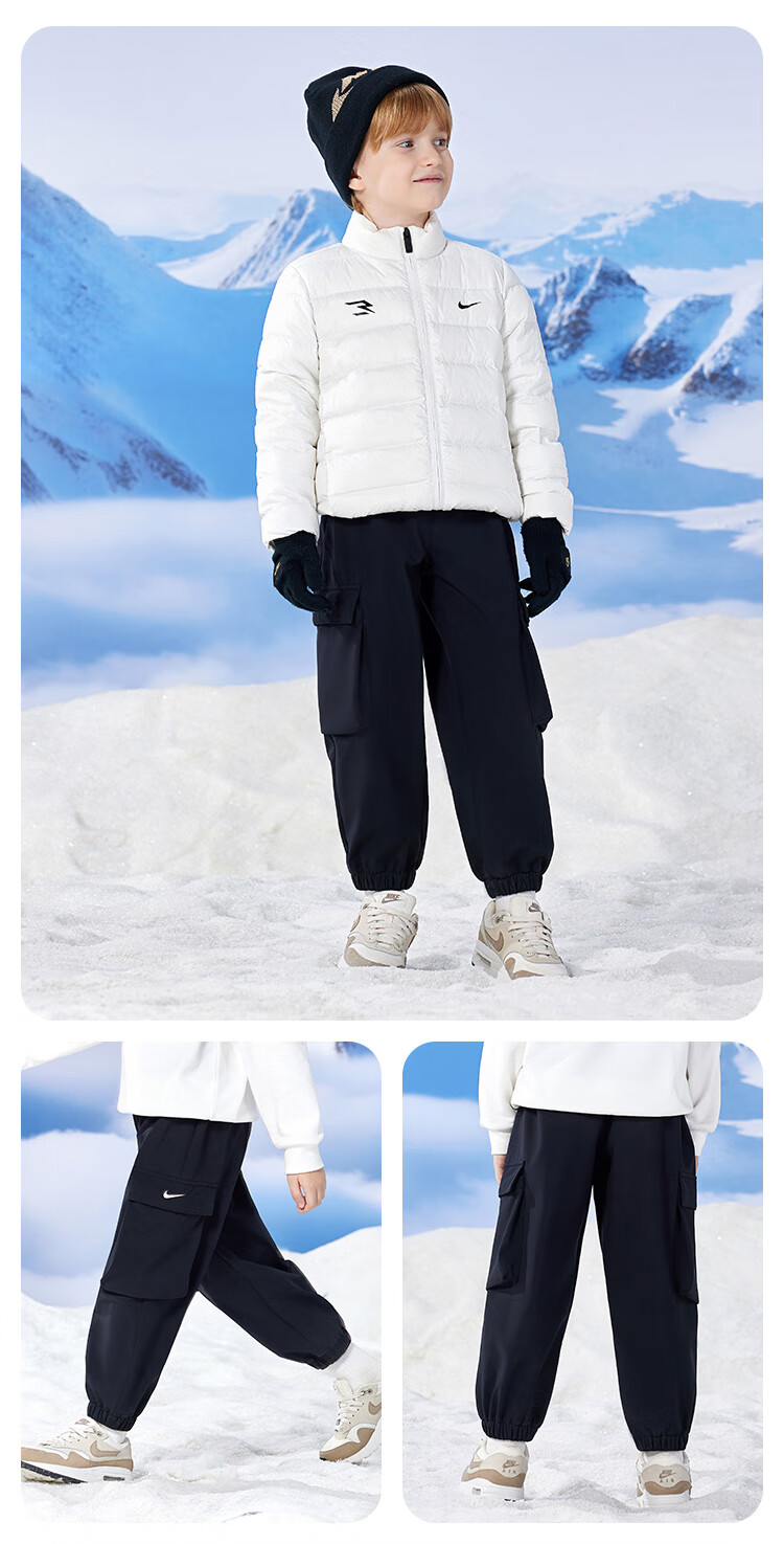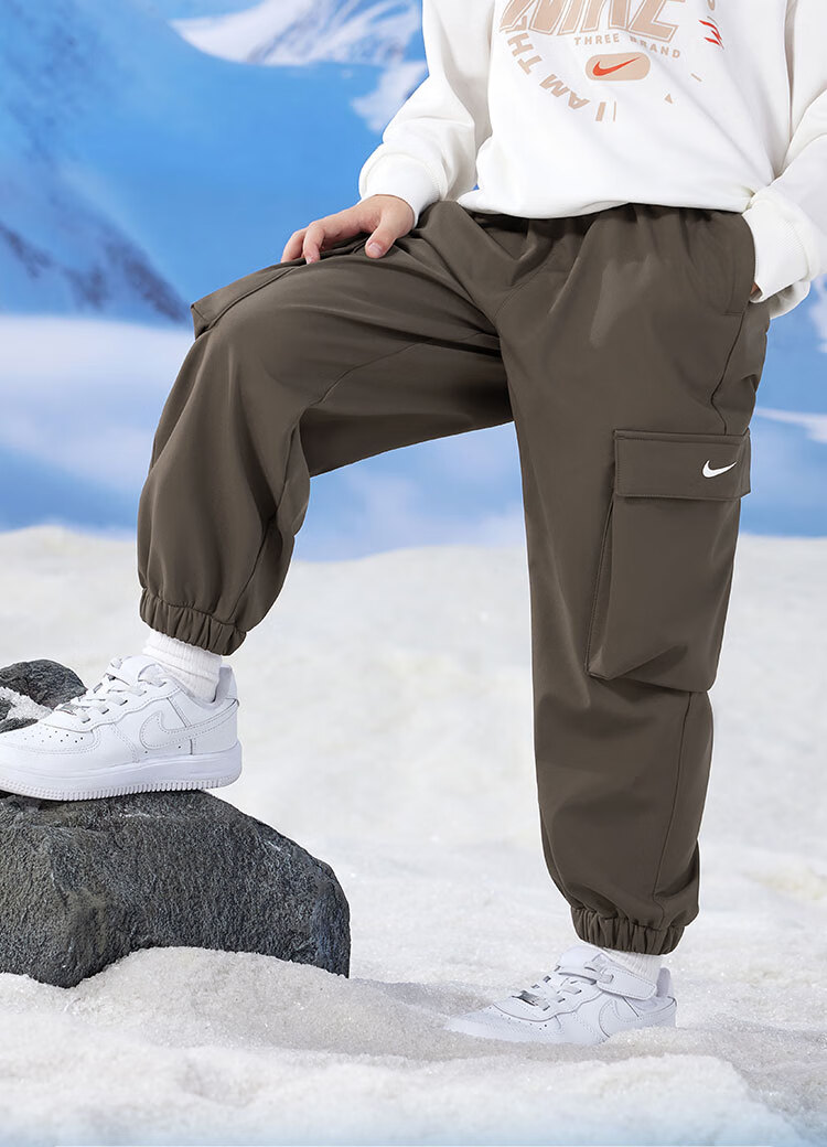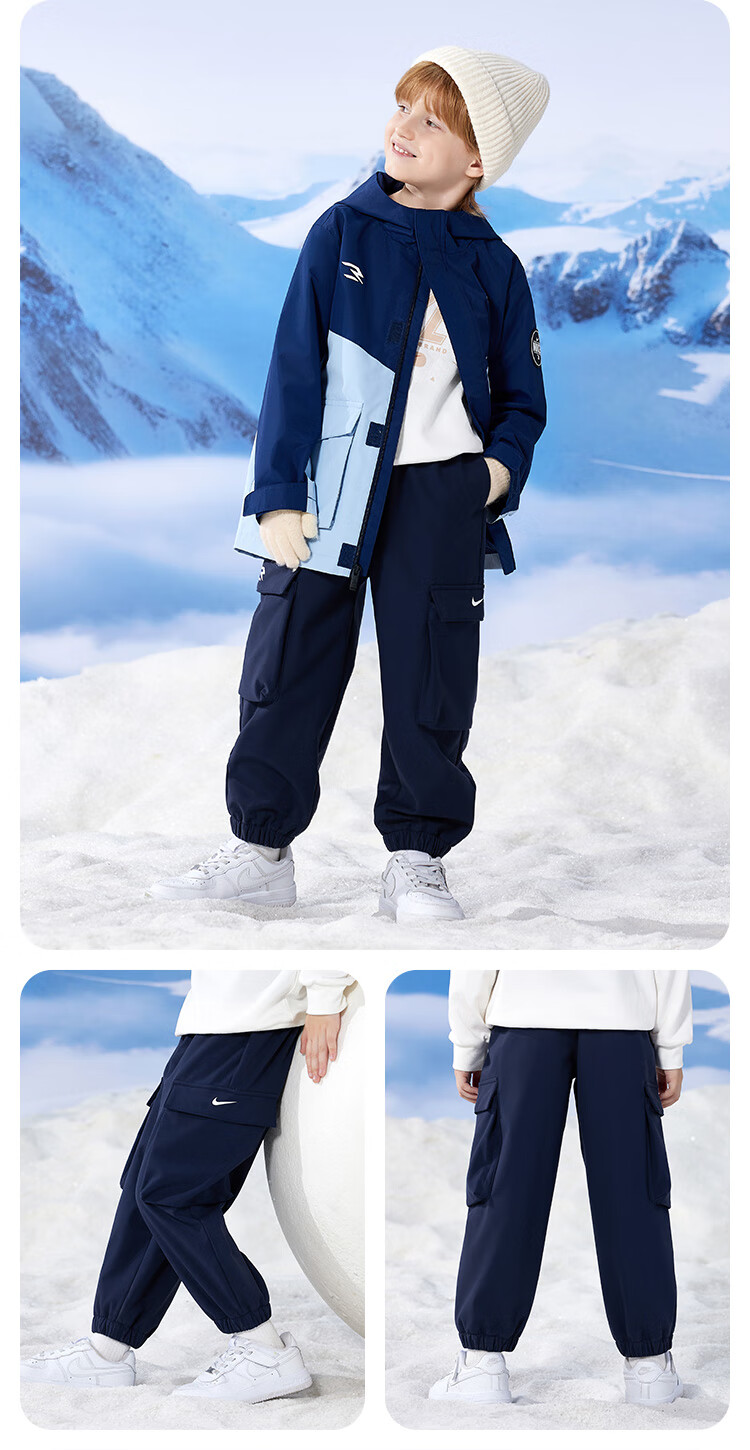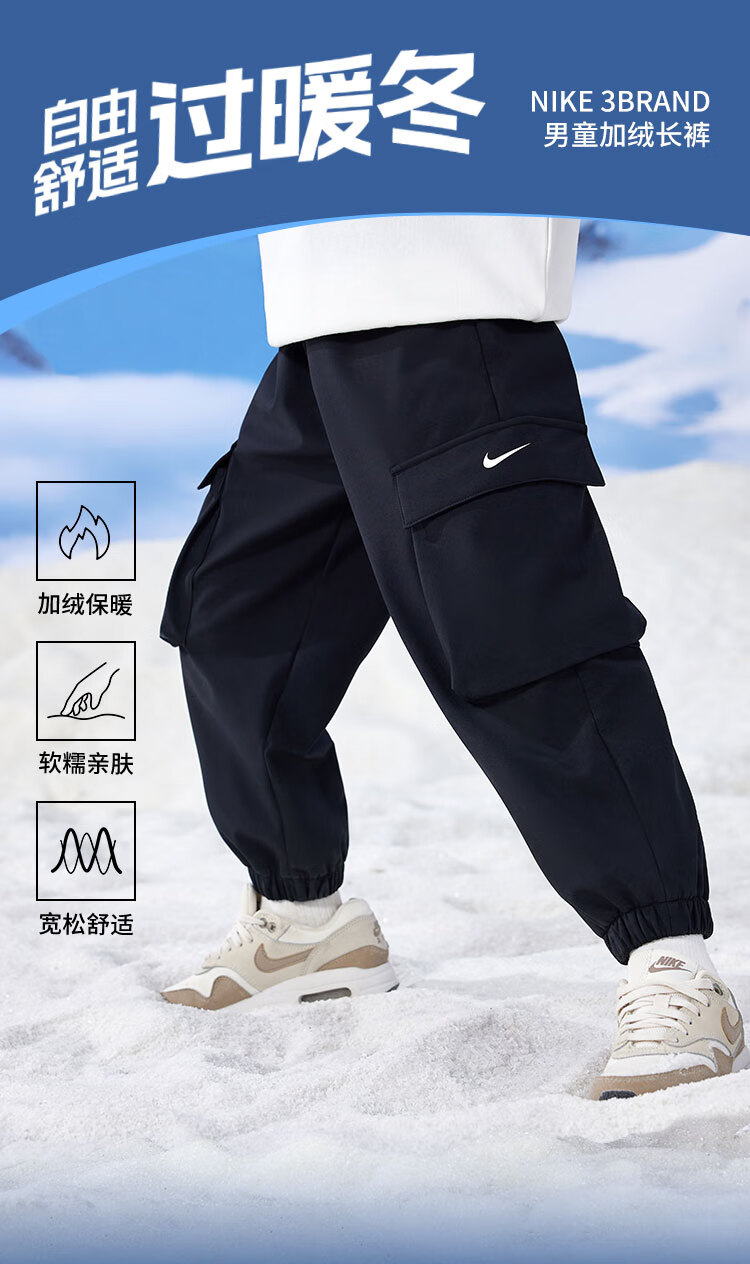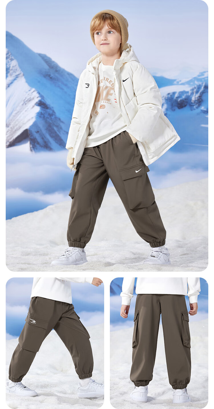 NIKE3BRAND 耐克男女童梭织长裤2025冬季新款加绒保暖儿童工装裤