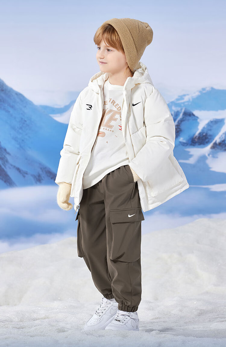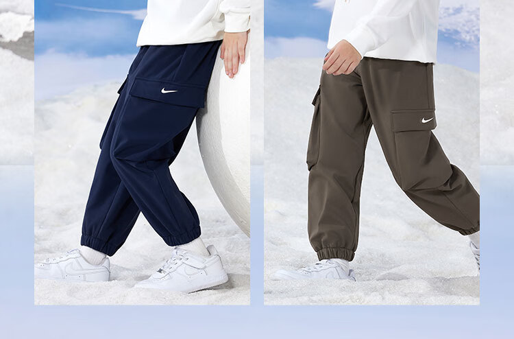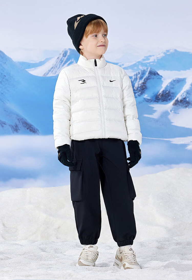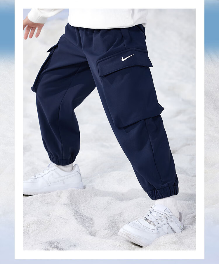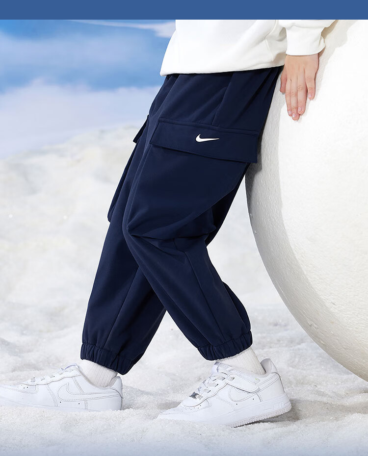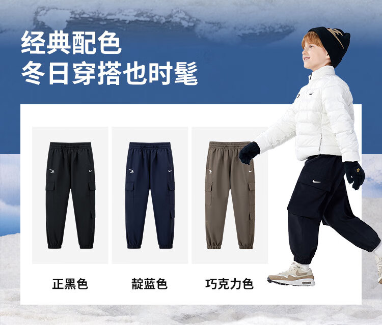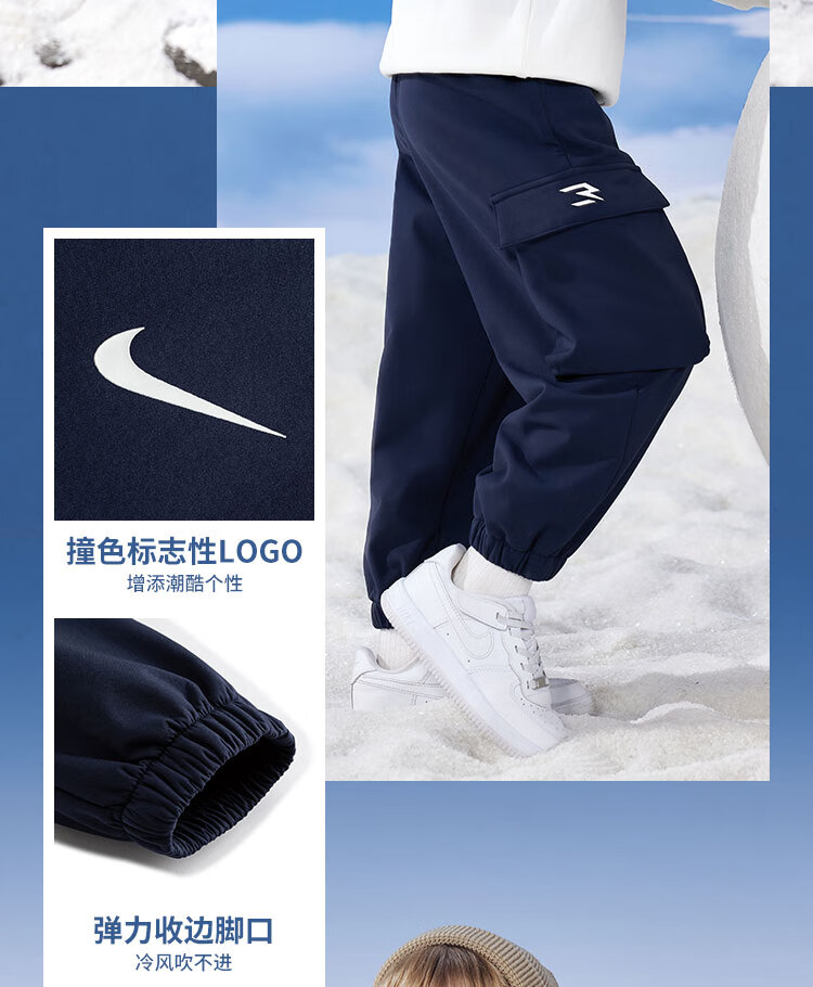 NIKE3BRAND 耐克男女童梭织长裤2025冬季新款加绒保暖儿童工装裤