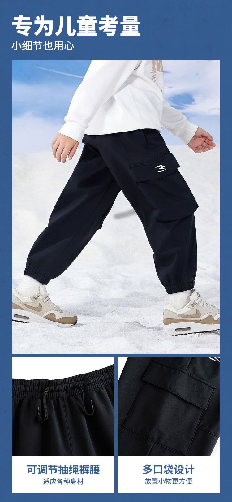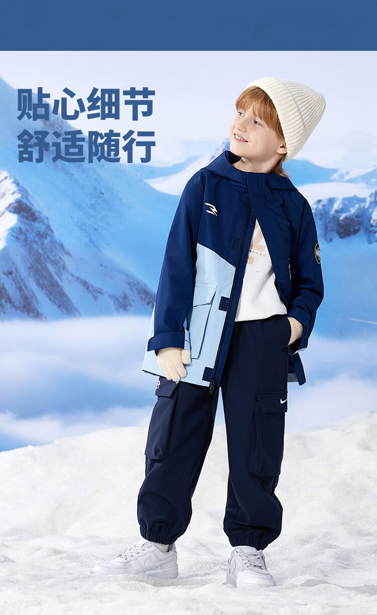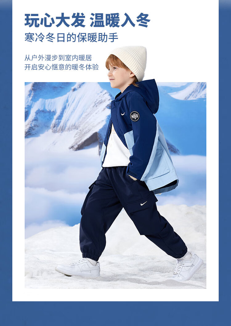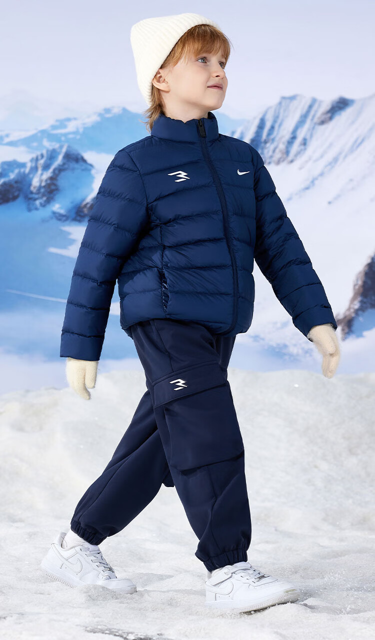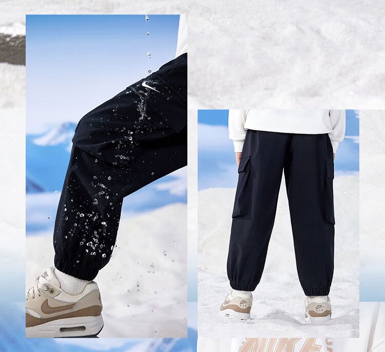 NIKE3BRAND 耐克男女童梭织长裤2025冬季新款加绒保暖儿童工装裤