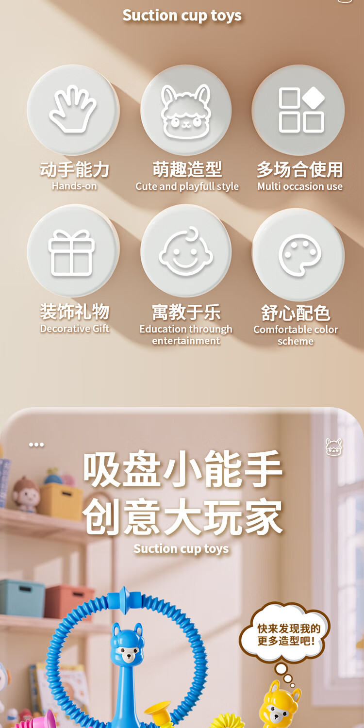 Tangmi Variedad educativa para niños Estiramiento Alpaca Telescópica Ventosa de dibujos animados Bebé Padres e hijos Interactivo Juguete de descompresión masculino y femenino