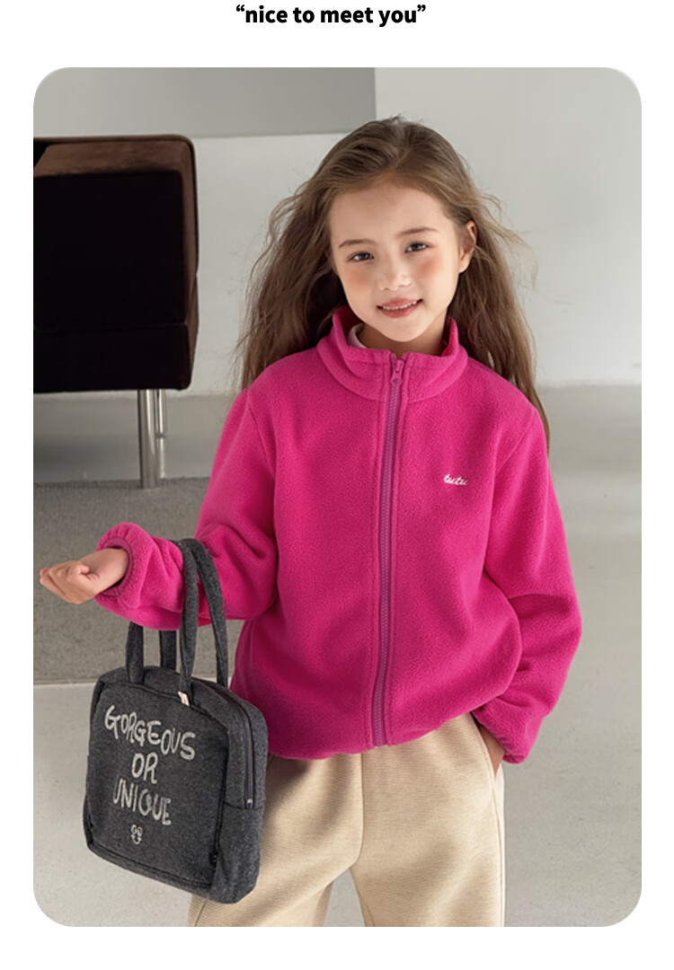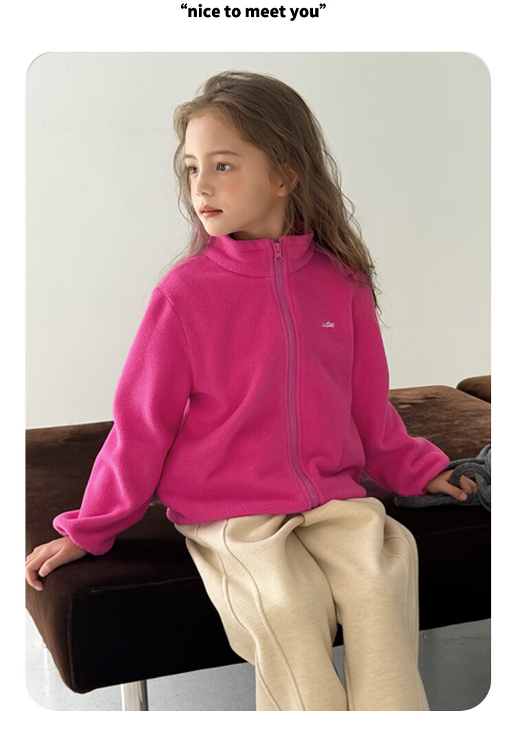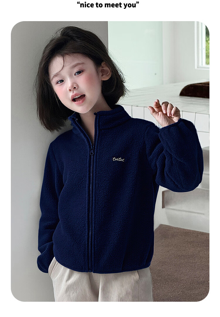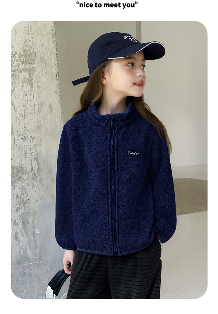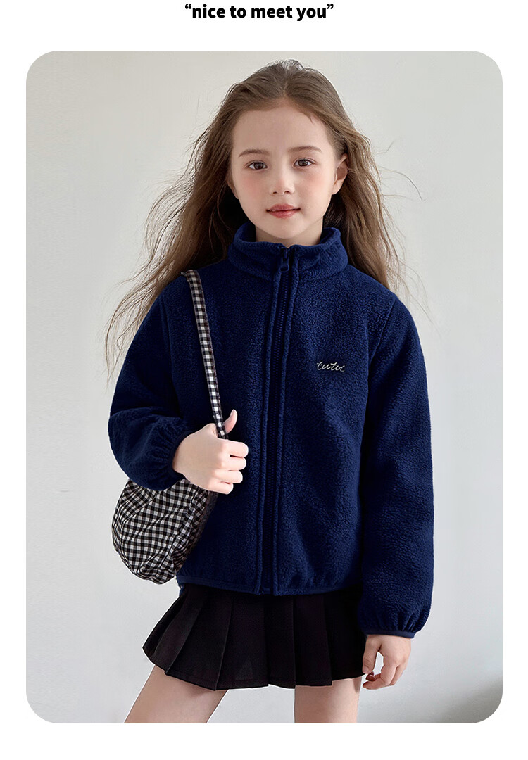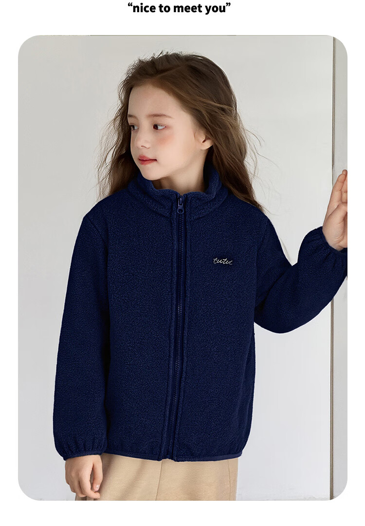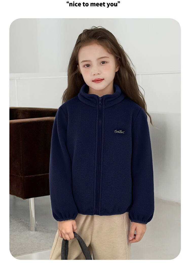 图图小象女童摇粒绒外套儿童百搭内胆上衣保暖内搭 藏青色 140