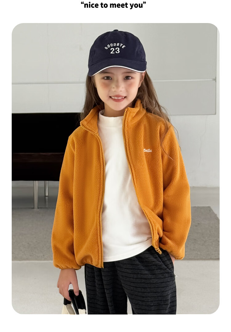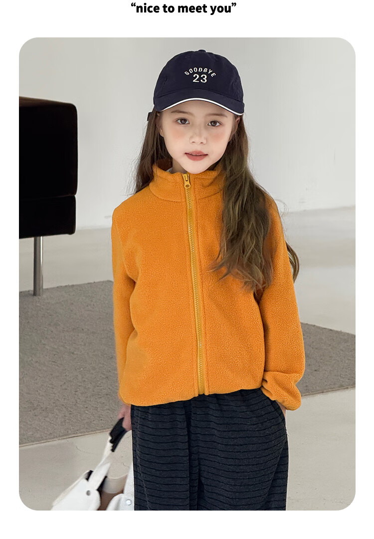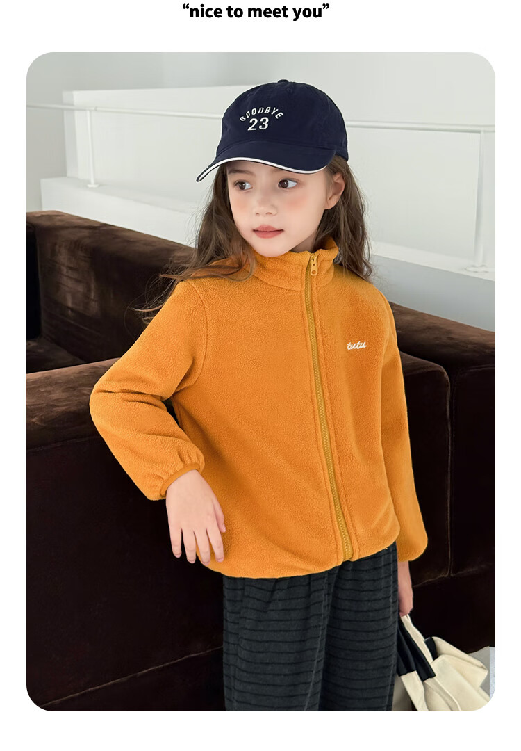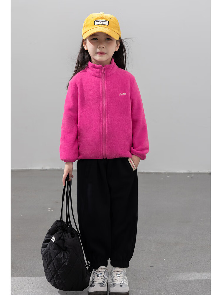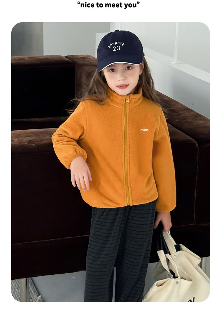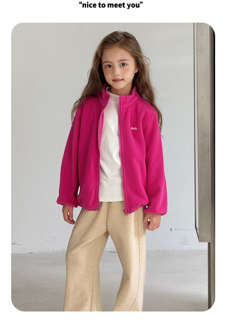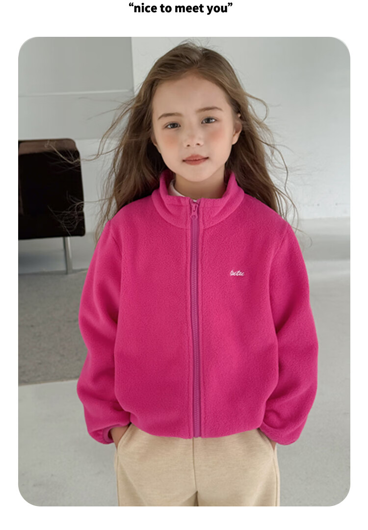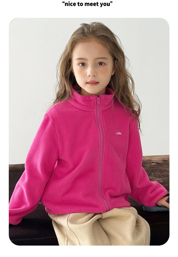图图小象女童摇粒绒外套儿童百搭内胆上衣保暖内搭 藏青色 140