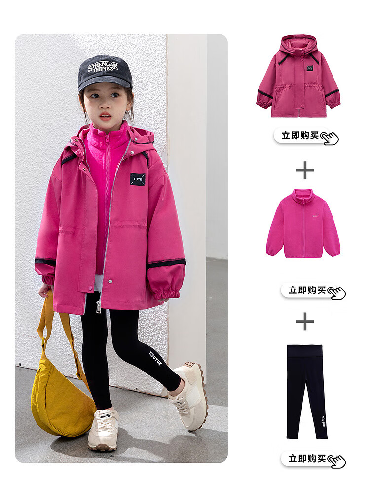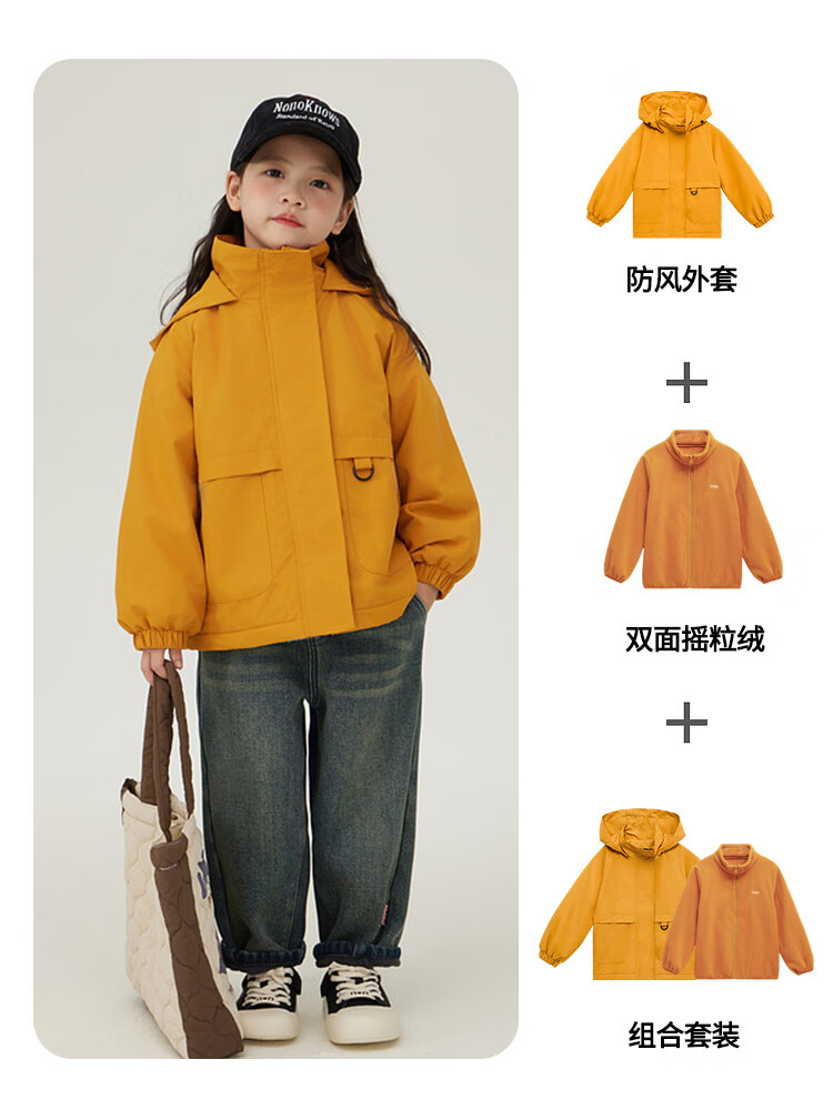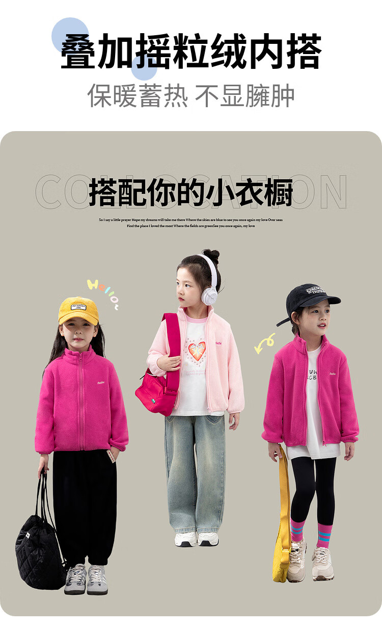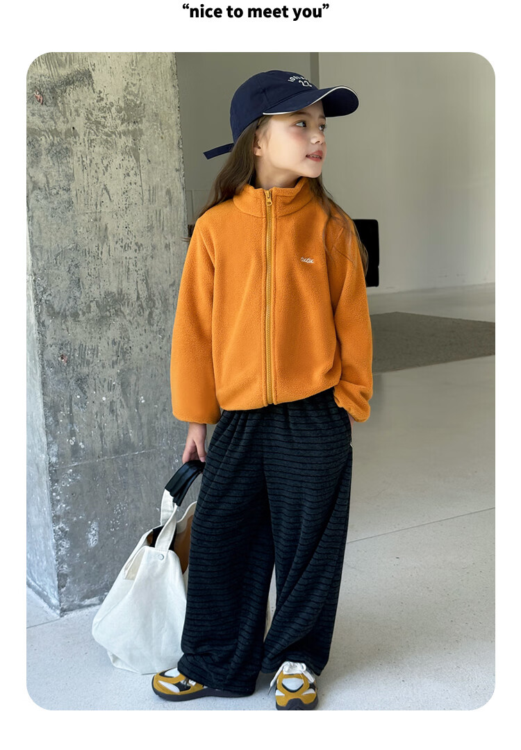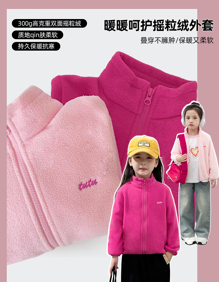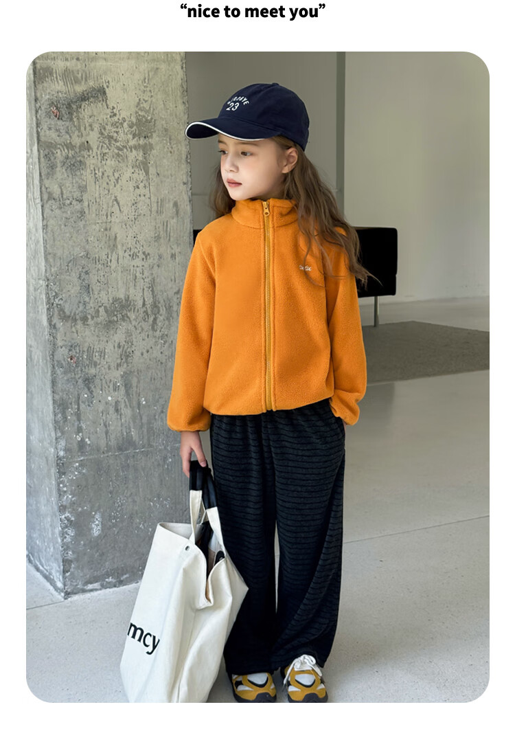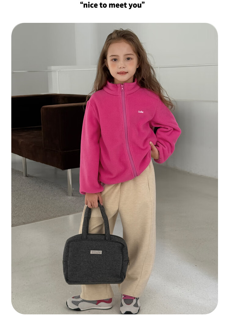 图图小象女童摇粒绒外套儿童百搭内胆上衣保暖内搭 藏青色 140