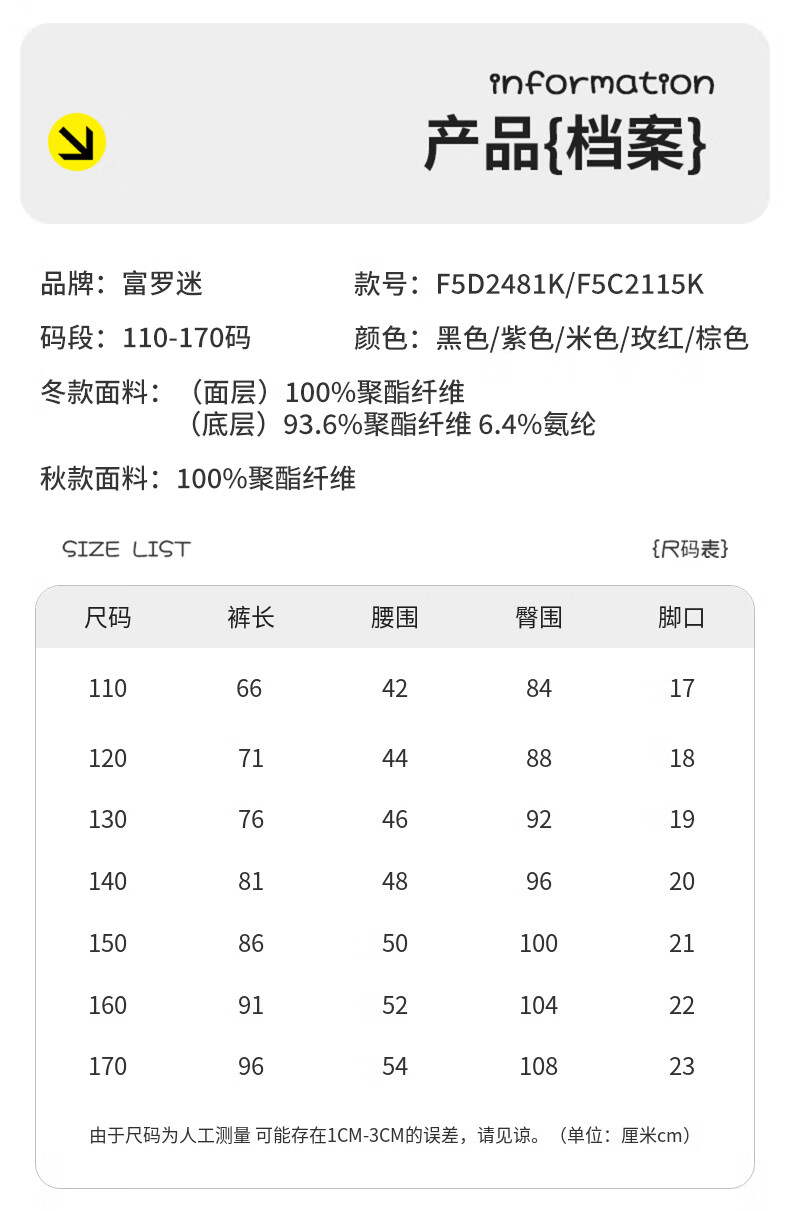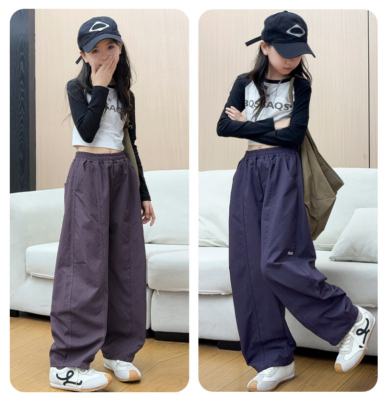 富罗迷女童裤子冬季加绒保暖休闲工装裤儿童弯刀裤 紫色 (加绒款) 160