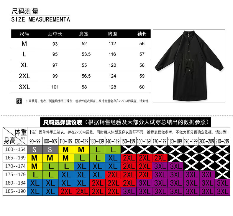 China (cm) 165 / 88-90 170 / 96-98 175 / 108-110 180 / 118-122 185 / 126-130