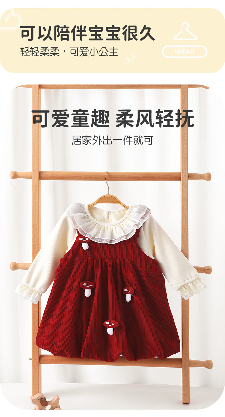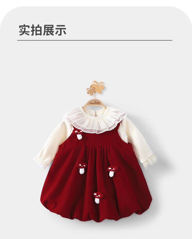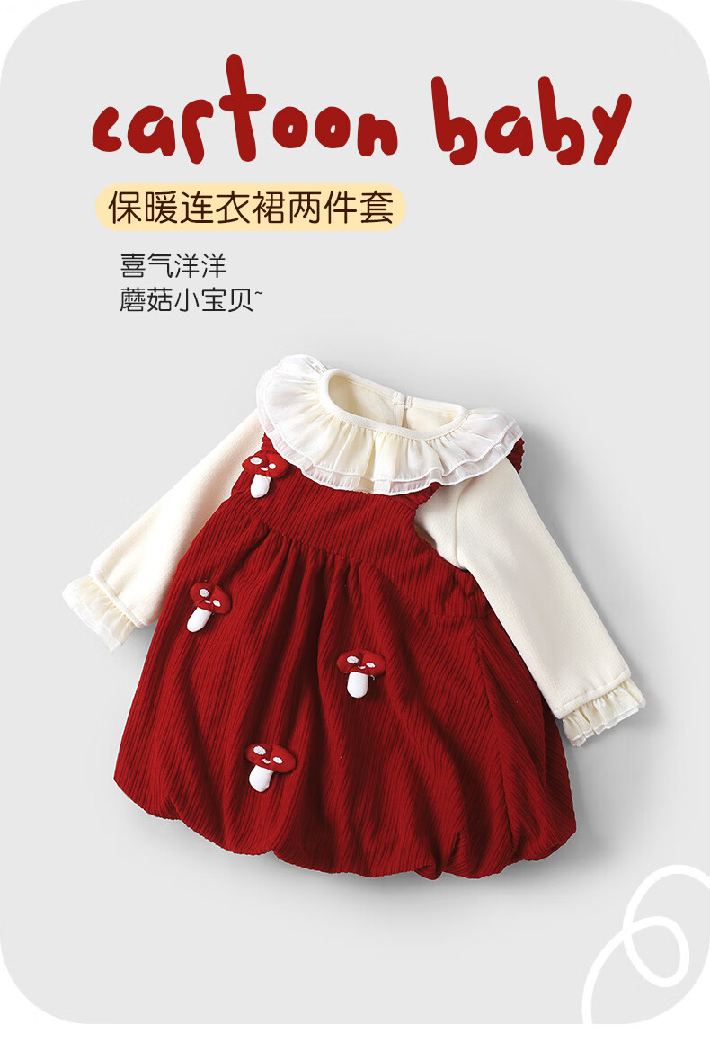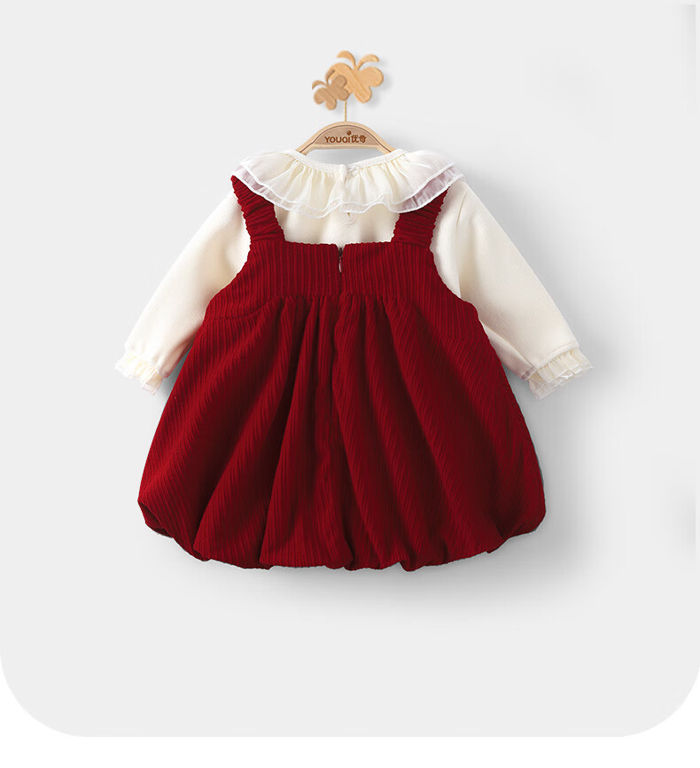 Youqi Mädchen Kleid Anzug Herbst und Winter plus Samt zweiteiliges Set Kinder Prinzessin Neujahrsgrüße Kleid einjähriges Baby Mädchen Kleid Rock