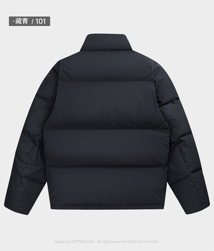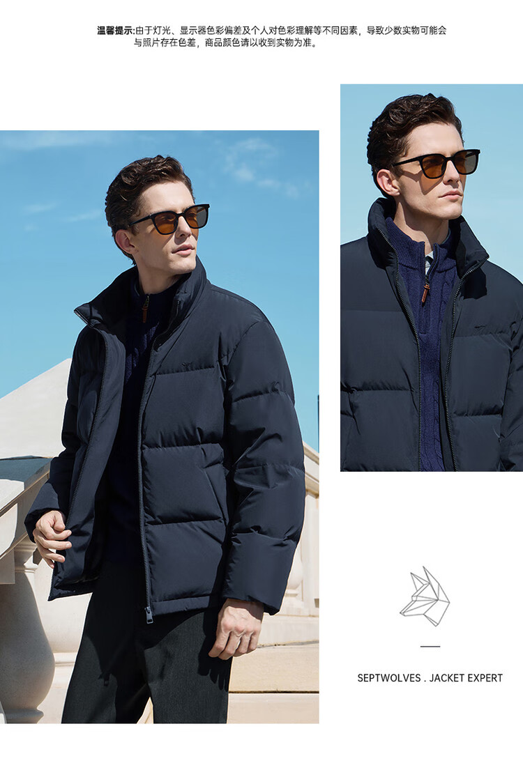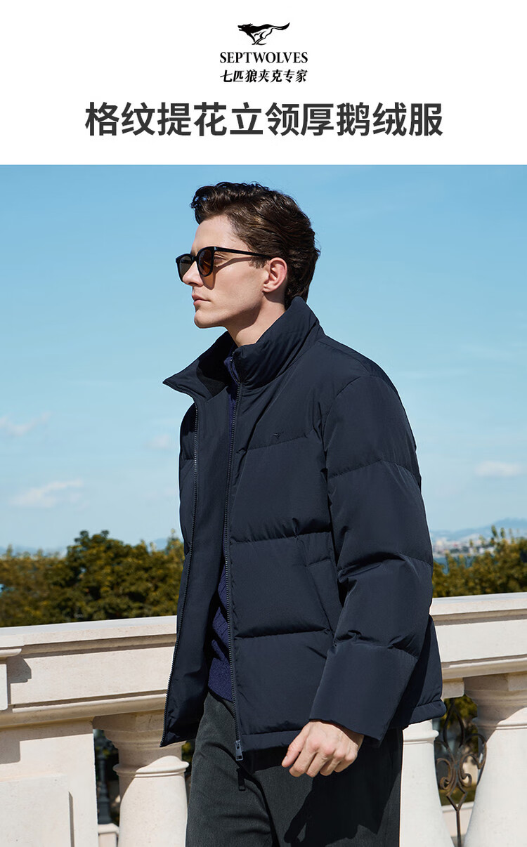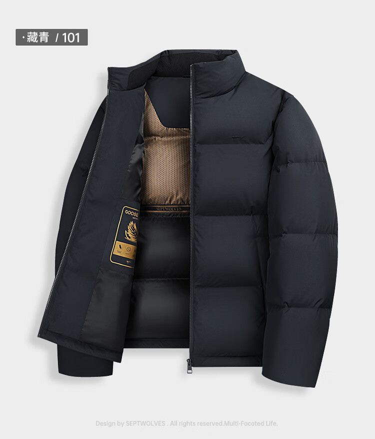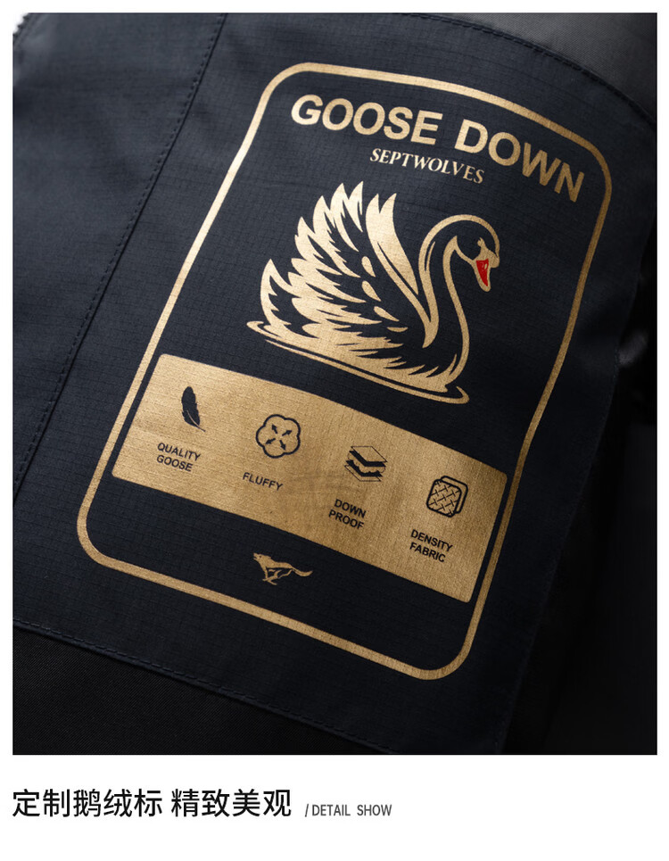 Septwolves Gänsedaunen-Graphen-Daunenjacke, Winter, Stehkragen, warme Herren-Pendler-Dickjacke, Schwarz, L