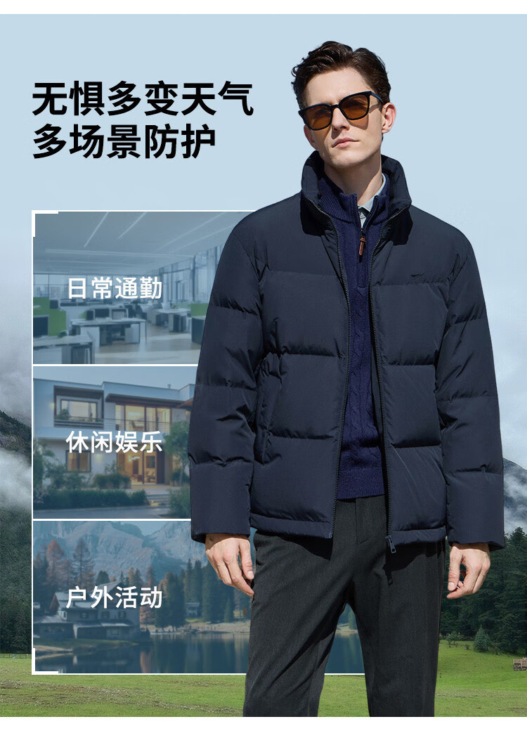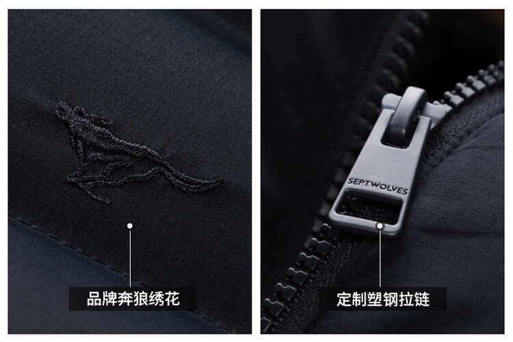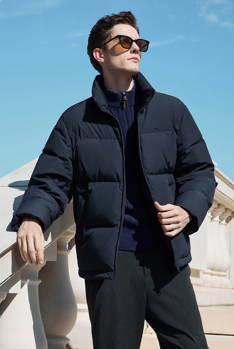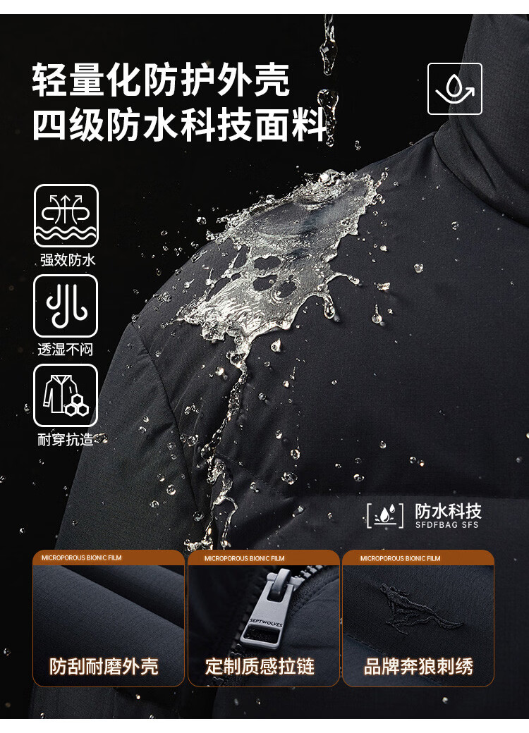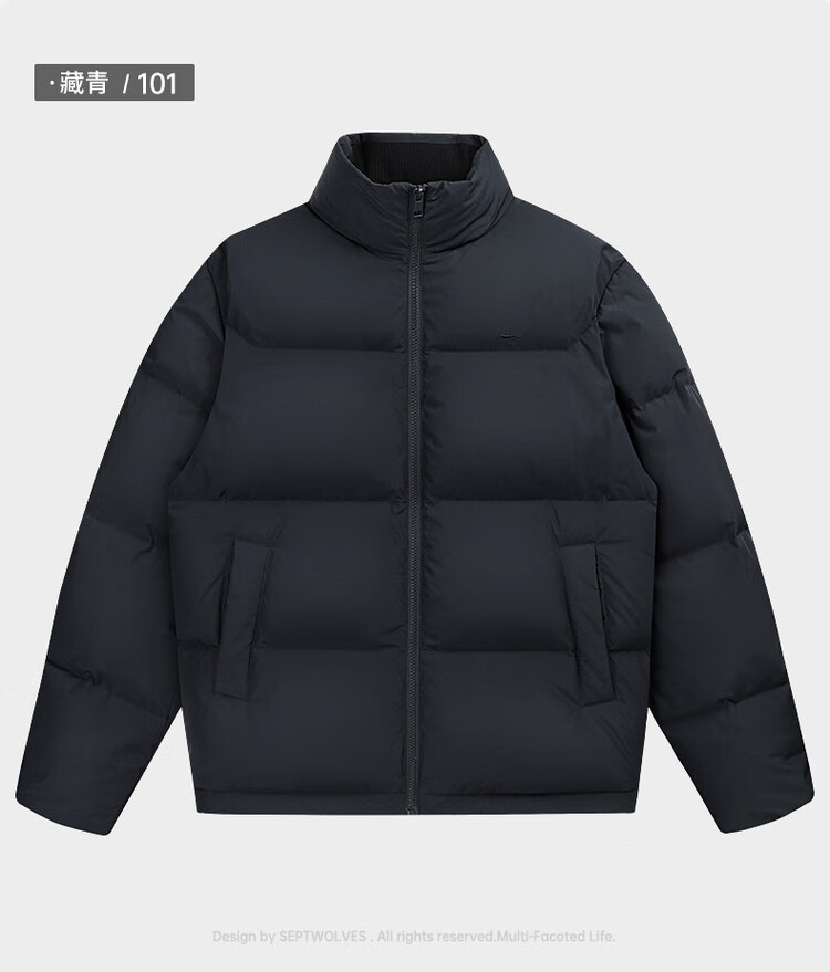 Septwolves Gänsedaunen-Graphen-Daunenjacke, Winter, Stehkragen, warme Herren-Pendler-Dickjacke, Schwarz, L