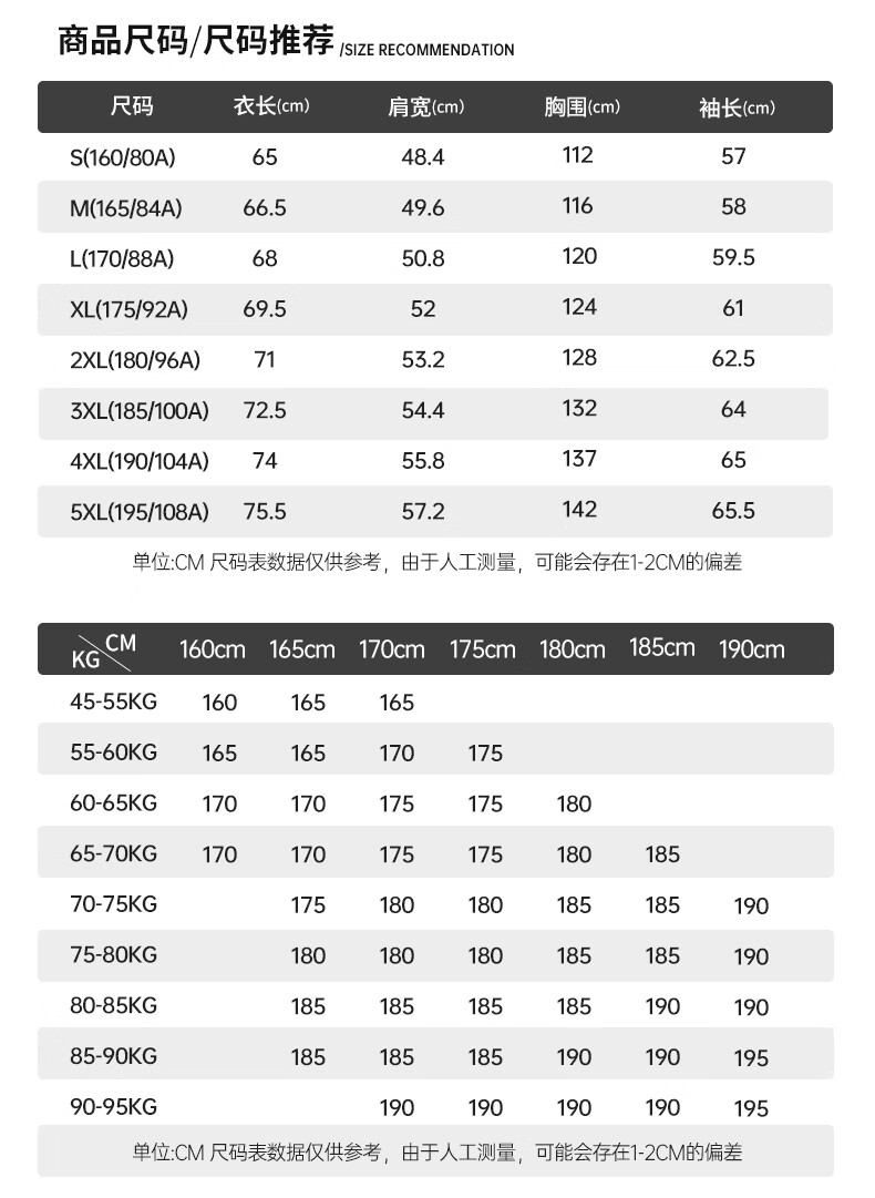 China (cm) 160-165/84-86 165-170 / 88-90 167-172 / 92-96 168-173 / 98-102 170-176 / 106-110