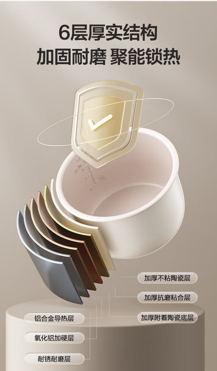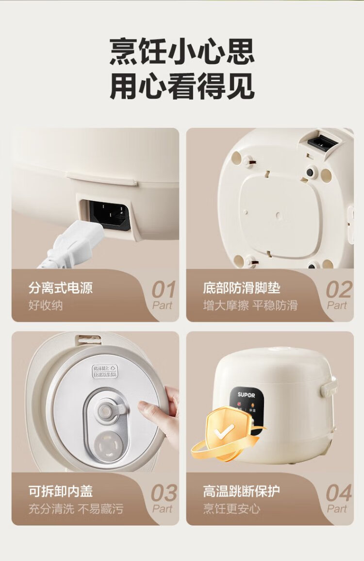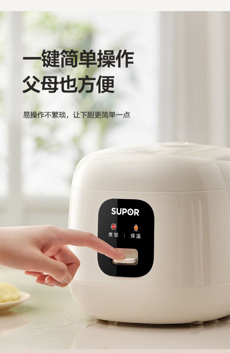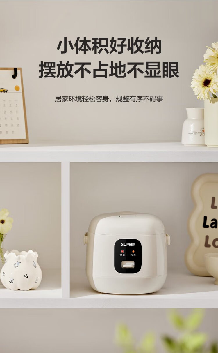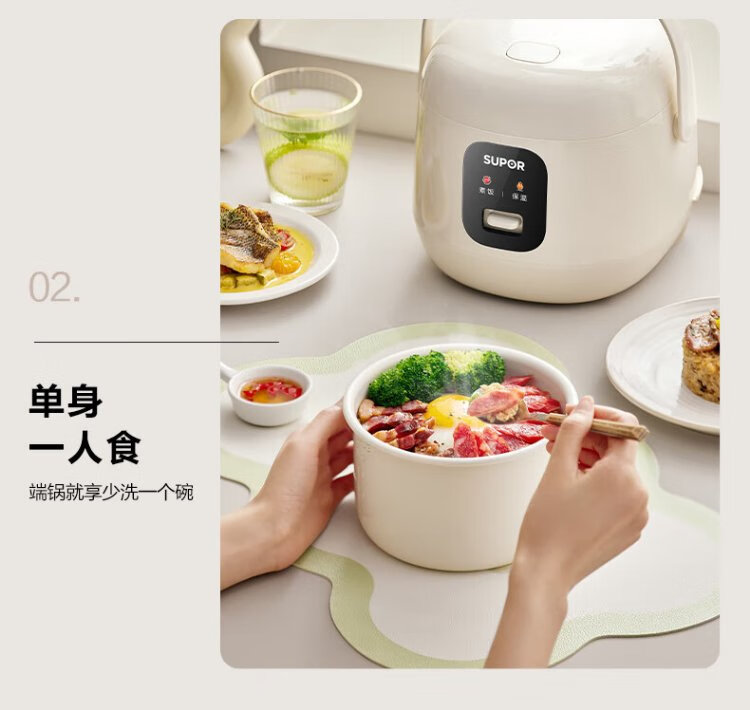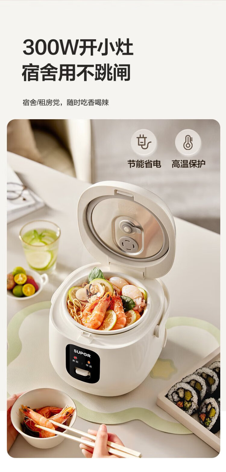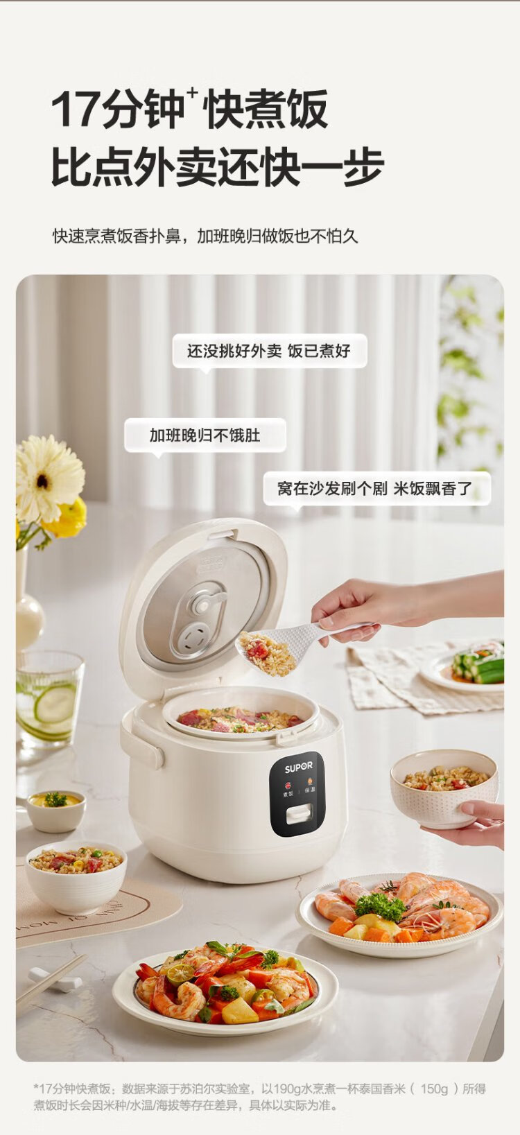SUPOR Olla arrocera pequeña para 1-2 Personas, Olla Interior Antiadherente de cerámica de 1,6 litros, cocción rápida, Gachas de Mijo, Arroz al Vapor, Mini Olla arrocera de micropresión pequeña Multifuncional Inteligente para Dormitorio F16R71