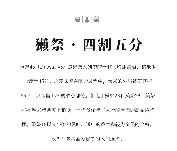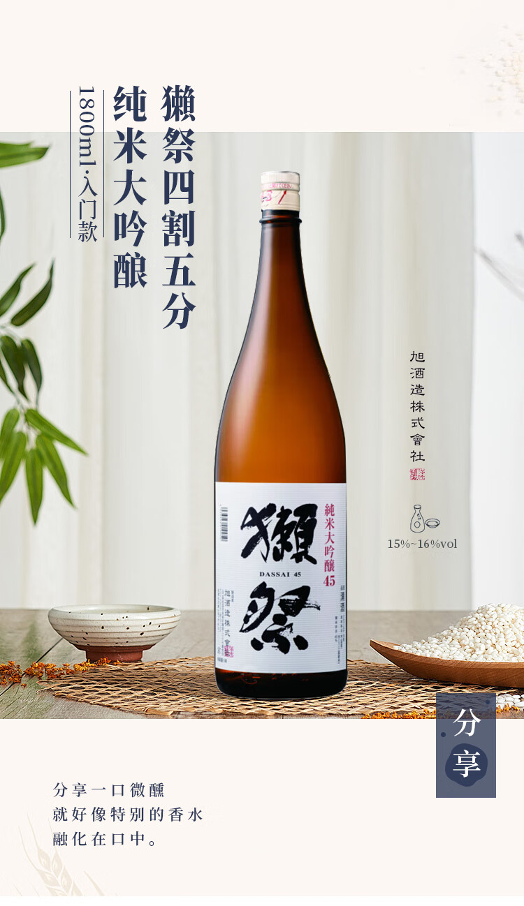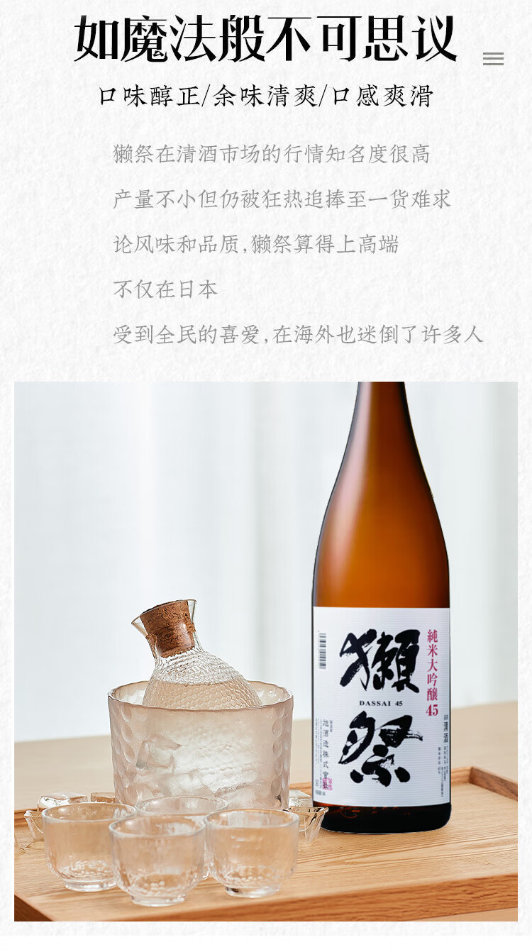 獭祭四割五分1.8L双支装【单瓶低至261】日本清酒