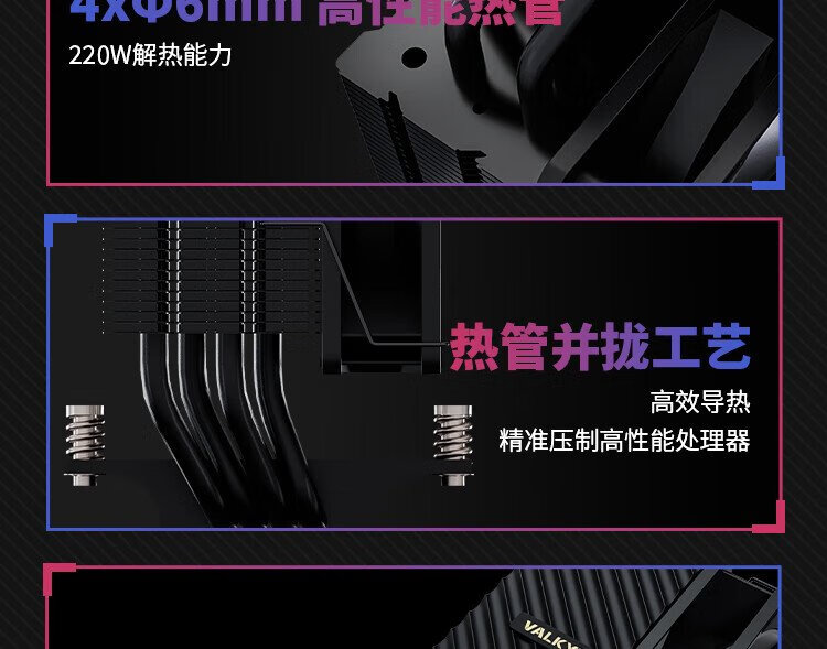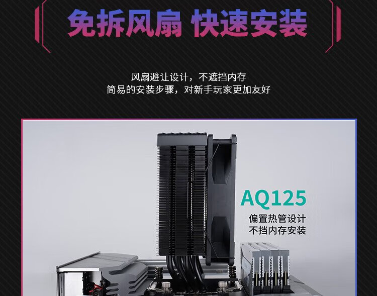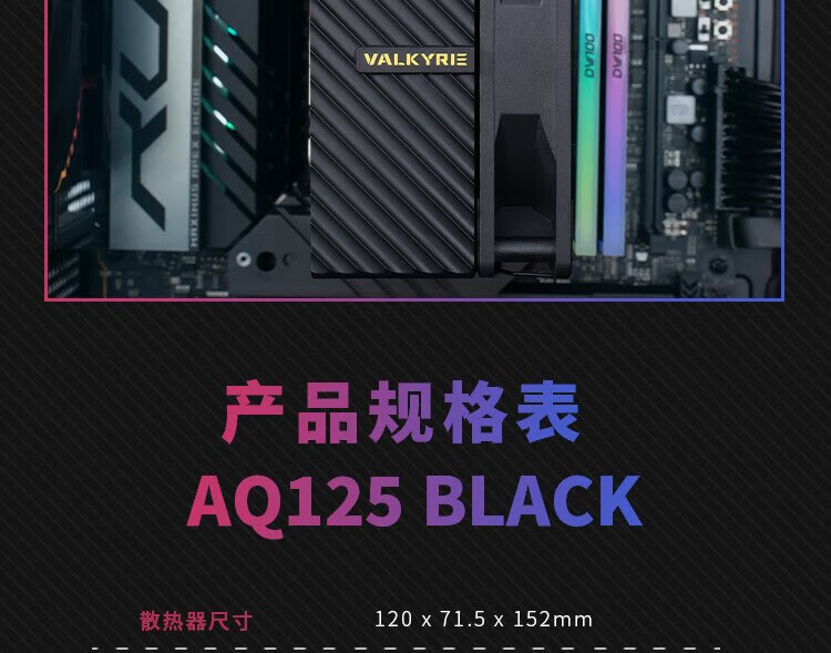 VALKYRIE AQ125 BLACK VK CPU radiateur refroidi par air, anti-gravité quatre caloducs contact direct, ventilateur 12CM, prend en charge LGA1700 AM5