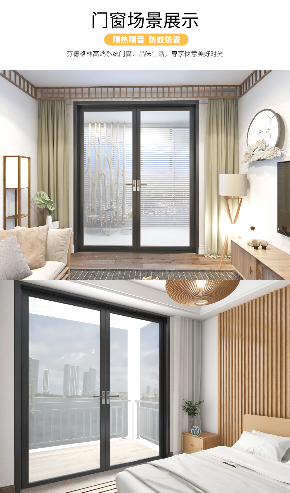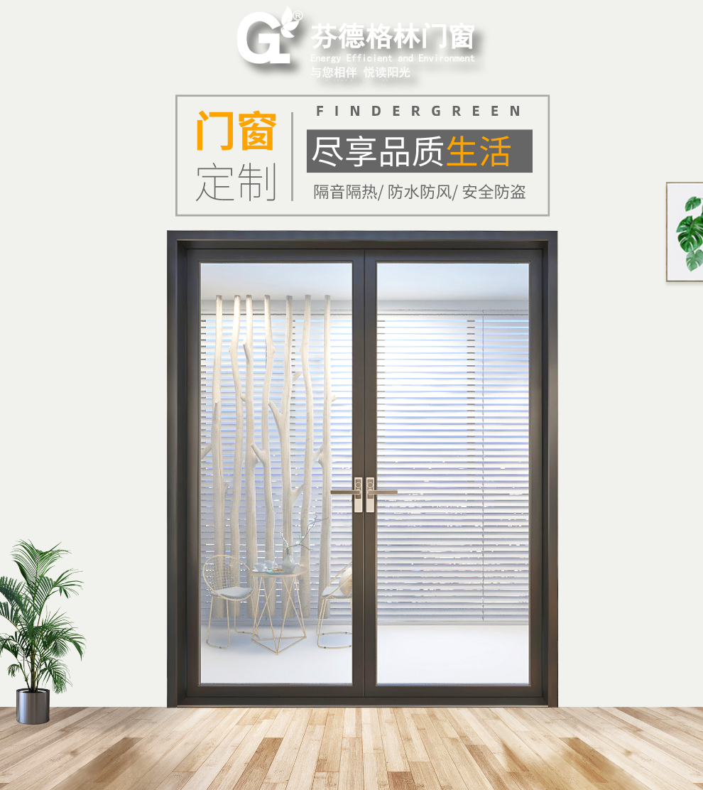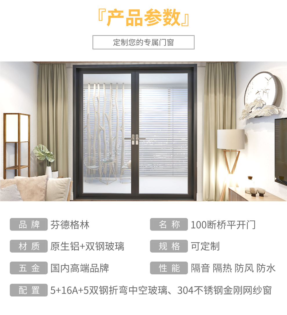 芬德格林门窗100断桥铝合金平开门 带304不锈钢金刚网纱门 防撞隔音防盗室内门客厅阳台室内门窗定制 定制金(可抵货款)