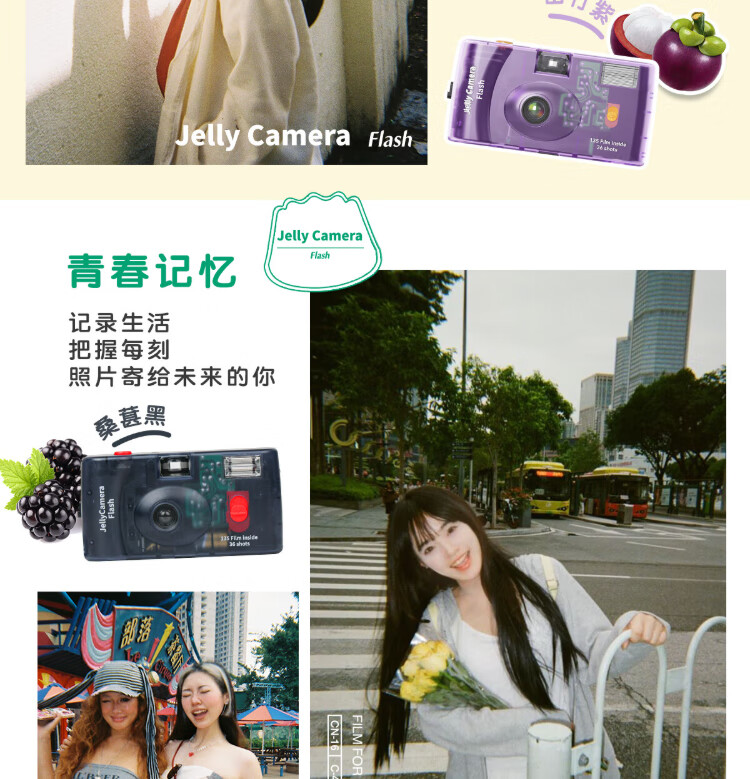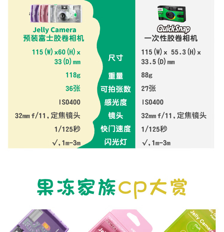 富士(FUJIFILM)果冻相机 胶卷相机 C400胶卷相机果冻相机 可拍36张 桑葚黑 透明胶片相机 一次性胶卷相机