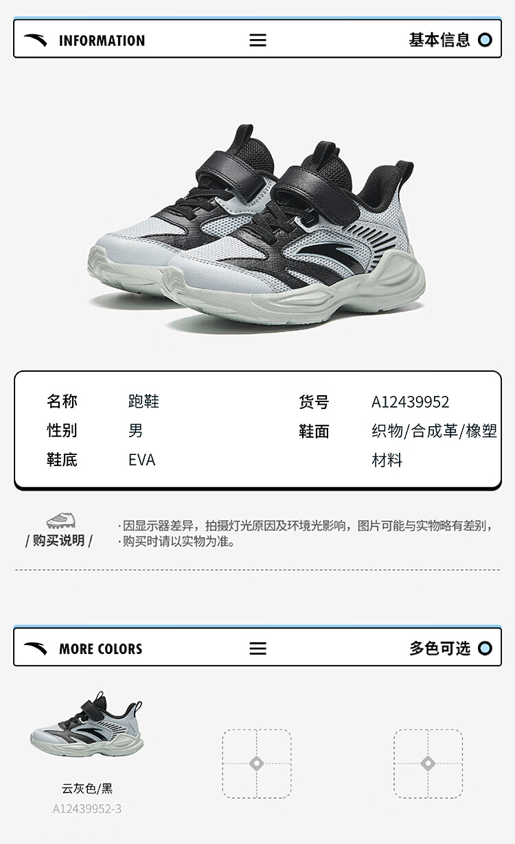 安踏儿童男小童跑鞋2025秋男童跑步鞋透气轻便运动鞋A12449970H