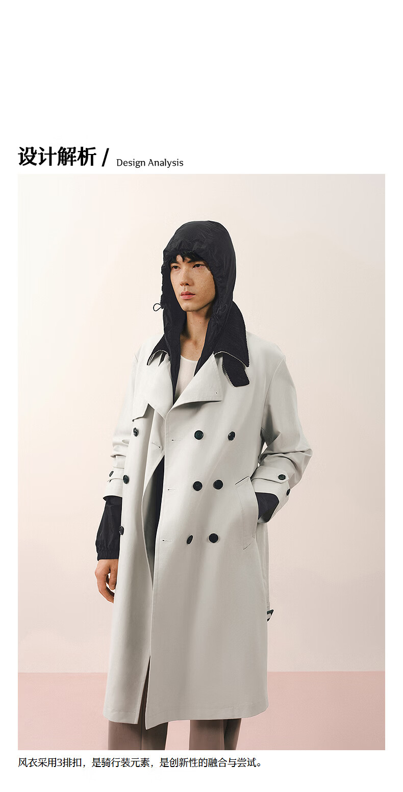 Sketch men's 2026 spring new windbreaker H-shaped hooded oversize long 9Q1920680 126 gray M