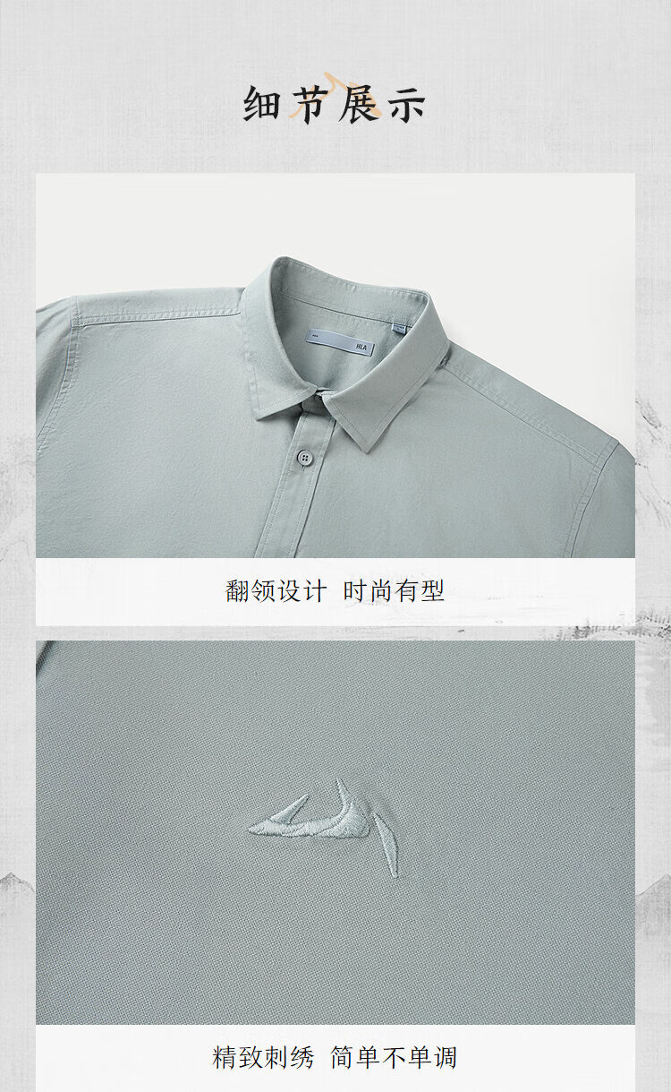 HLA海澜之家长袖衬衫男25山不在高系列牛津纺有型衬衣男