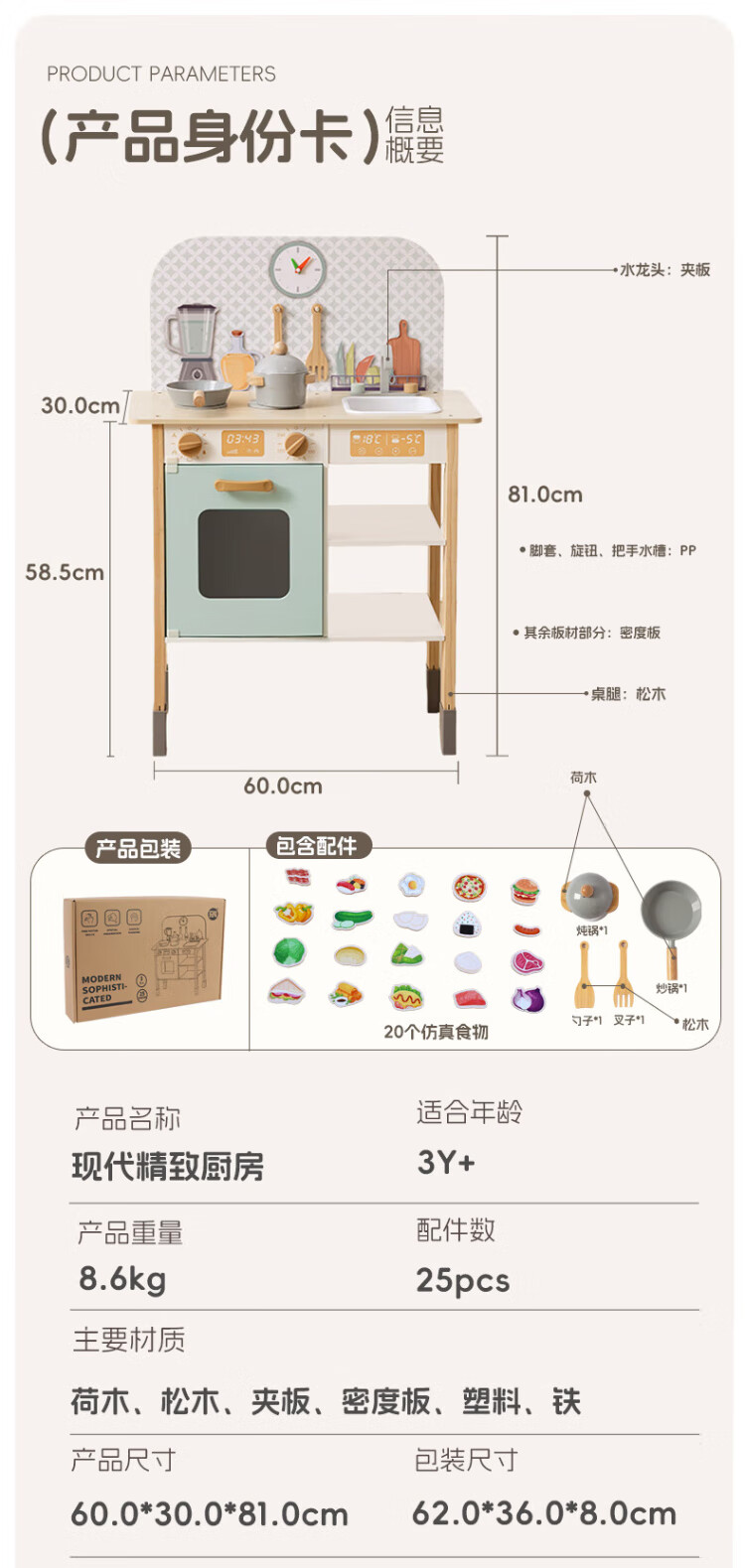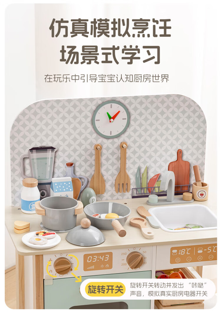 菲加尼仿真迷你小厨房玩具套装儿童做饭过家家厨具女孩生日礼物