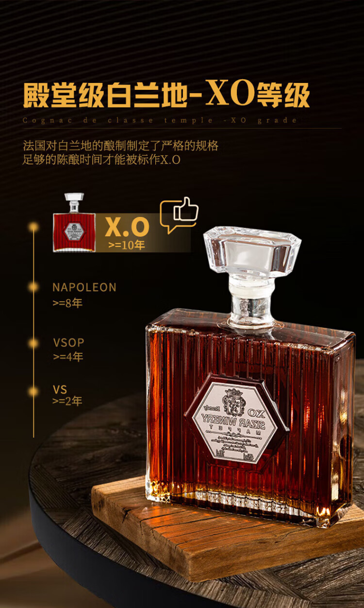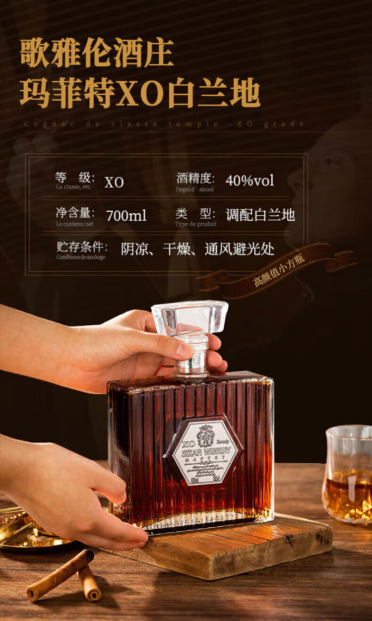 歌雅伦酒庄法国 XO白兰地 40度 700ml单瓶装 原酒进口洋酒宴请商务纯饮百搭