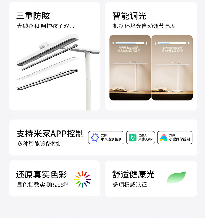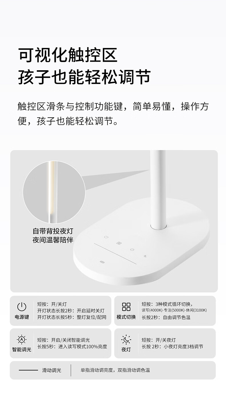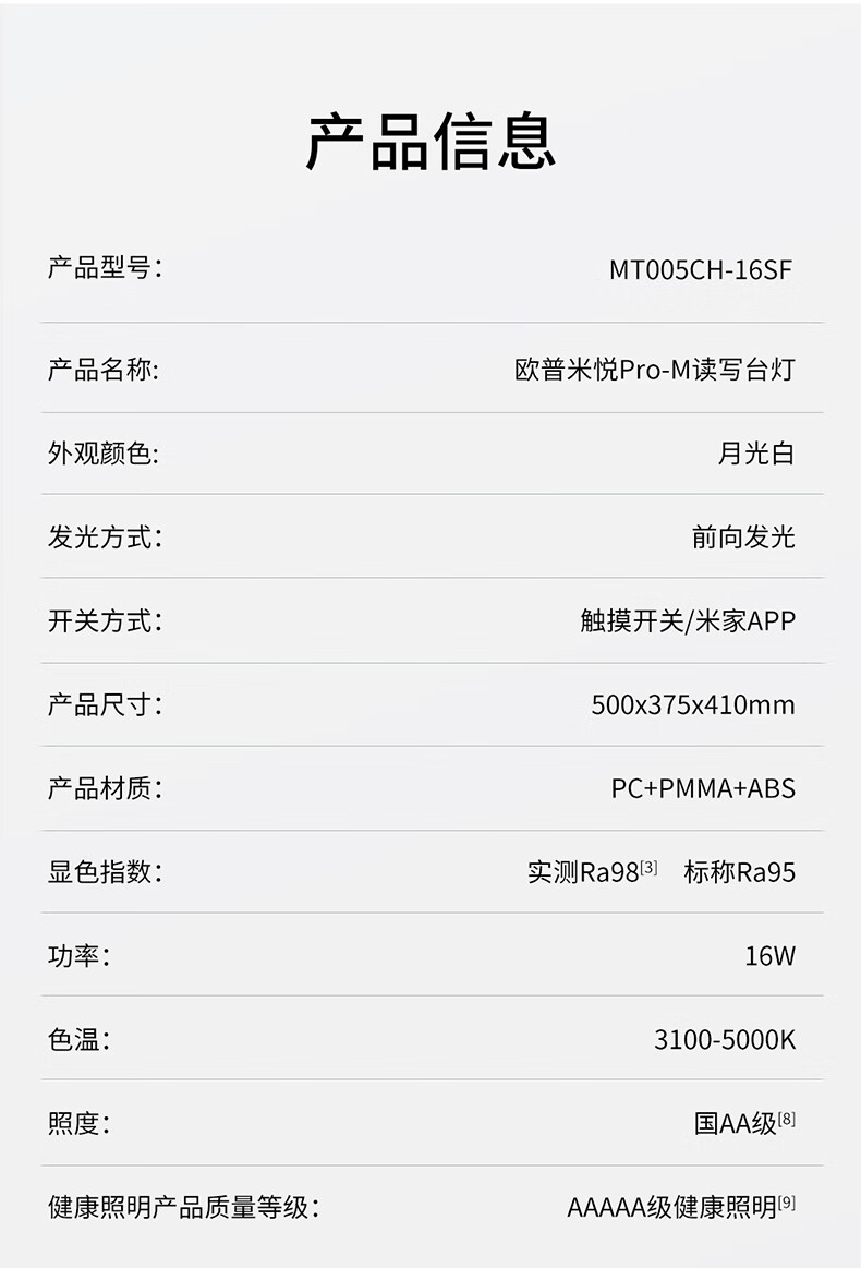 欧普(OPPLE)智控调光护眼台灯学习儿童学生防蓝光防近视全光谱米悦pro