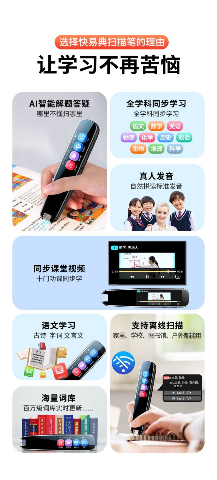 爱百分【无网也可用】爱百分英语点读笔全科通用电子词典扫描笔学习机同步课本儿童小学初中高中生翻译笔