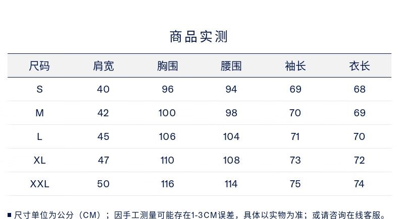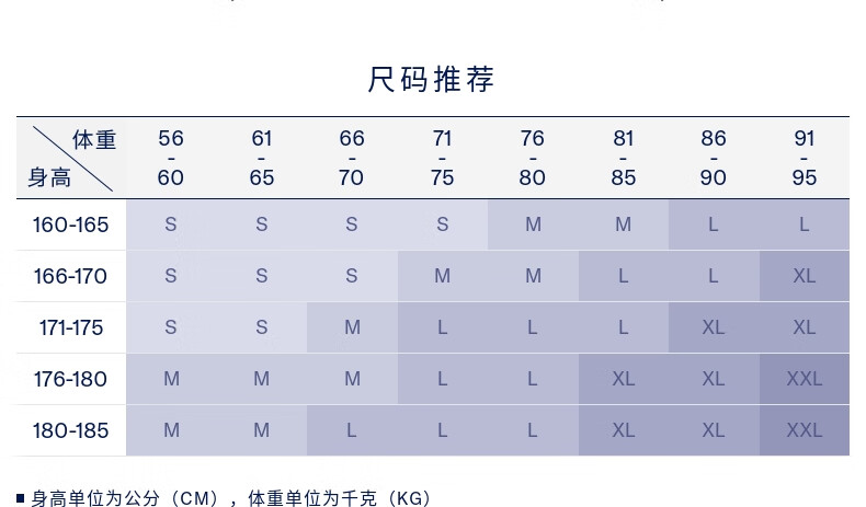 China (cm) 160-165/84-86 165-170 / 88-90 167-172 / 92-96 168-173 / 98-102 170-176 / 106-110