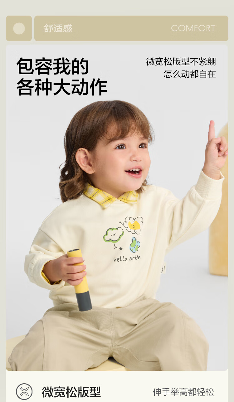 巴拉巴拉balaOne童装儿童卫衣宝宝男童女童2025秋装婴儿上衣208325121201