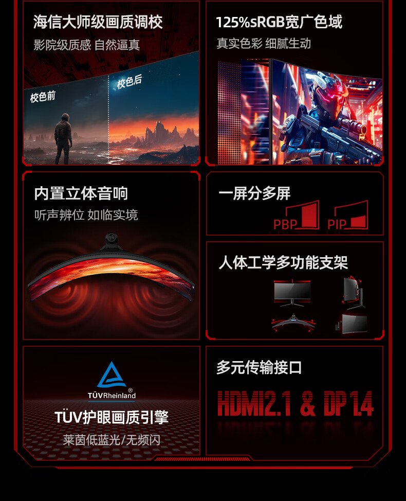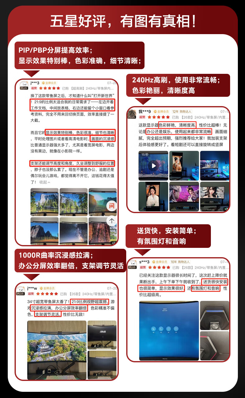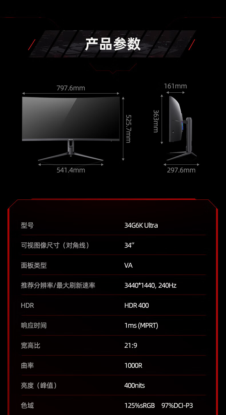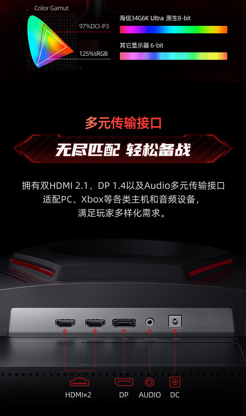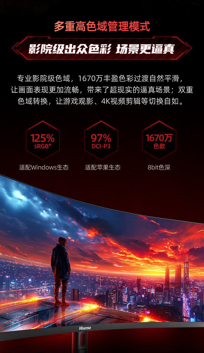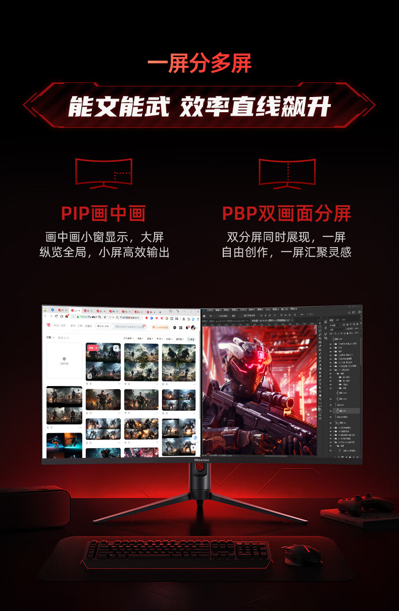 Hisense 34-inch fish screen display 240Hz high brush 1000R curvature built-in audio HDR400 WQHD curved gaming screen 34G6K Ultra