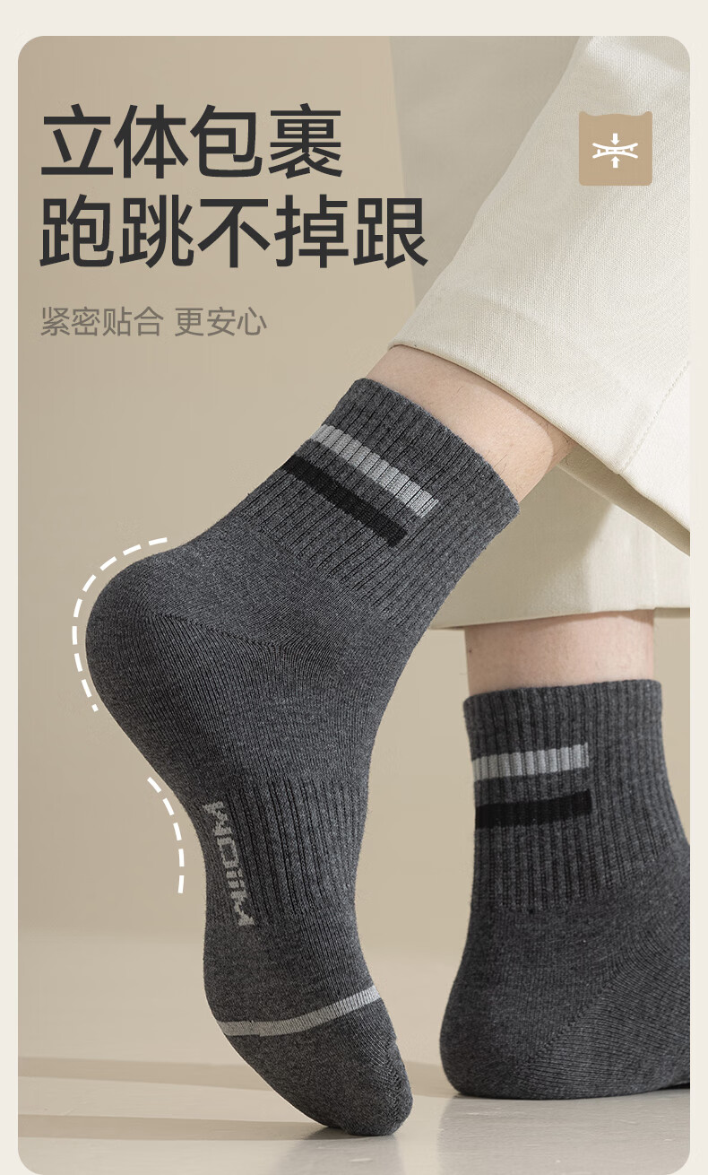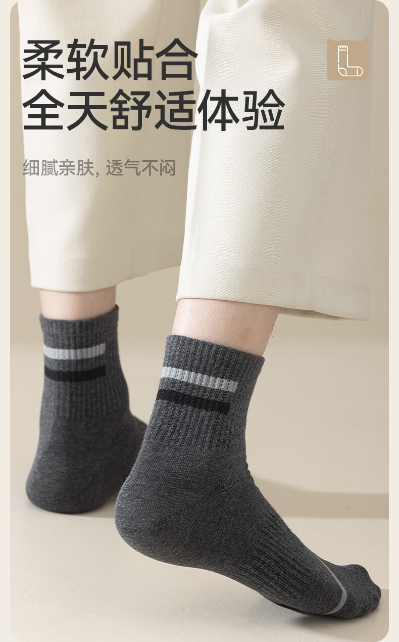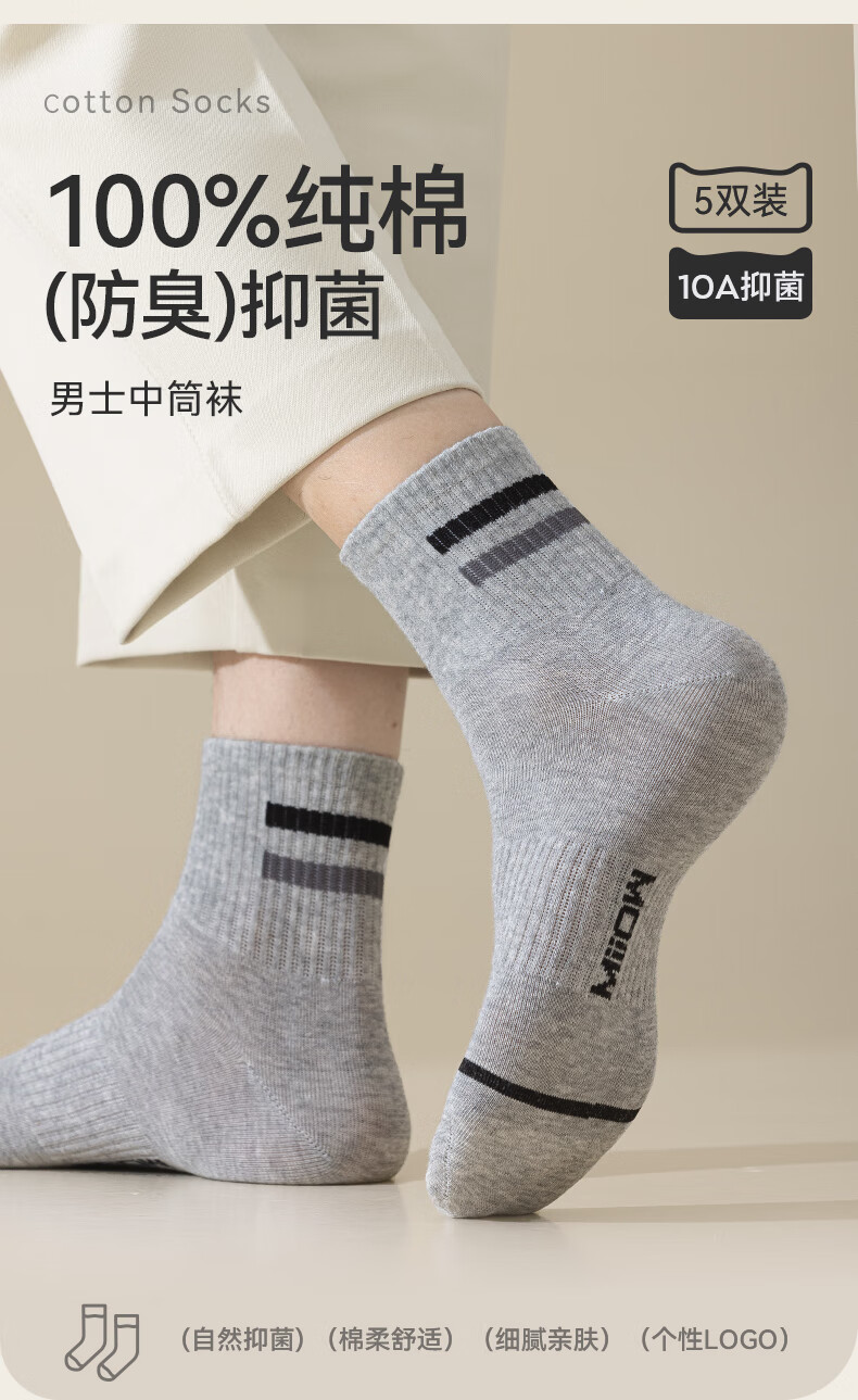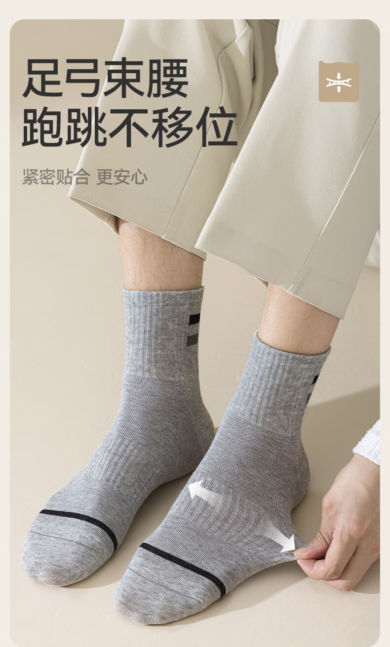 猫人男士袜子男【100%纯棉吸汗】中筒袜抑菌防臭棉袜5双25年新品