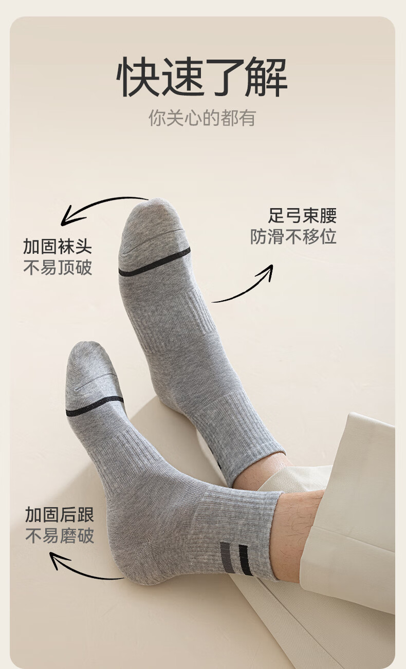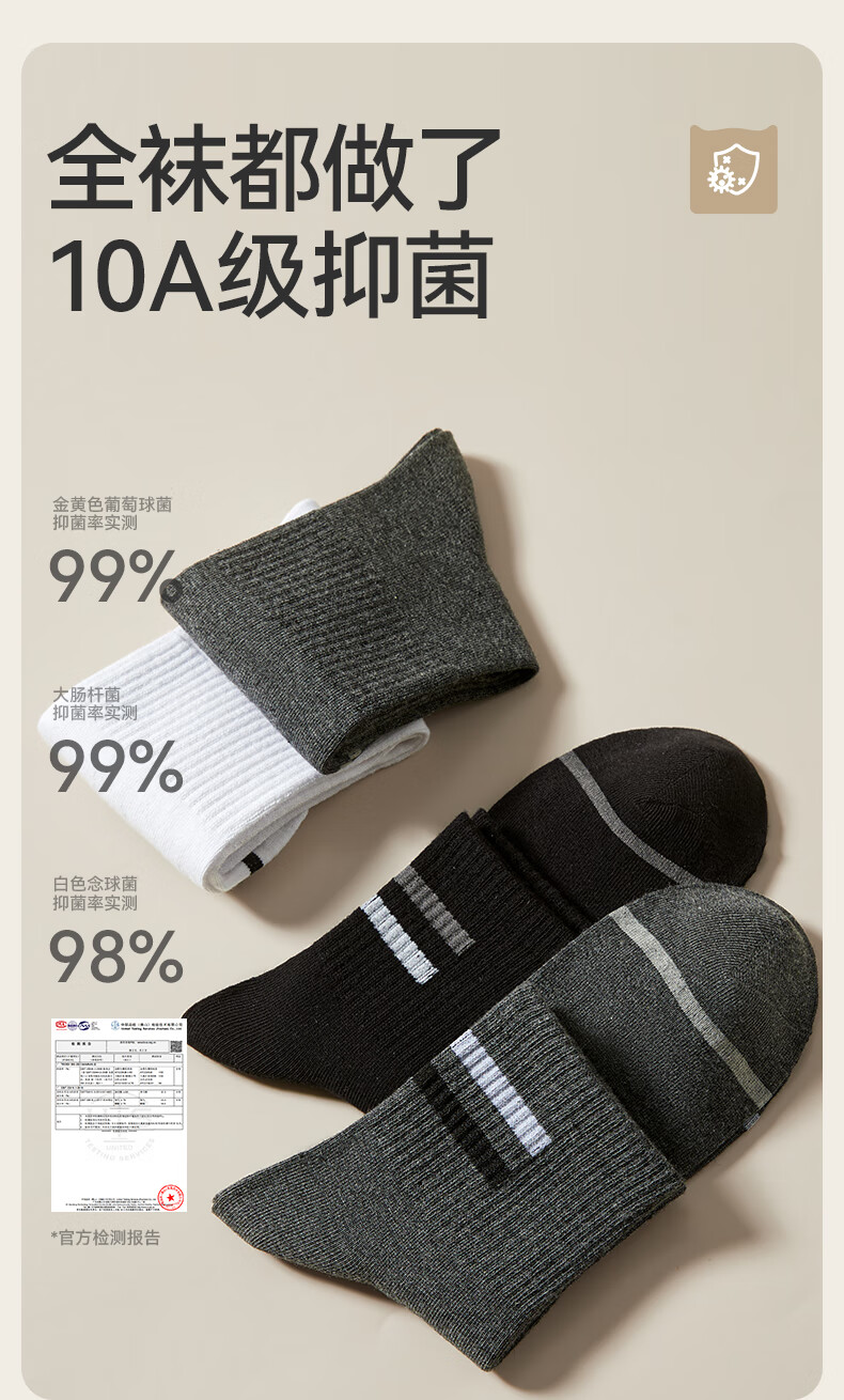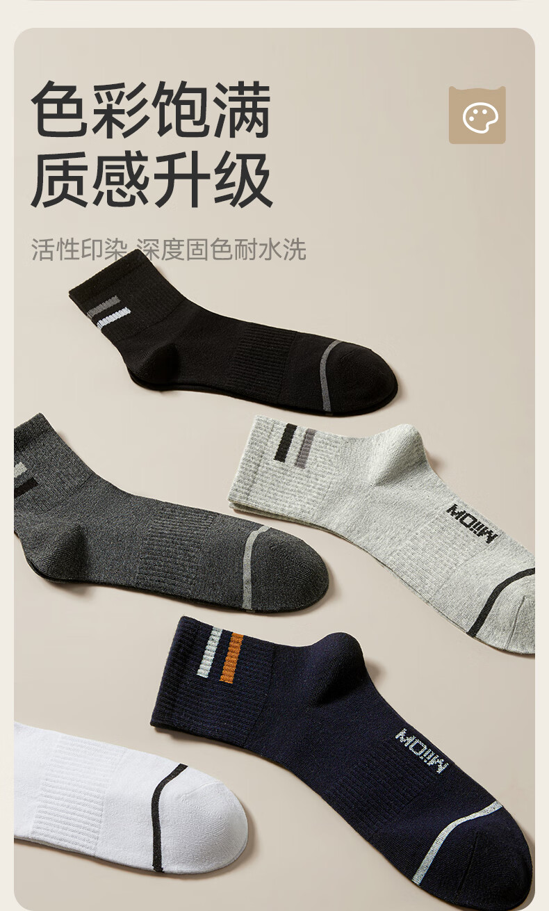 猫人男士袜子男【100%纯棉吸汗】中筒袜抑菌防臭棉袜5双25年新品