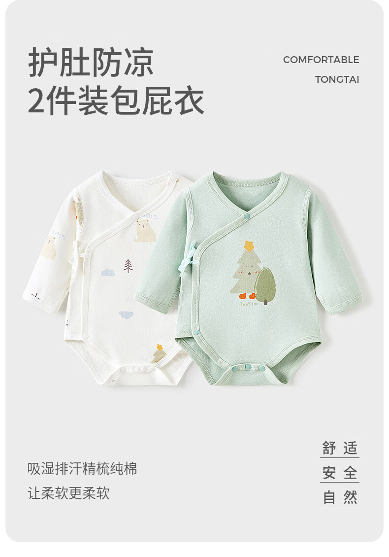 童泰(TONGTAI)婴儿包屁衣春秋季纯棉宝宝连体衣新生儿衣服爬服睡衣黄色66cm