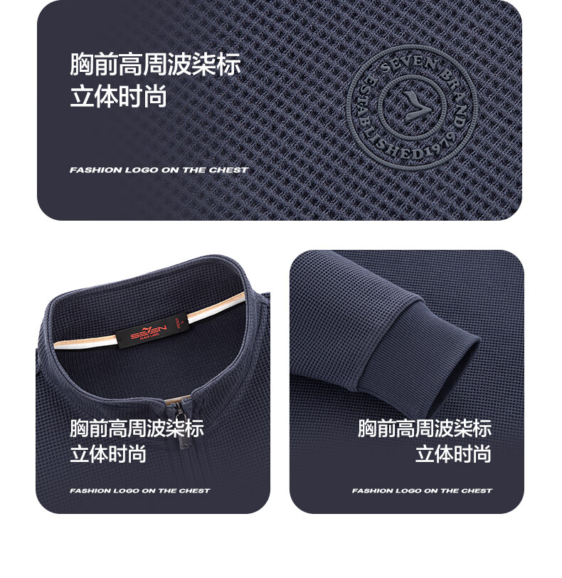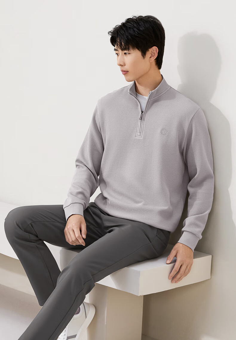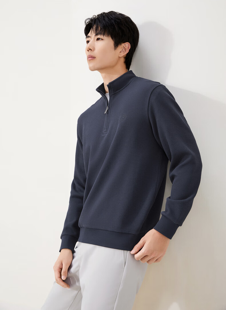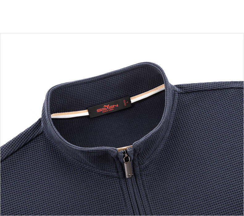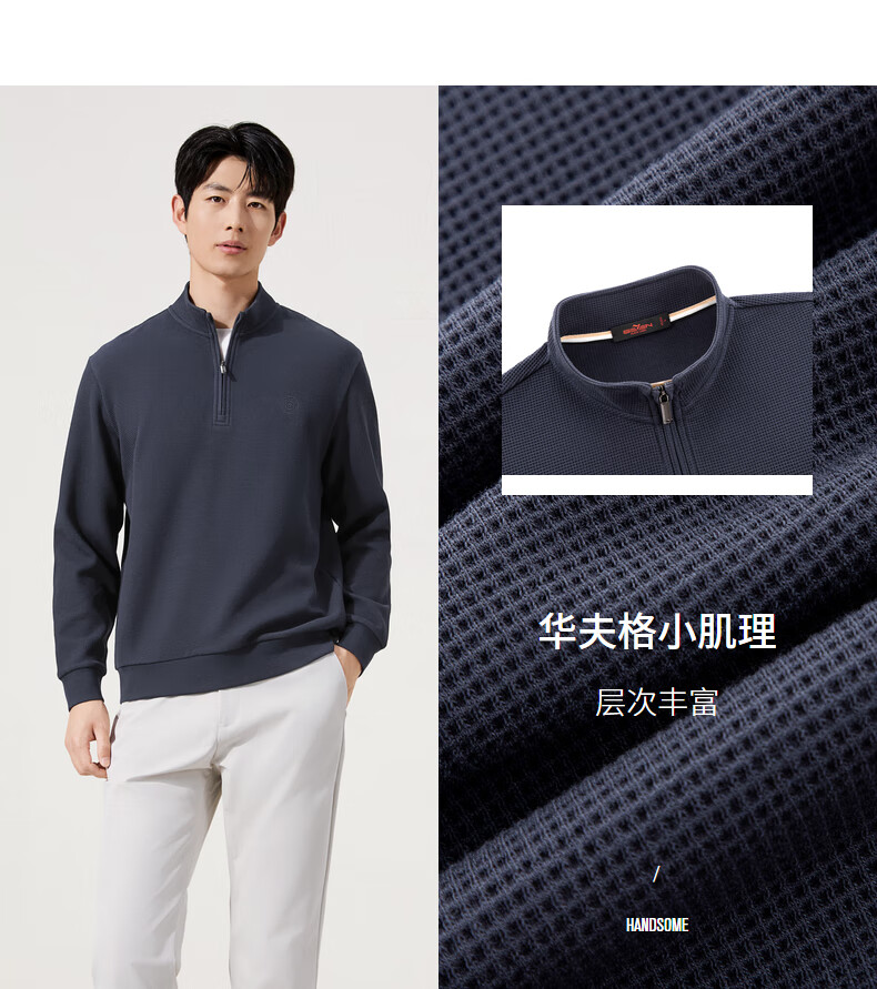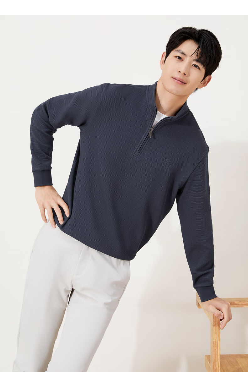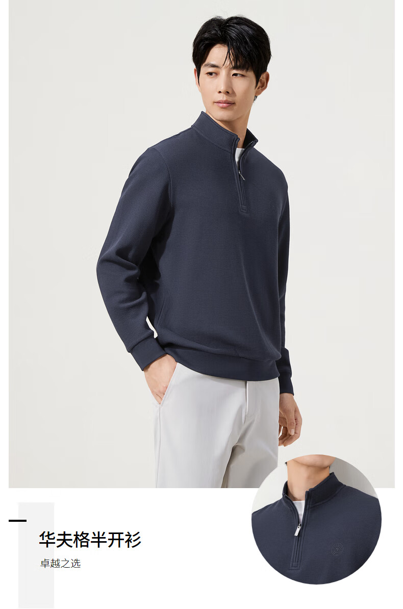 Qipai waffle/Xinjiang cotton/antistatic half-cardigan sweatshirt men's autumn and winter stand-up collar long-sleeved top