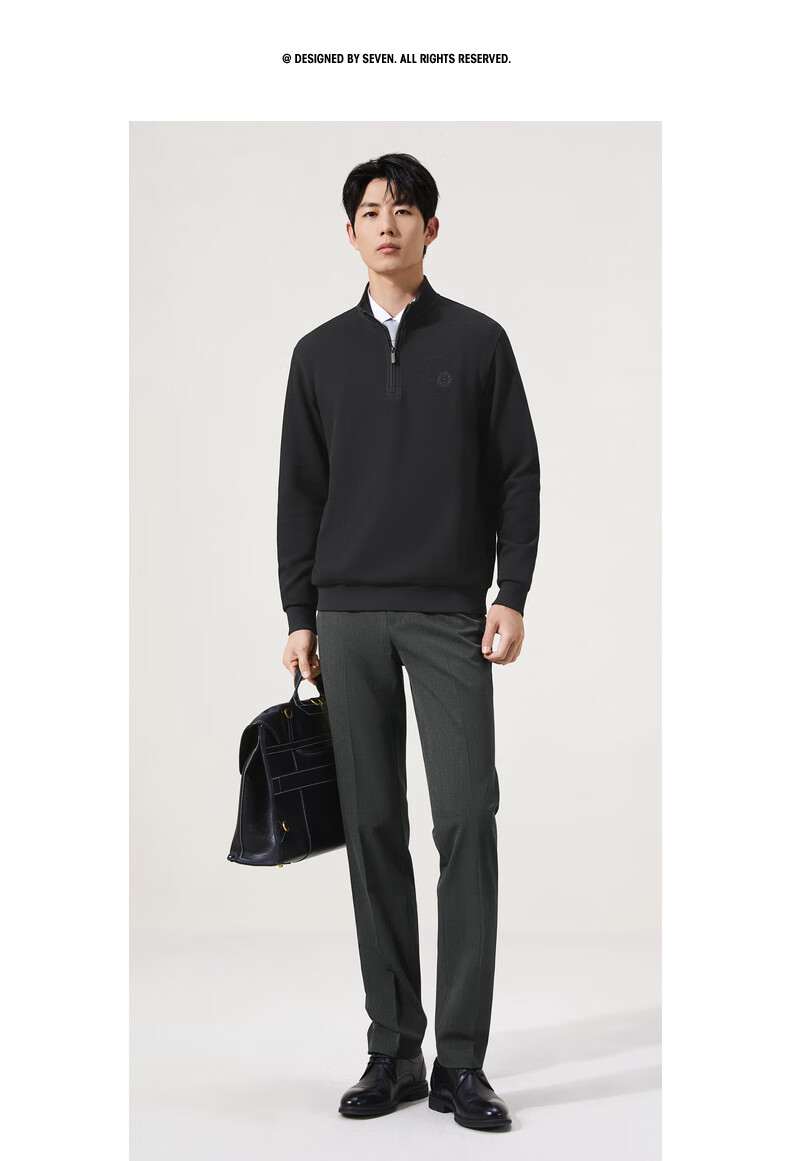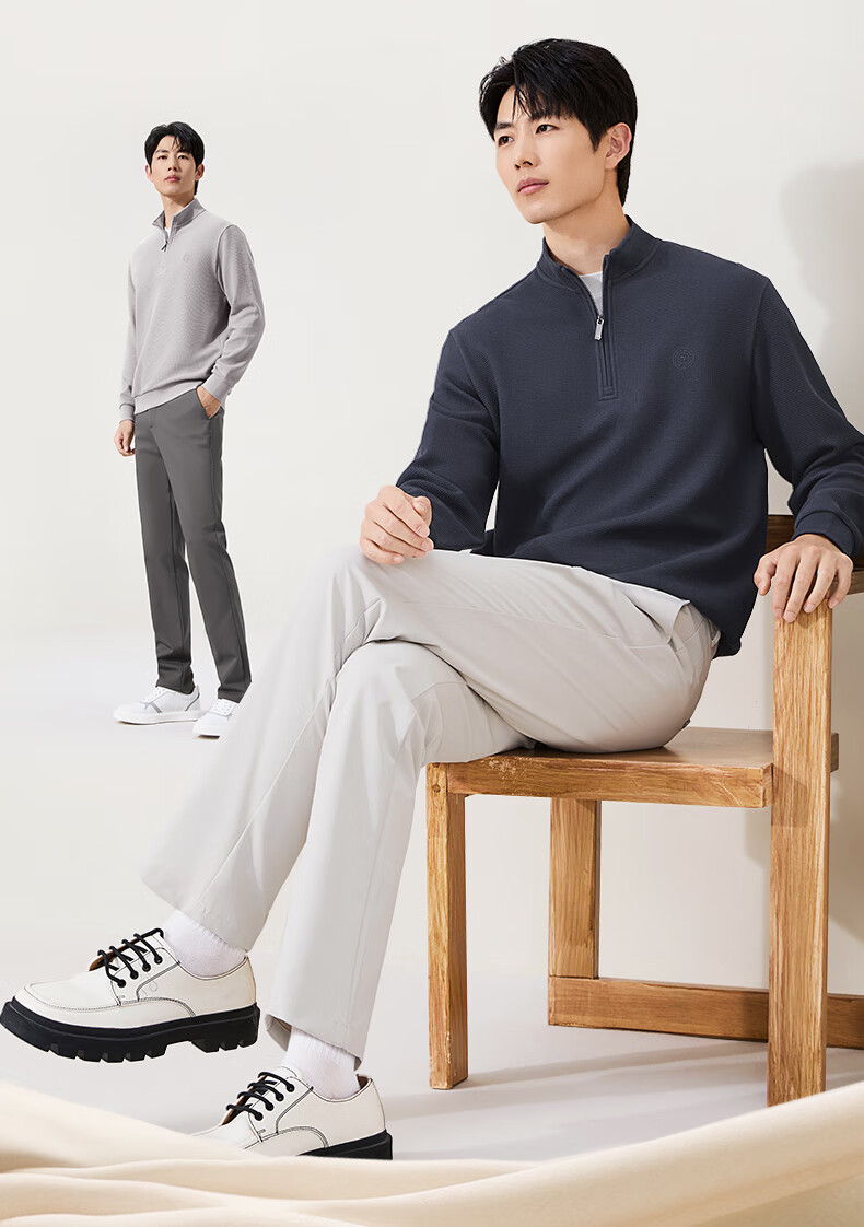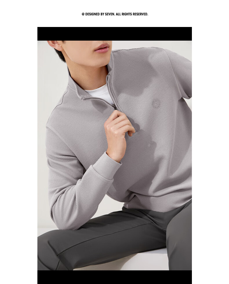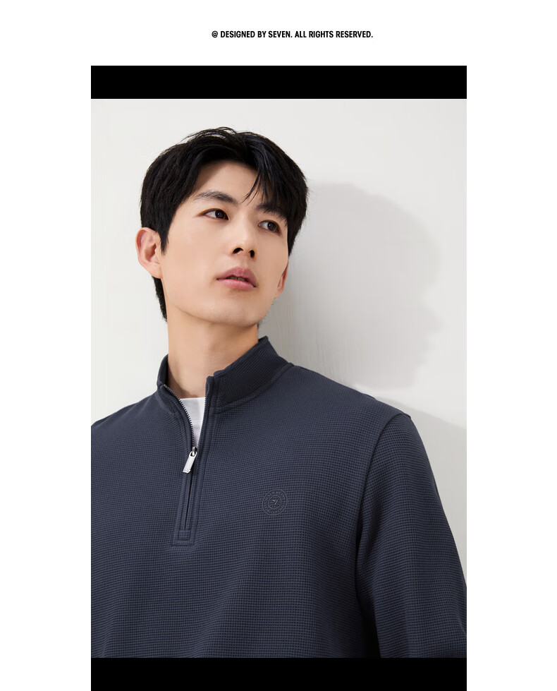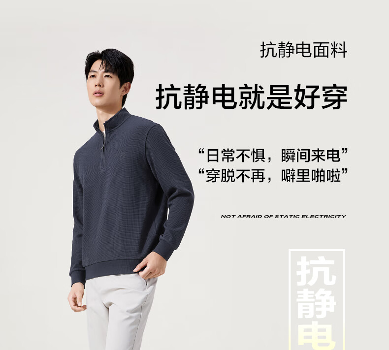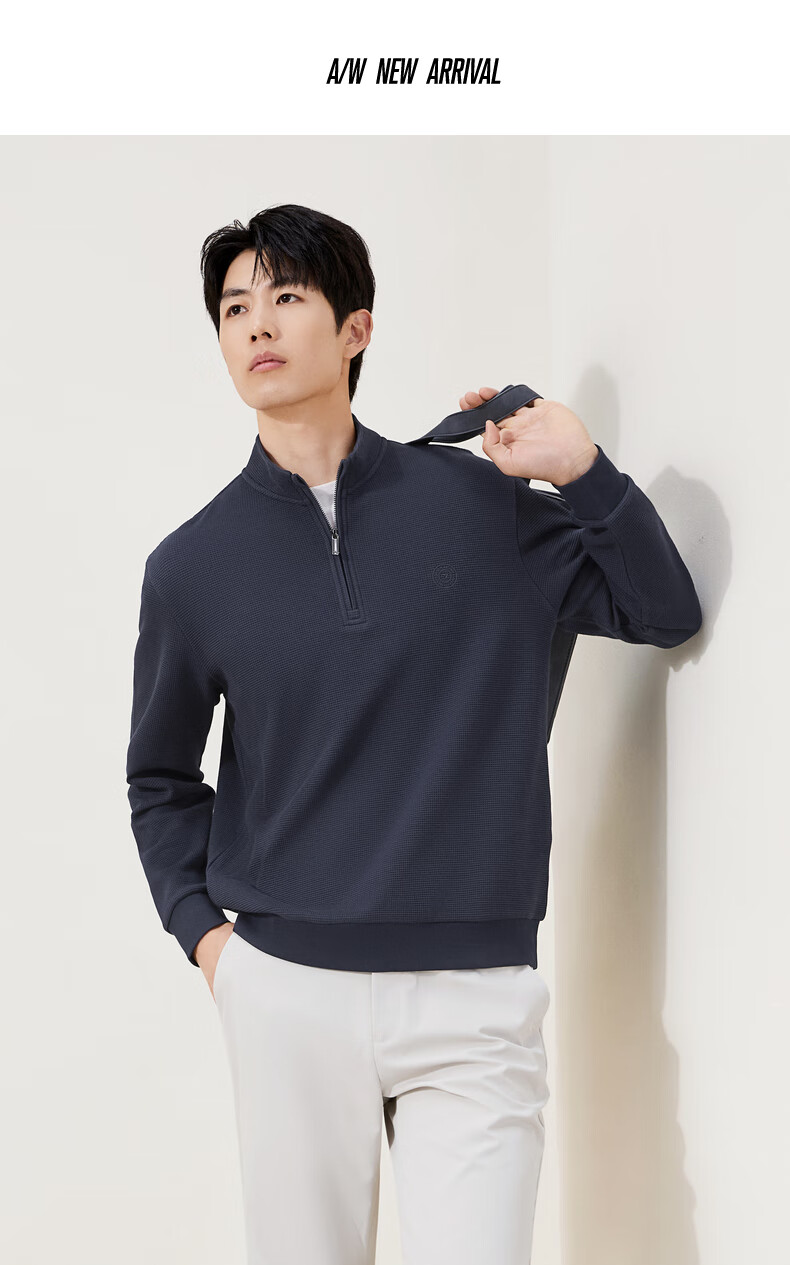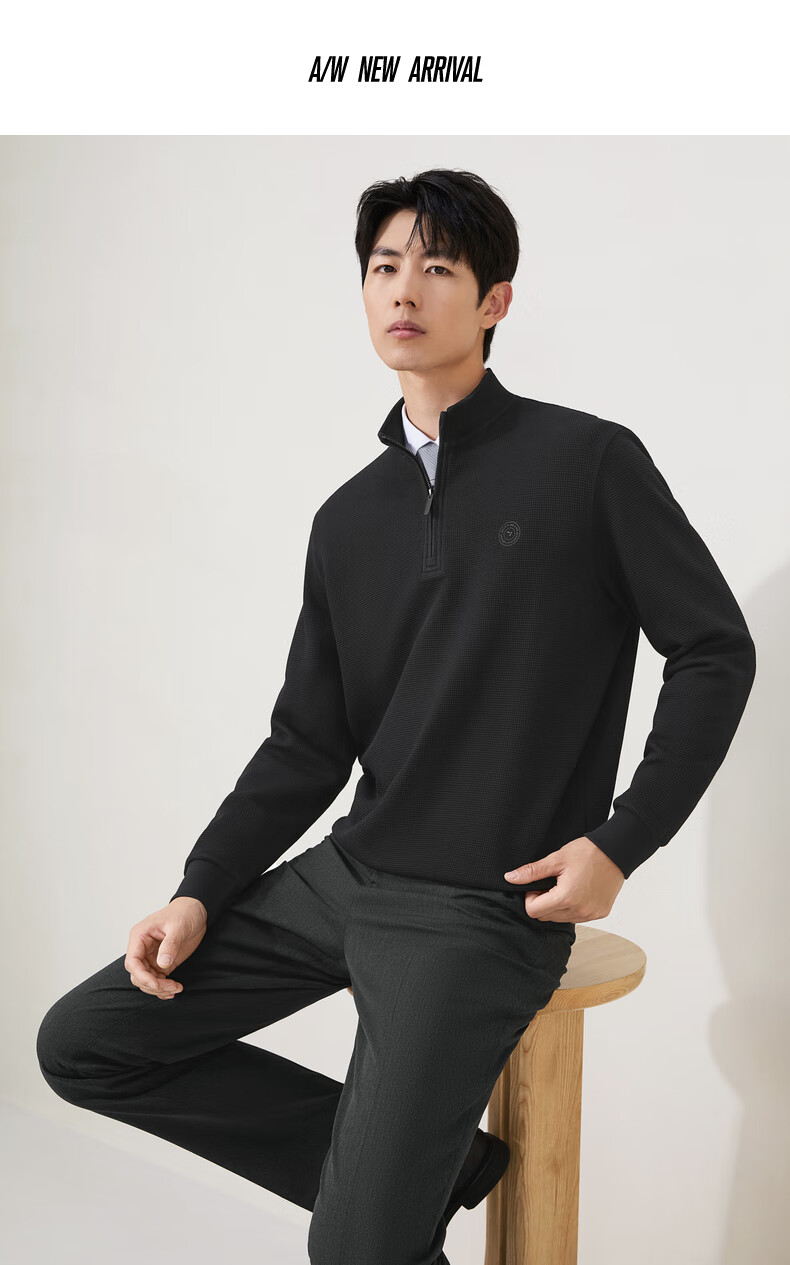 Qipai waffle/Xinjiang cotton/antistatic half-cardigan sweatshirt men's autumn and winter stand-up collar long-sleeved top