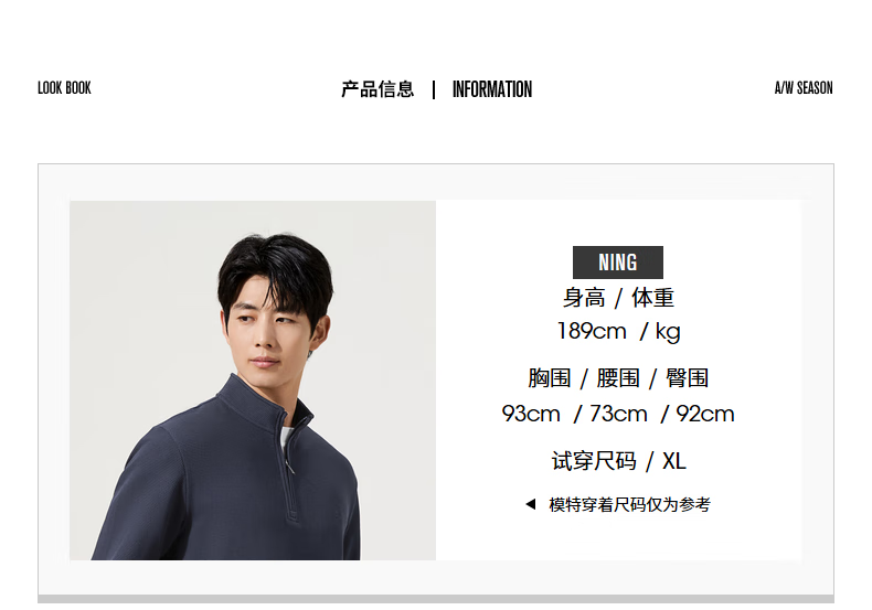 China (cm) 165 / 88-90 170 / 96-98 175 / 108-110 180 / 118-122 185 / 126-130