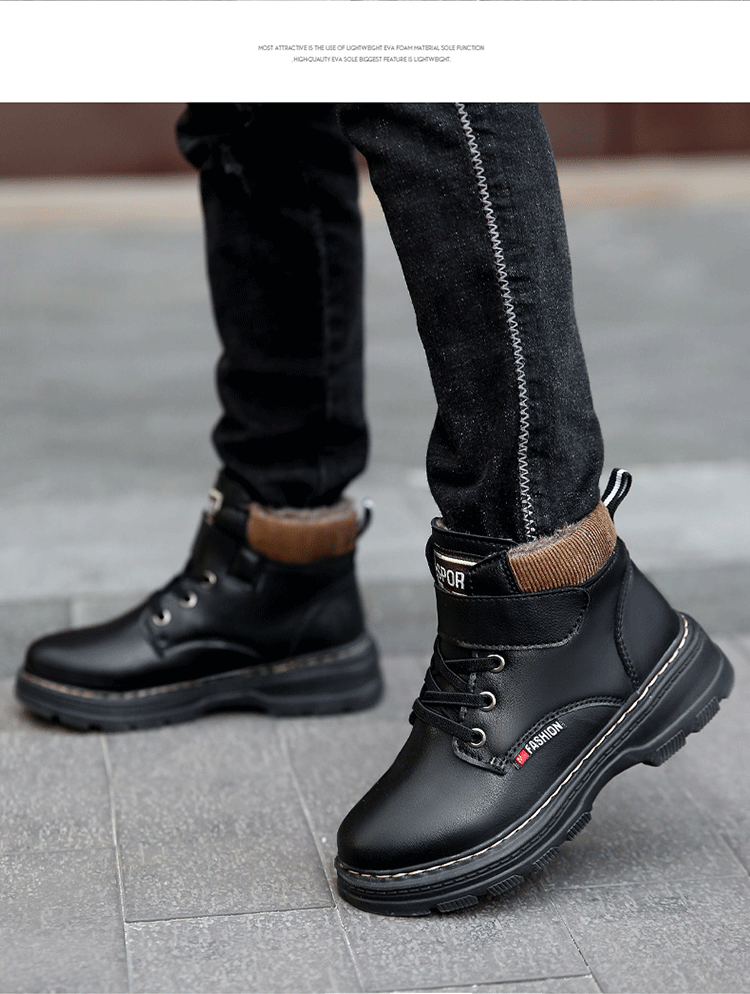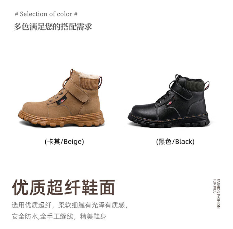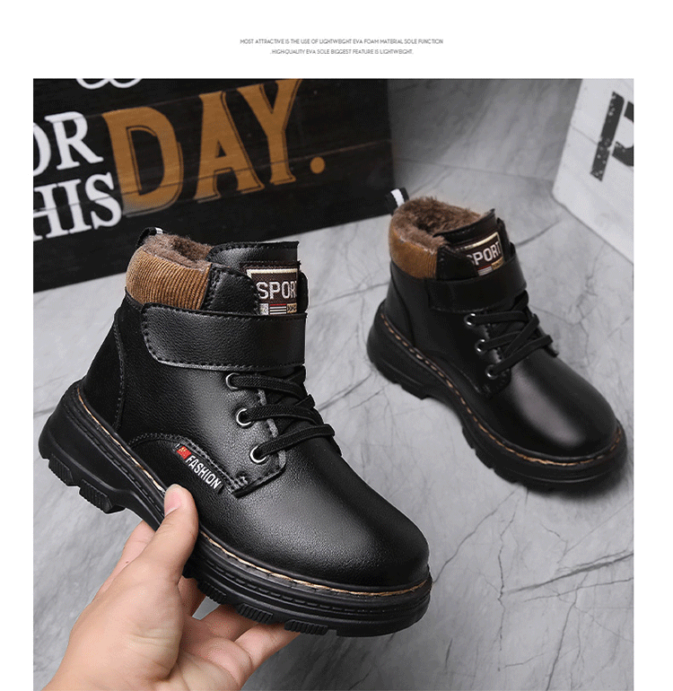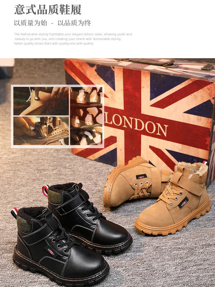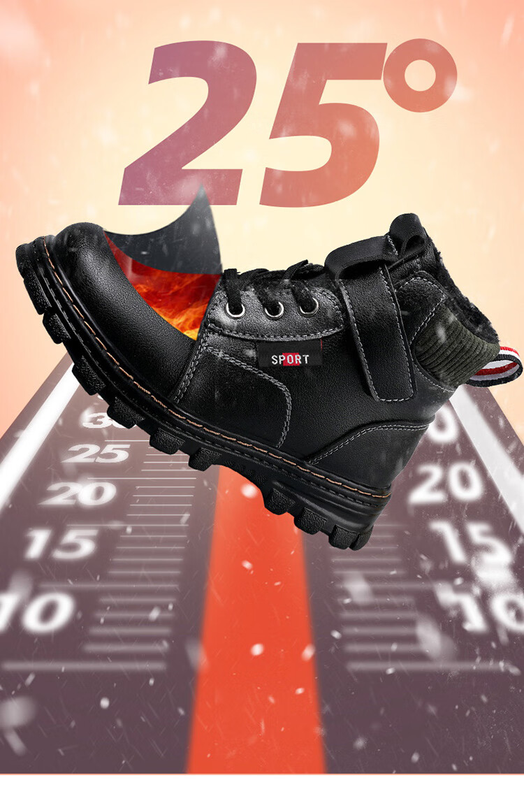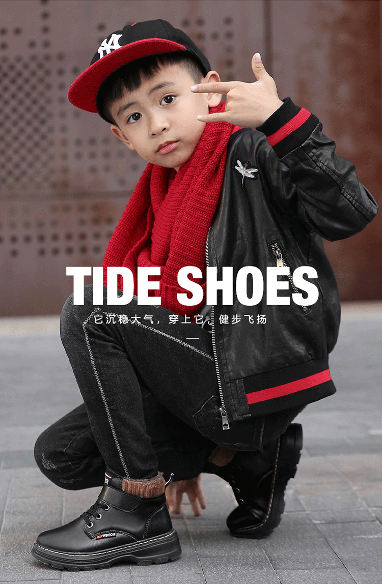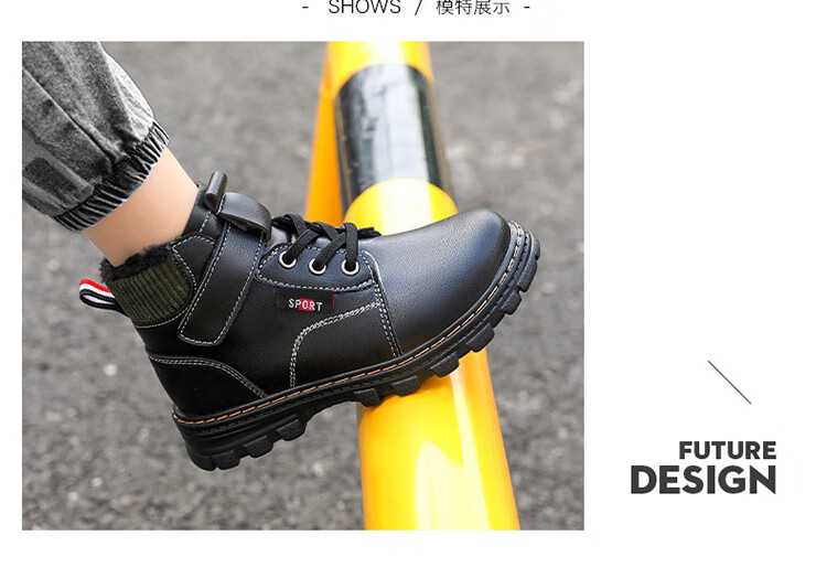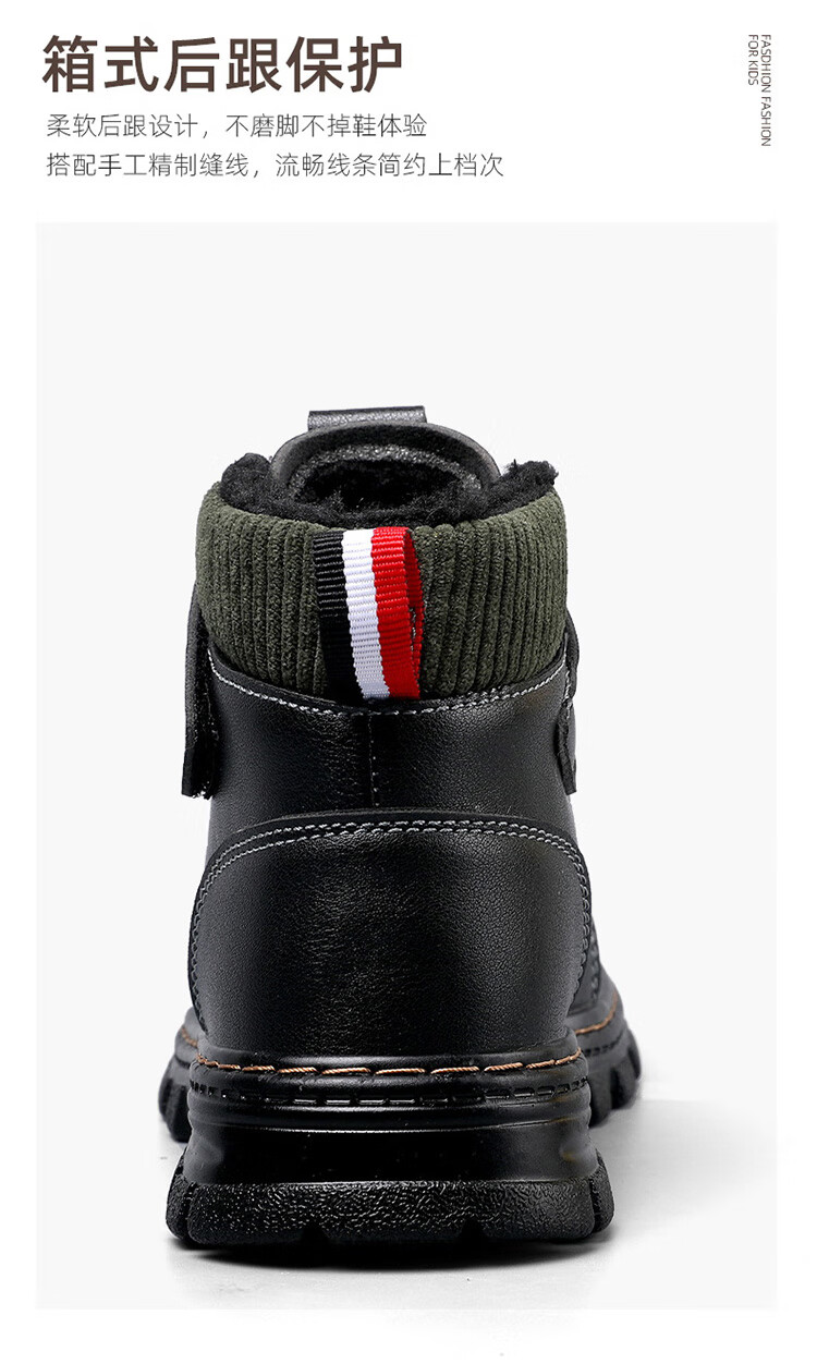 轩途诗儿童皮鞋男童马丁靴子加绒耐磨防水男童鞋男孩儿童靴子棉舒适鞋子 10083黑色加绒 38