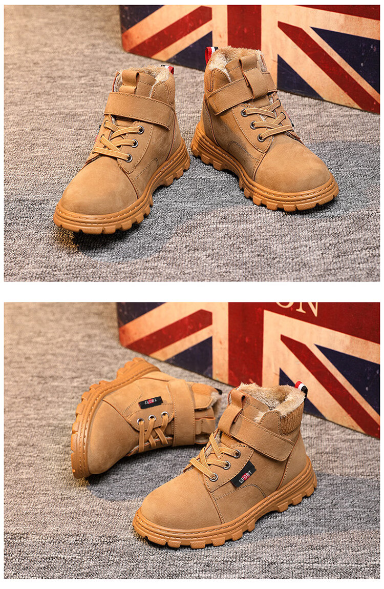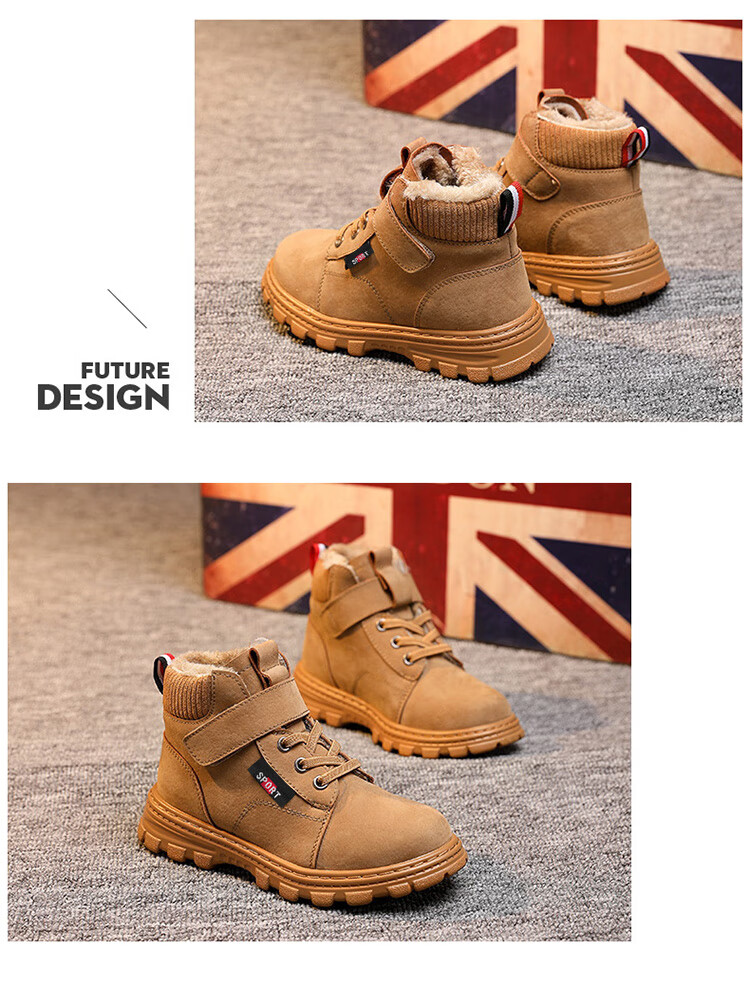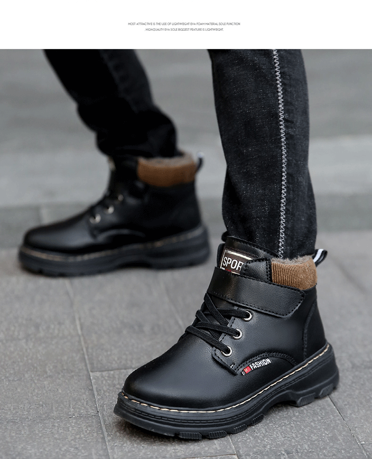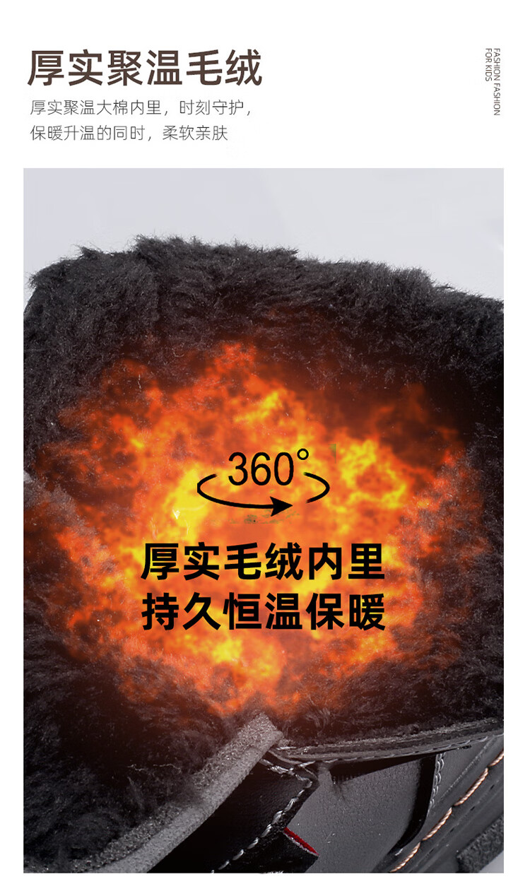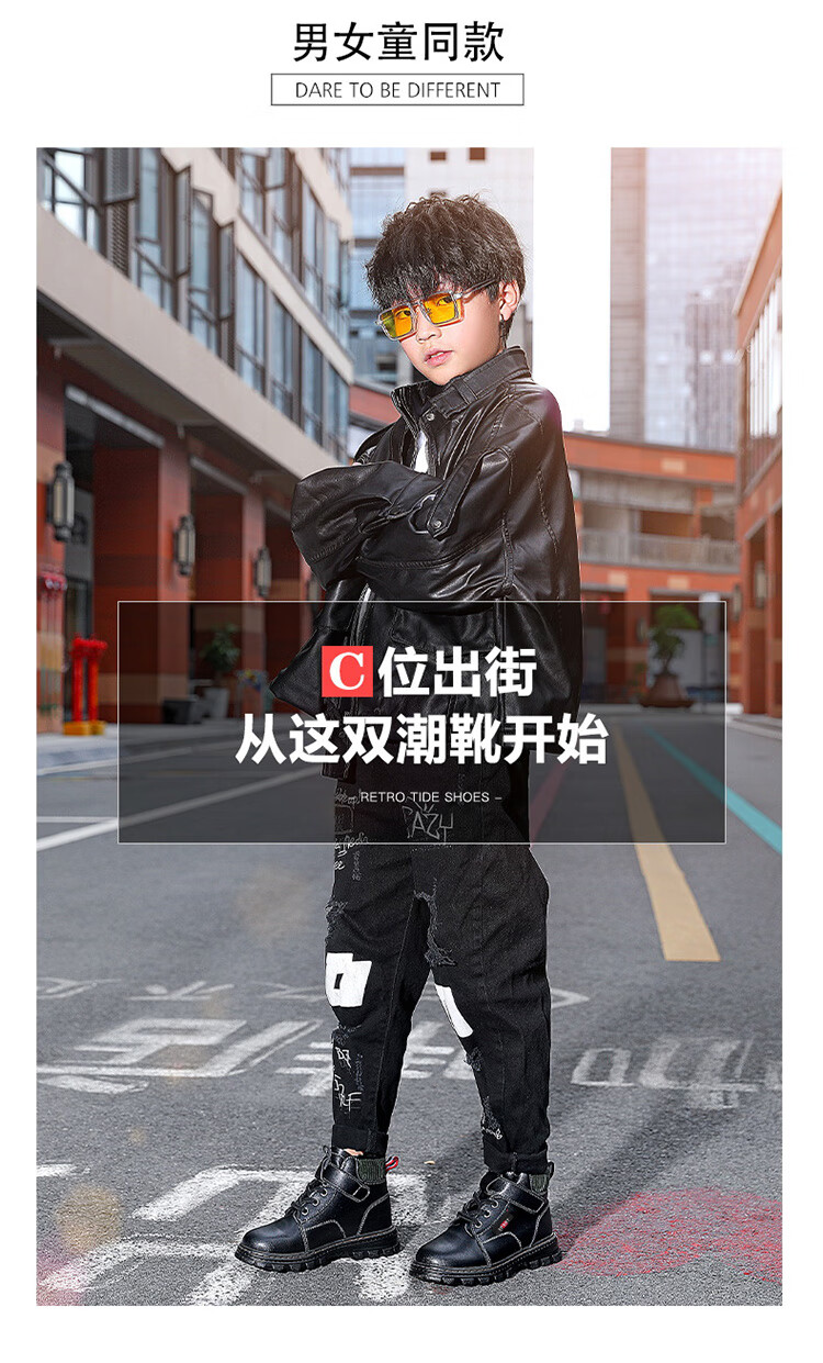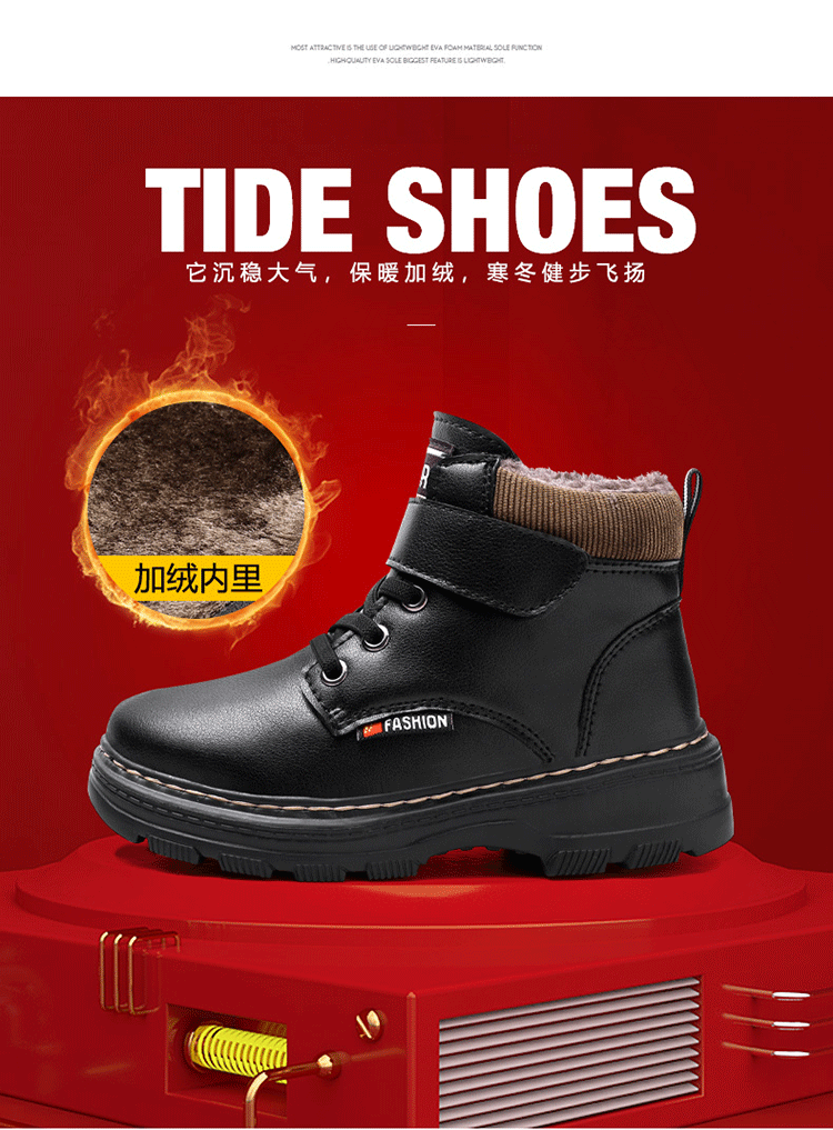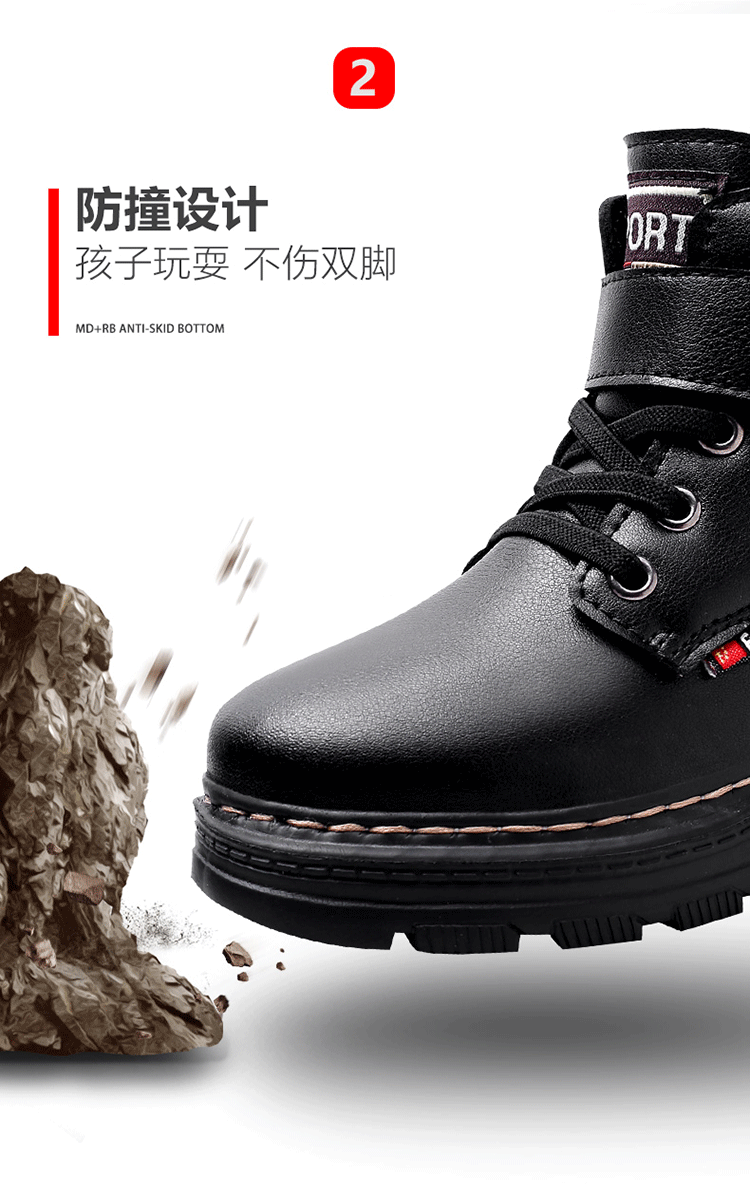 轩途诗儿童皮鞋男童马丁靴子加绒耐磨防水男童鞋男孩儿童靴子棉舒适鞋子 10083黑色加绒 38
