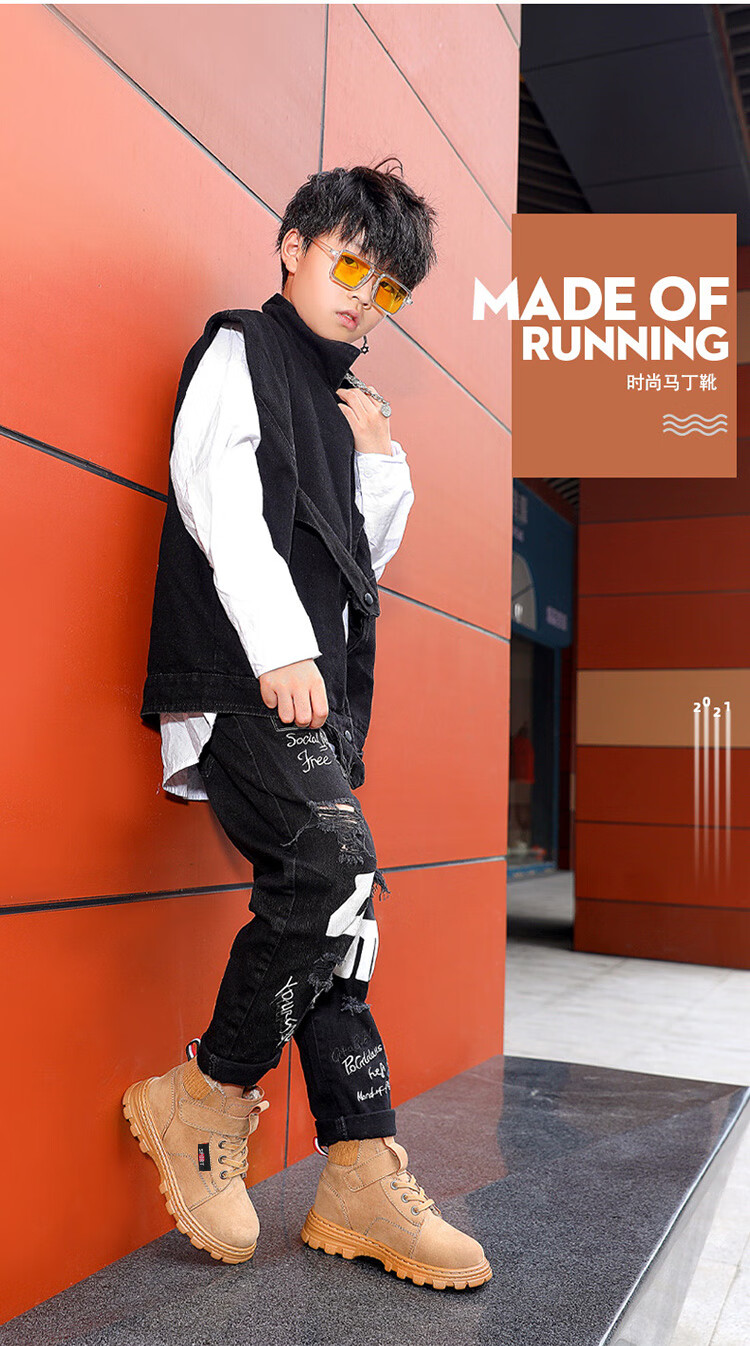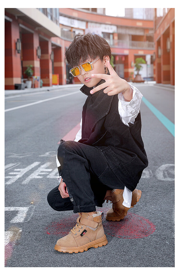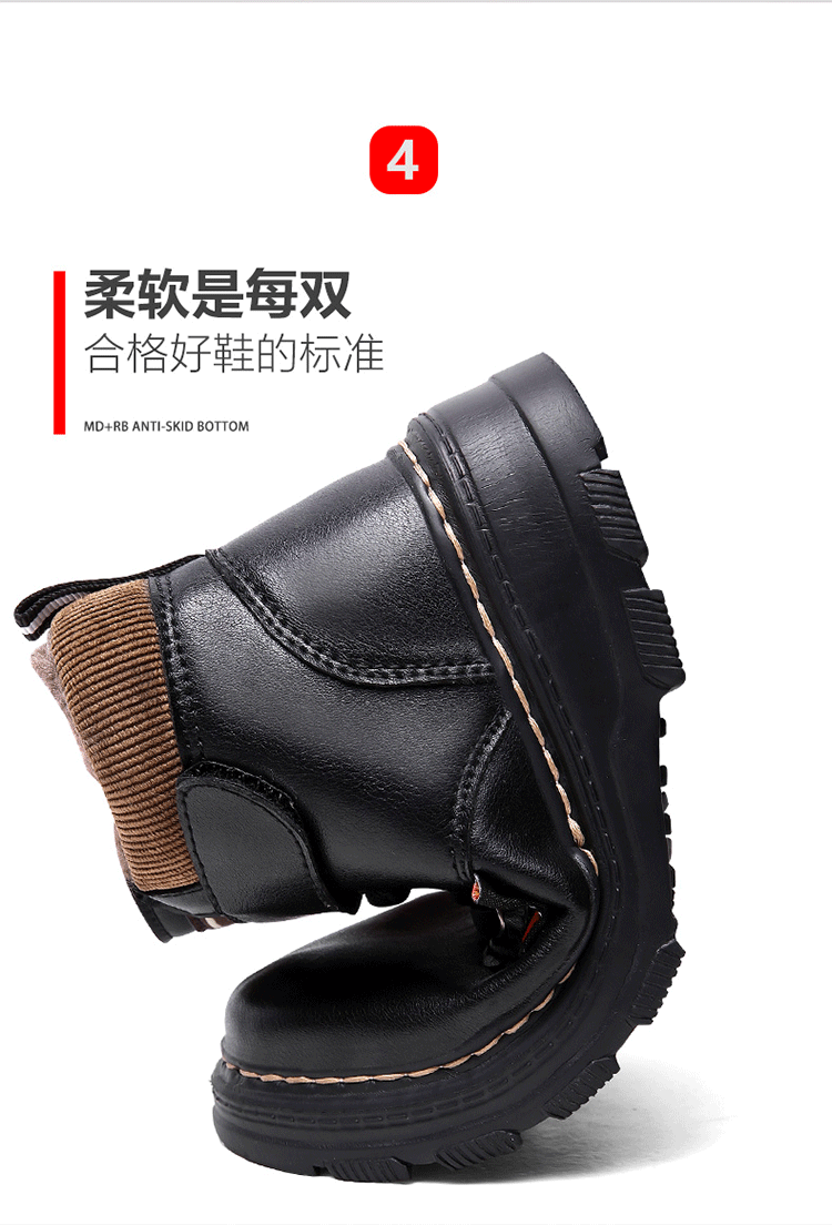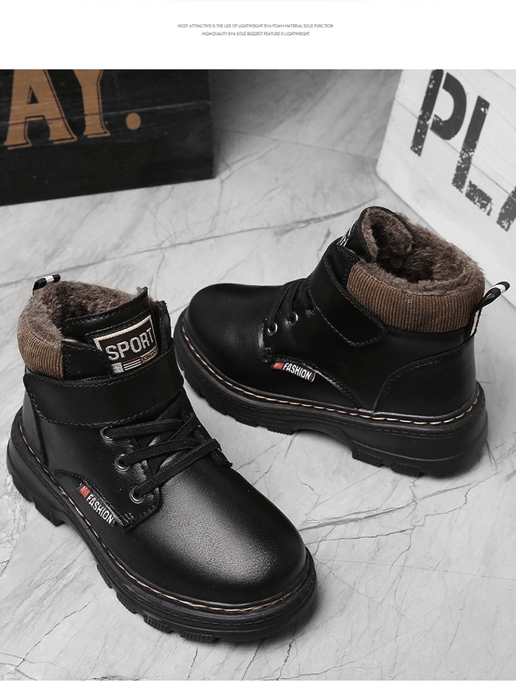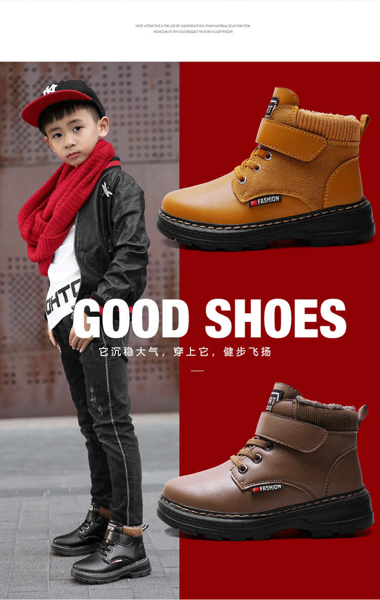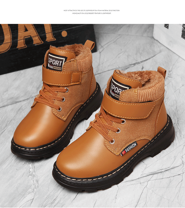 轩途诗儿童皮鞋男童马丁靴子加绒耐磨防水男童鞋男孩儿童靴子棉舒适鞋子 10083黑色加绒 38