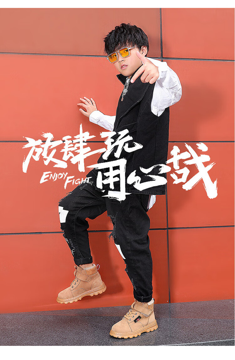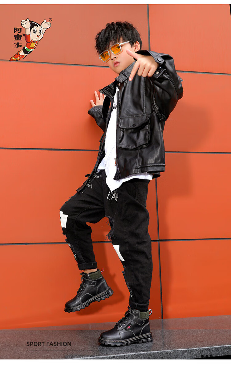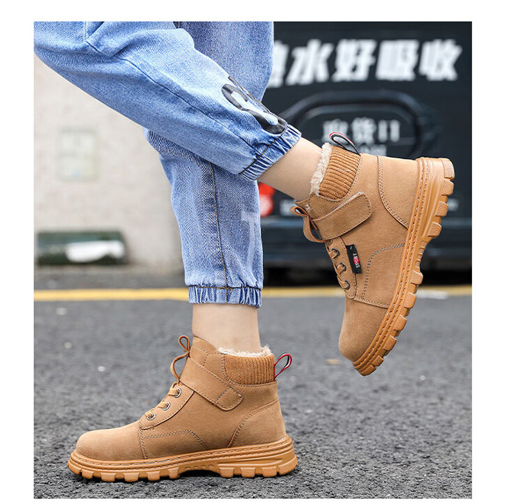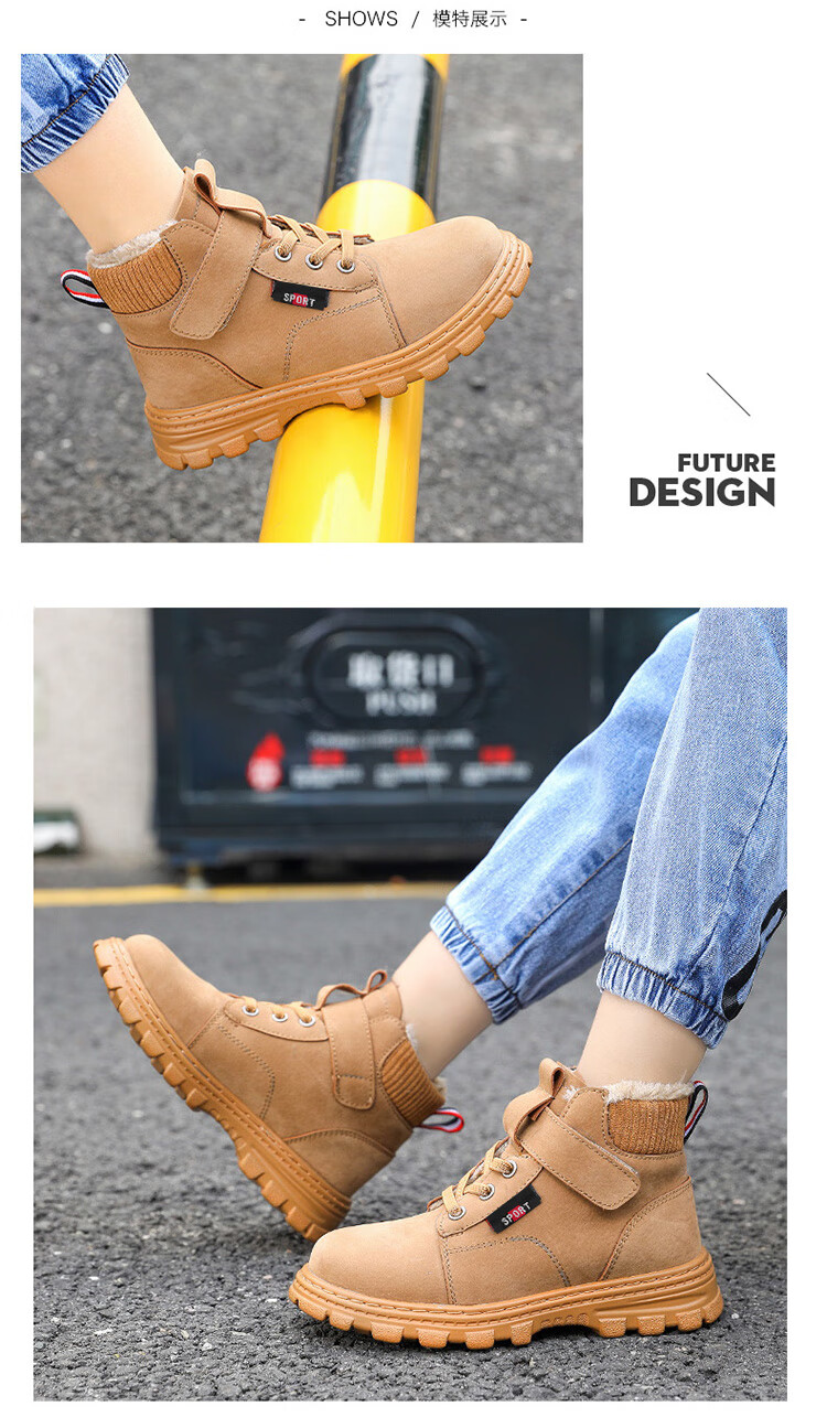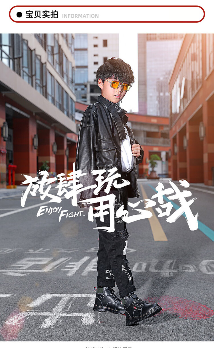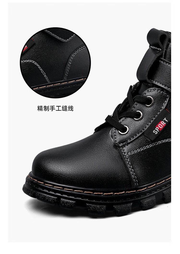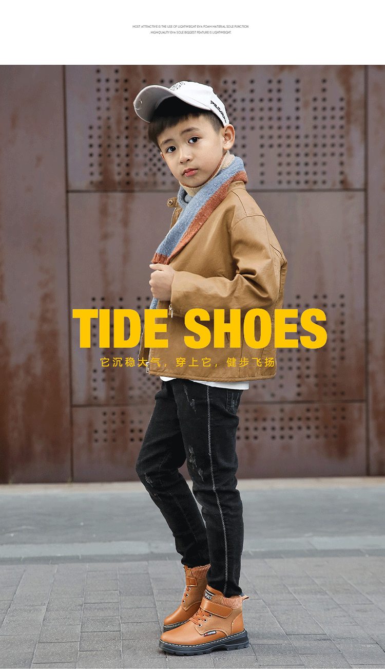 轩途诗儿童皮鞋男童马丁靴子加绒耐磨防水男童鞋男孩儿童靴子棉舒适鞋子 10083黑色加绒 38