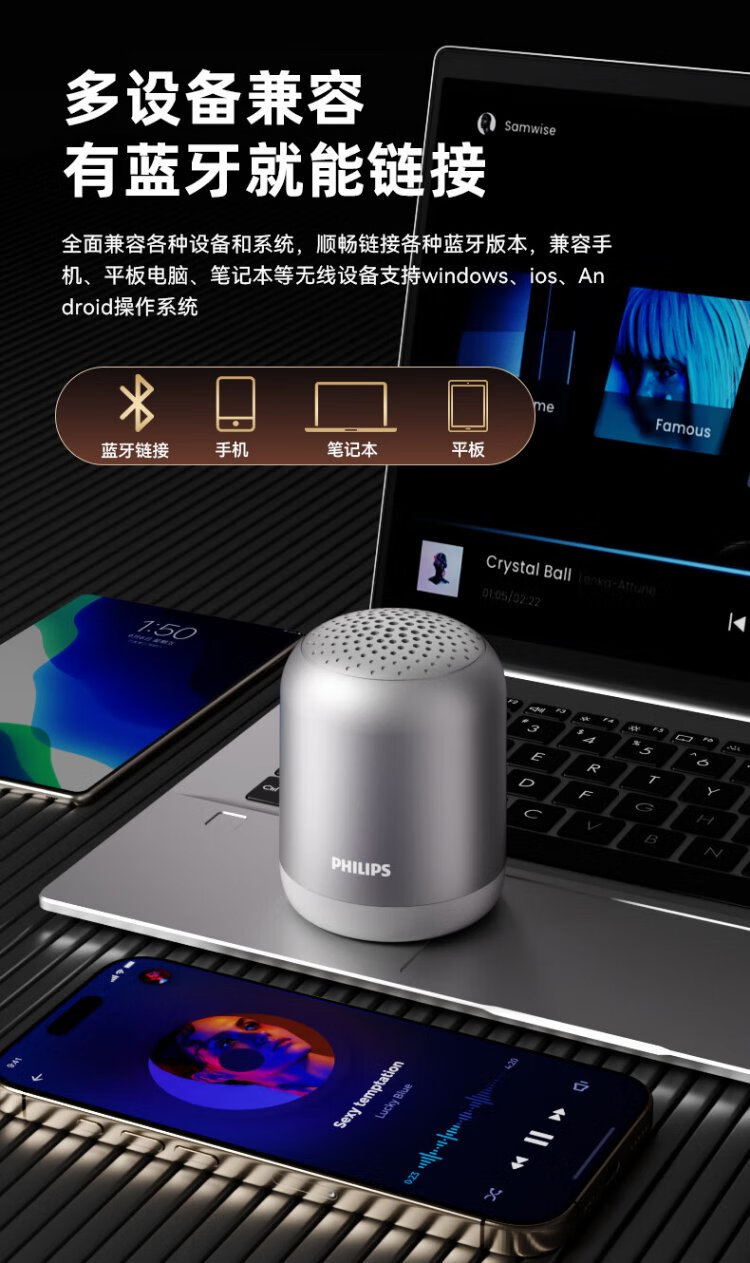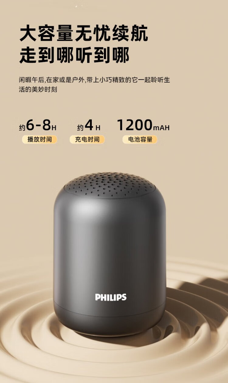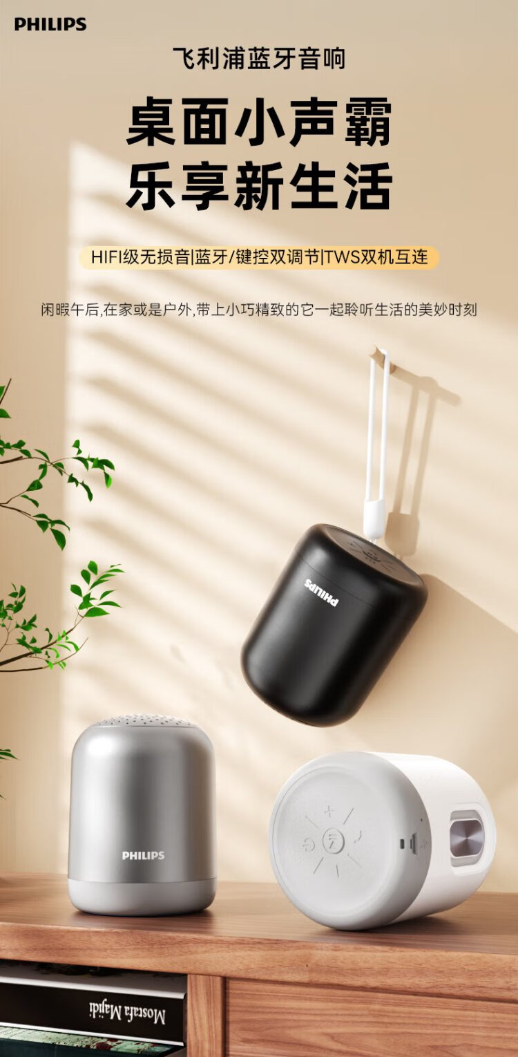 Philips (PHILIPS) TAS1110 Bluetooth speaker audio computer wireless desktop mini portable outdoor subwoofer high-looking gift TWS car player black