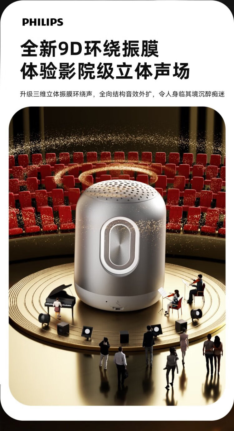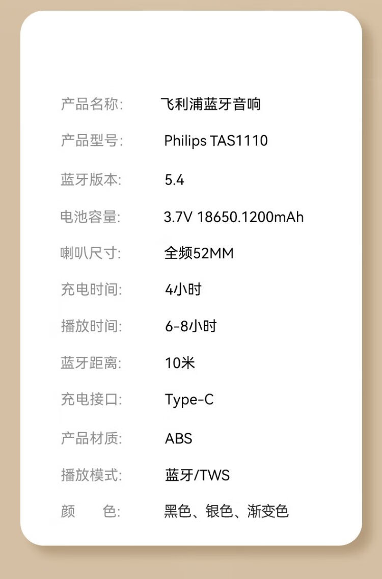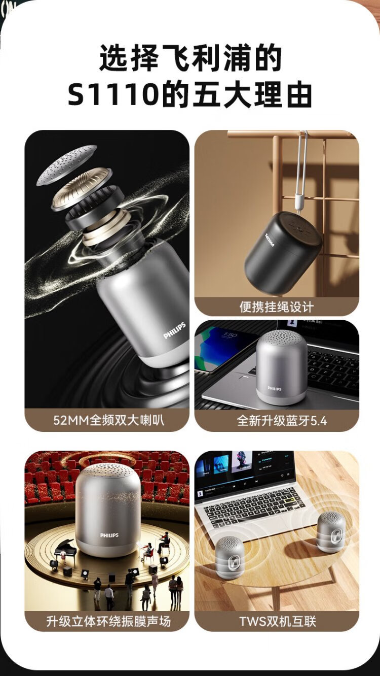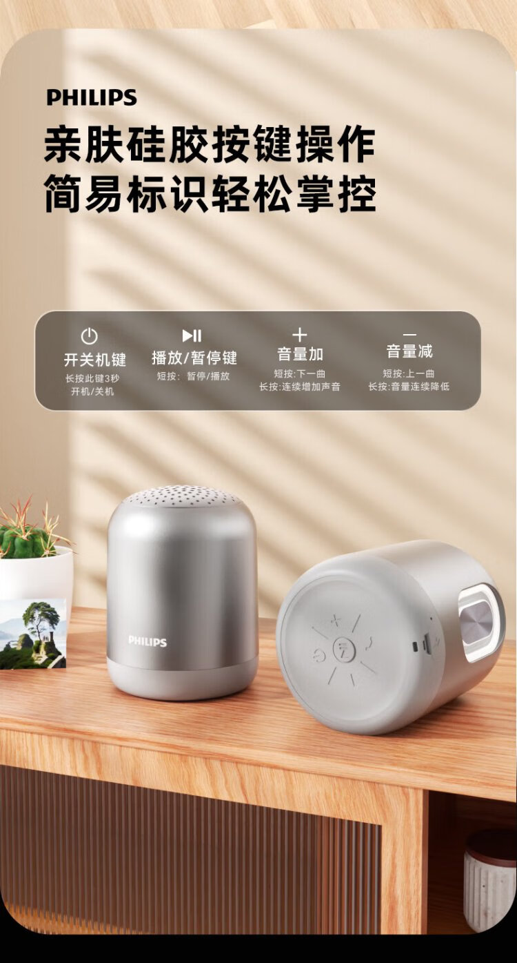 Philips (PHILIPS) TAS1110 Bluetooth speaker audio computer wireless desktop mini portable outdoor subwoofer high-looking gift TWS car player black