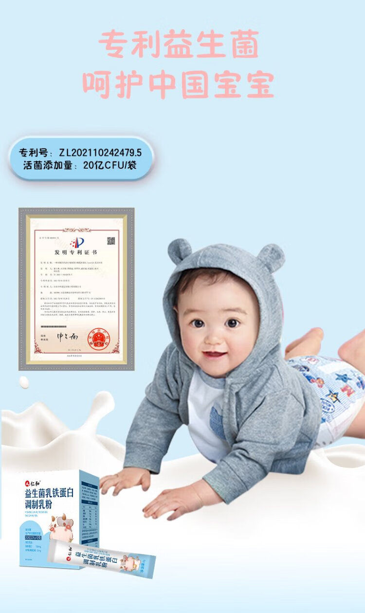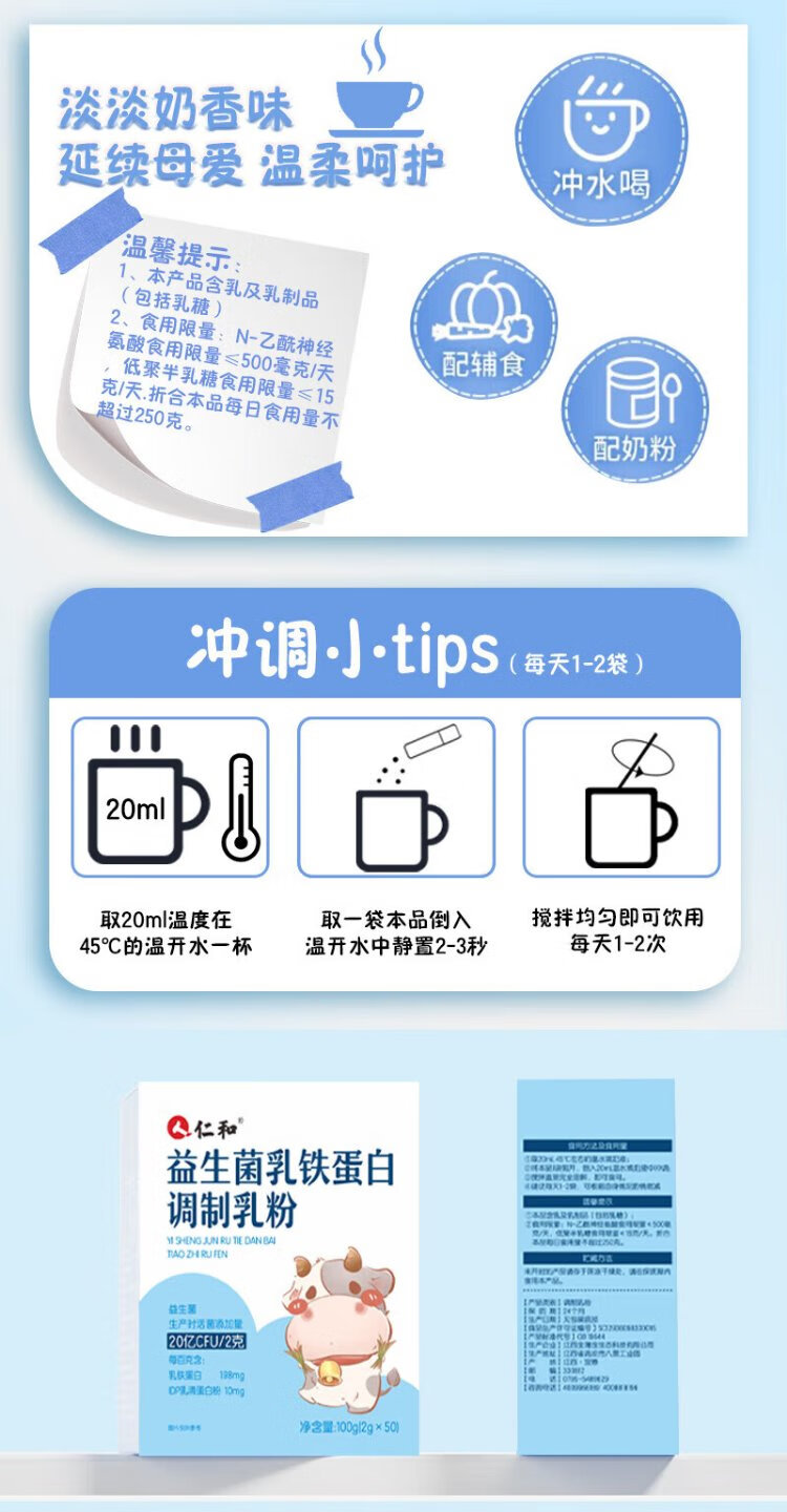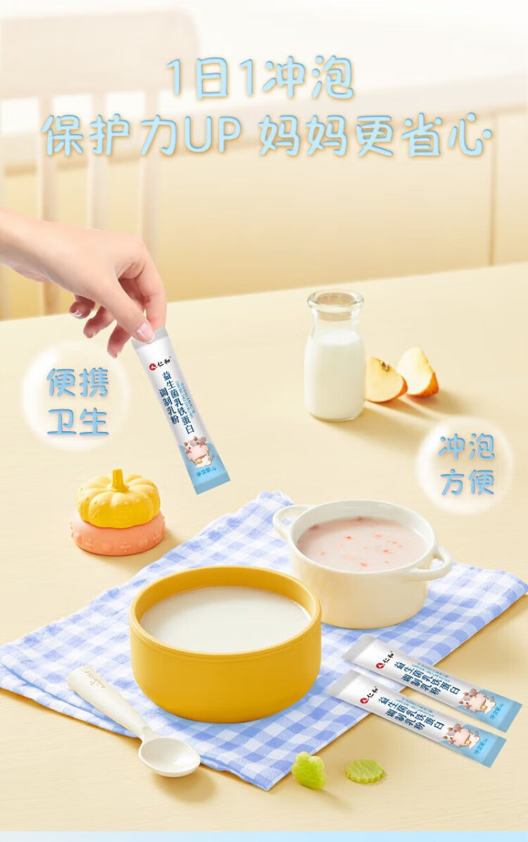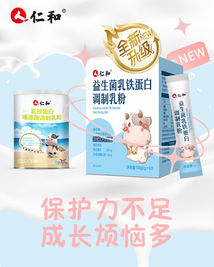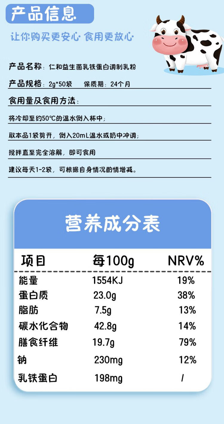 Renhe Пробиотик, модулированный лактоферрином, сухое молоко, 100 г, бычье молозиво, иммуноглобулин, пребиотик, 2 г * 50 полосок