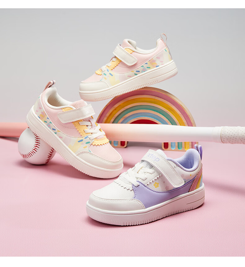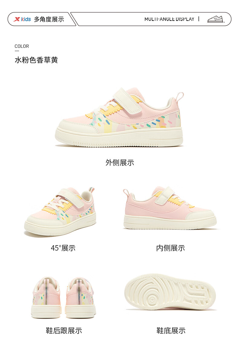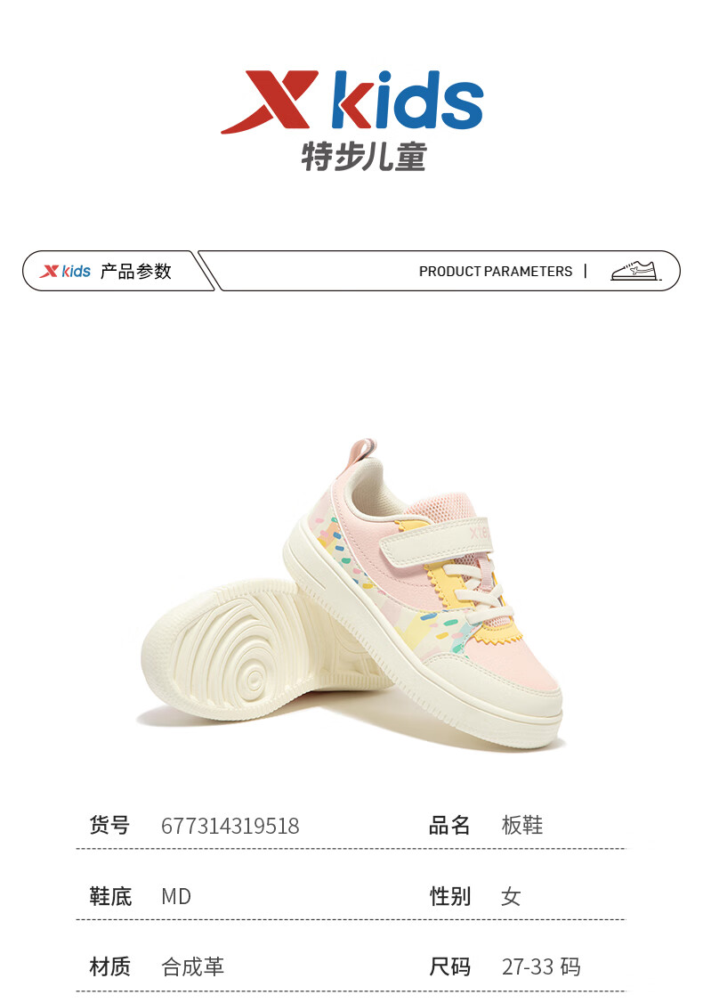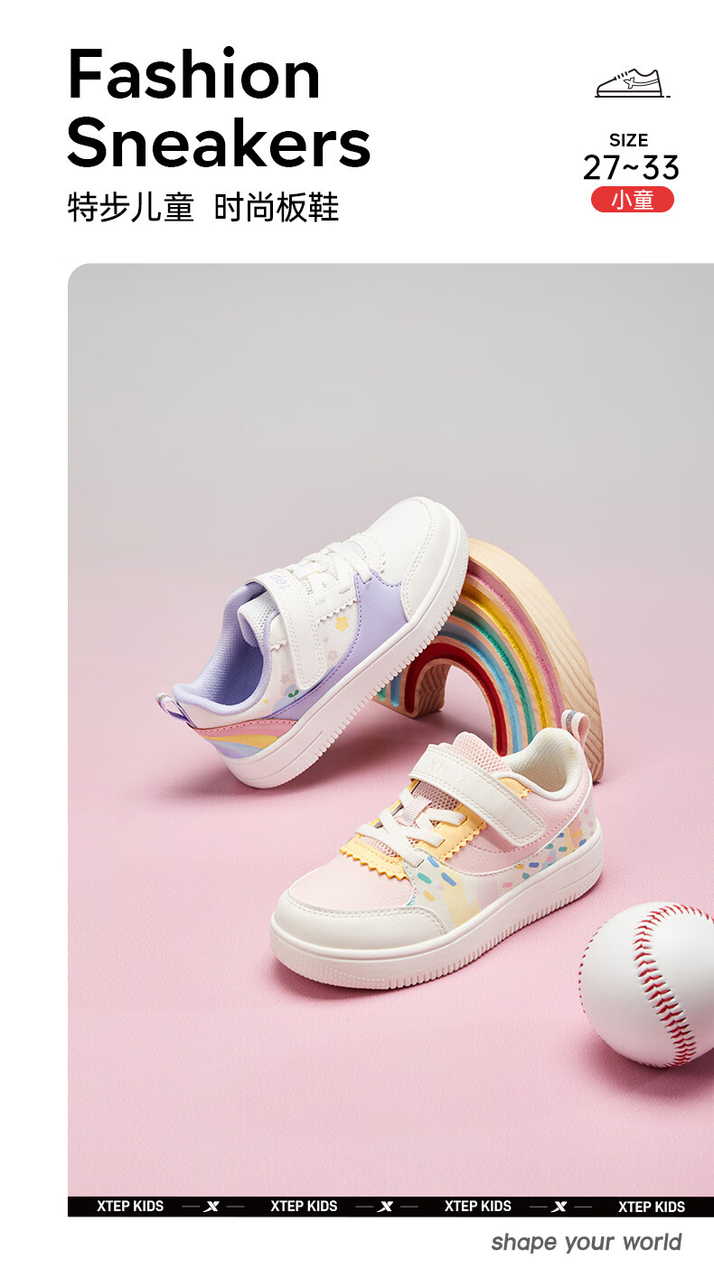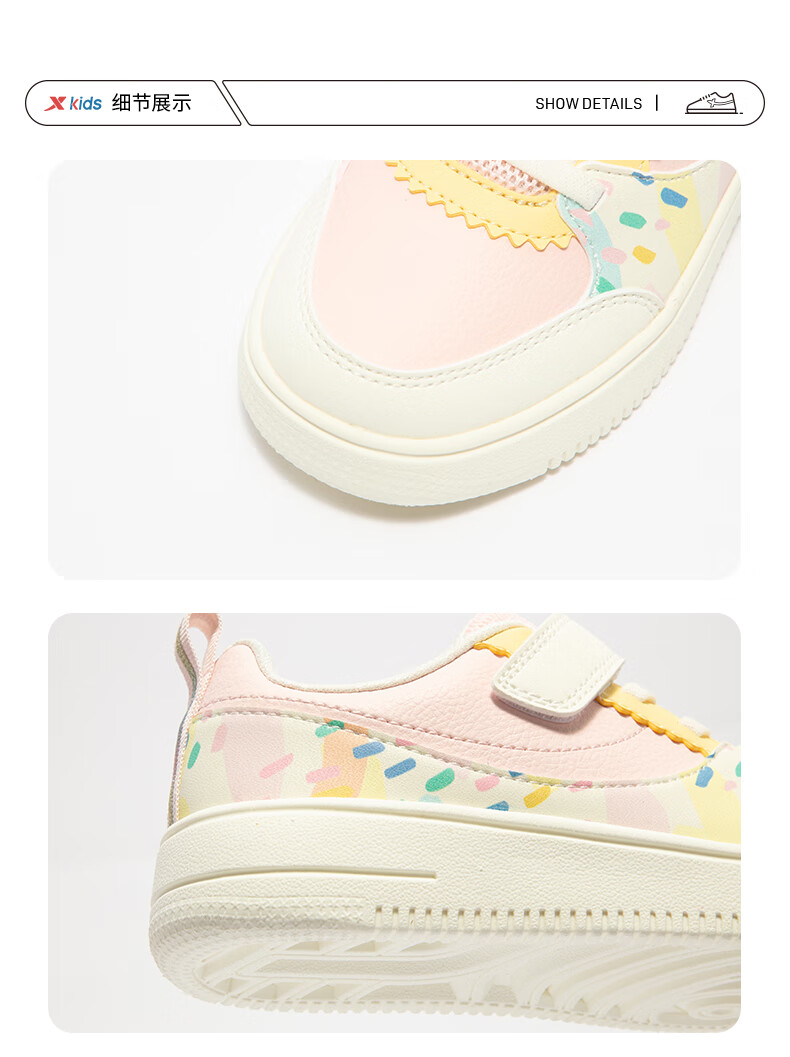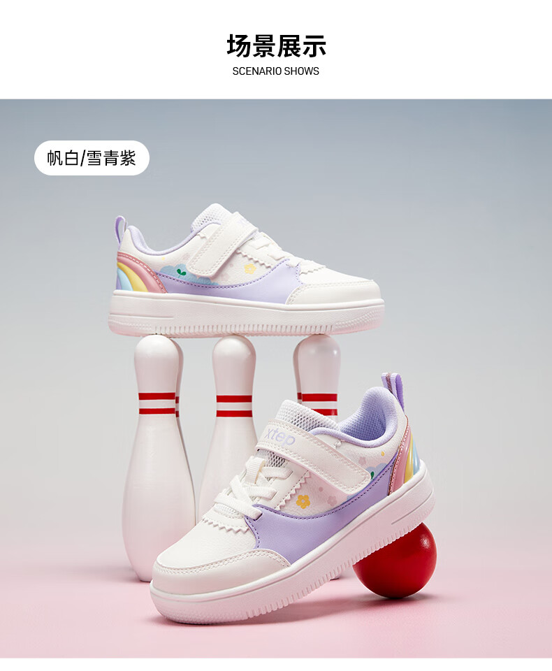特步(XTEP)儿童童鞋女童小童革面百搭魔术贴板鞋 33  帆白/雪青紫